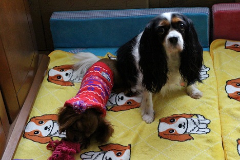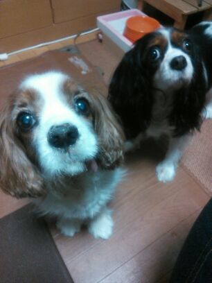 永い間 放置してたブログ・・・ 先住犬 ブレンハイムの ルフィくん トライカラーの れもんちゃん に 新しく ルビーの ロビンくん がやってきた 家族が増えて 楽しい♪