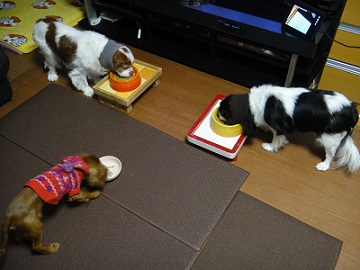 今朝は 3人でリビングで朝ごはんを食べました。もちろん ルフィが最初に食べ始めて、次 れもん。3番目にロビンです。ロビンは まだ4か月なのに もうおすわりと短い時間なら「待て」もできます。それに 今日は ルフィとれもんのおトイレにちゃんとロビンが初めておしっこできたんですよ~。もともとロビンって、うちに来たときからちゃんとサークルのペットシーツに完璧におしっこができてて今日は 和室においてあるルフィとれもんのスーパーワイド2枚連結のおトイレに 自分からおしっこしてました。なんか ロビンって すごくない? って感じです。あとは・・・みんなが仲良しになれたら 最高なのになーロビンから逃げて、ソファの上に避難しているルフィ。元気いっぱいに段ボールに食らいついているロビン。ちゃんとロビンのお口の中に手を突っ込んで、食べた段ボールはママに回収されました。にほんブログ村