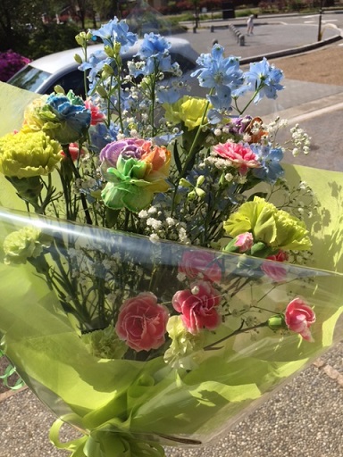 花束持って だんなさんと実家のおかーさんのとこへ行ってきた花屋さんに行ったら はじめて見る 「レインボーカーネーション」に一目ぼれしちゃったきれーなぁでも お高いのねぇ~ちょっとちっさい花束だけど 喜んでくれたよーな そうでもないよーな・・・明日から 那須に4泊 はじめての那須だよぉ行ってくるよぉーちゃんと那須に行けるんやろか金沢から車で 7時間とか・・・わんこさんがいるから 休み休みして はて?何時に到着するやろか荷物もわんこさんたちの物だけで スーツケース1個3わんこさんたちの洋服やお薬だけでも大量ですさてっと・・・明日のお弁当の支度も済んだしなんか 楽しみになってきたよぉーーーーーーーーーーーーーーーーー にほんブログ村
