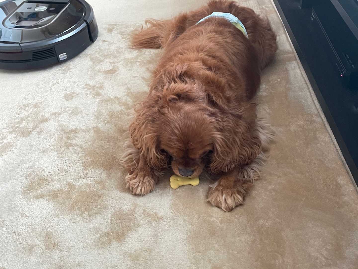 午後のおやつタイム〜🍪わんこのおやつタイムと同時にルンバさんを動かしたら…(ルンバからクッキーを守るロビンくん💦)ルンバさんは クッキー食べませんよ。ろーくん💦ロビンさんは ルンバが気になっておやつが食べられないので💦ろーくん ごめん ごめんっ💦ルンバを停止して やっと食べてくれましたお詫びに レバー味もどうぞ 召し上がれ💕にほんブログ村