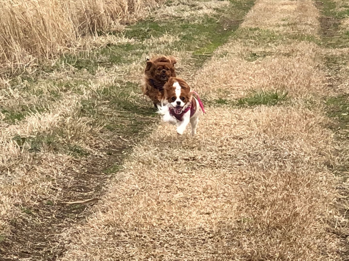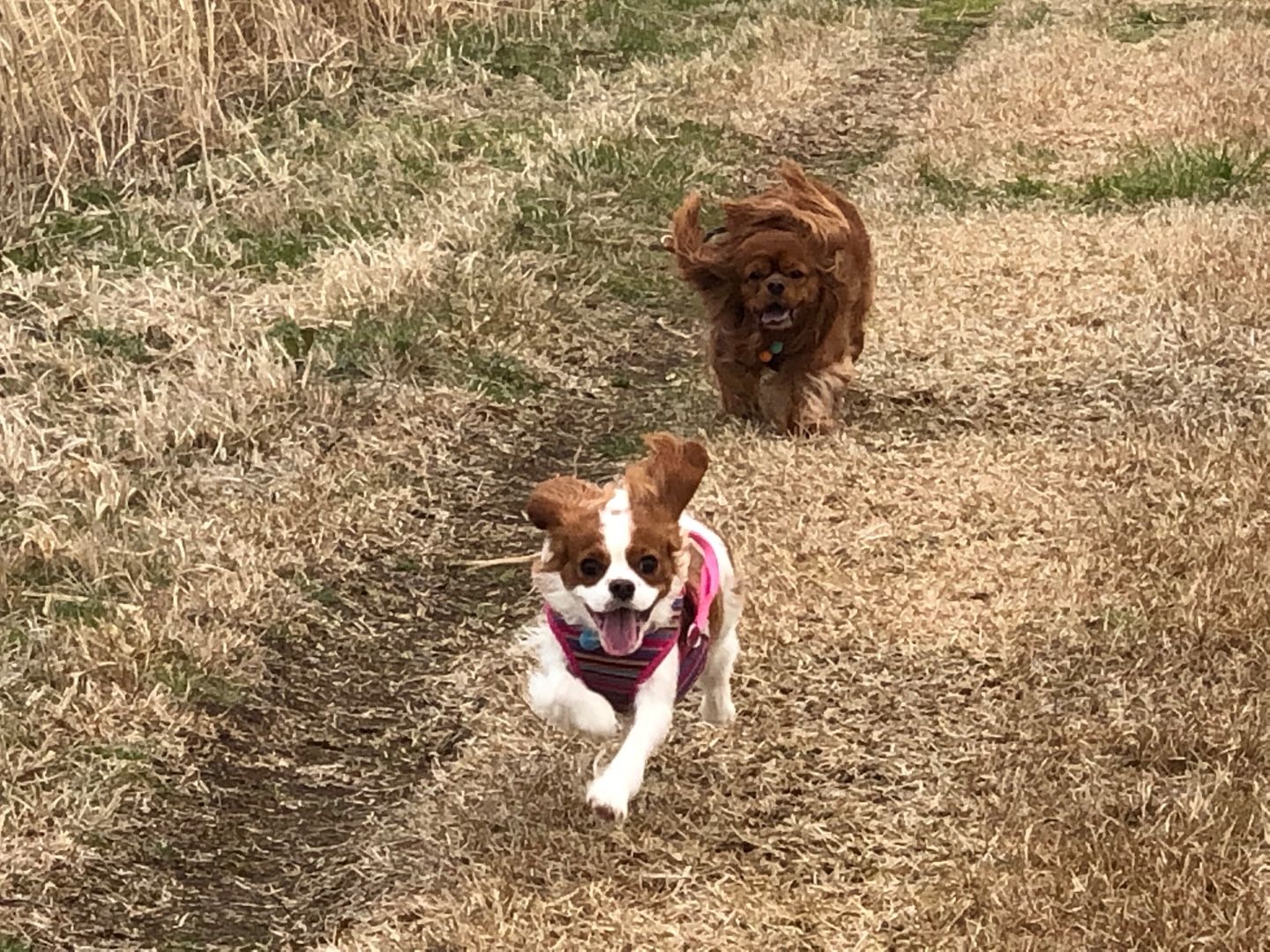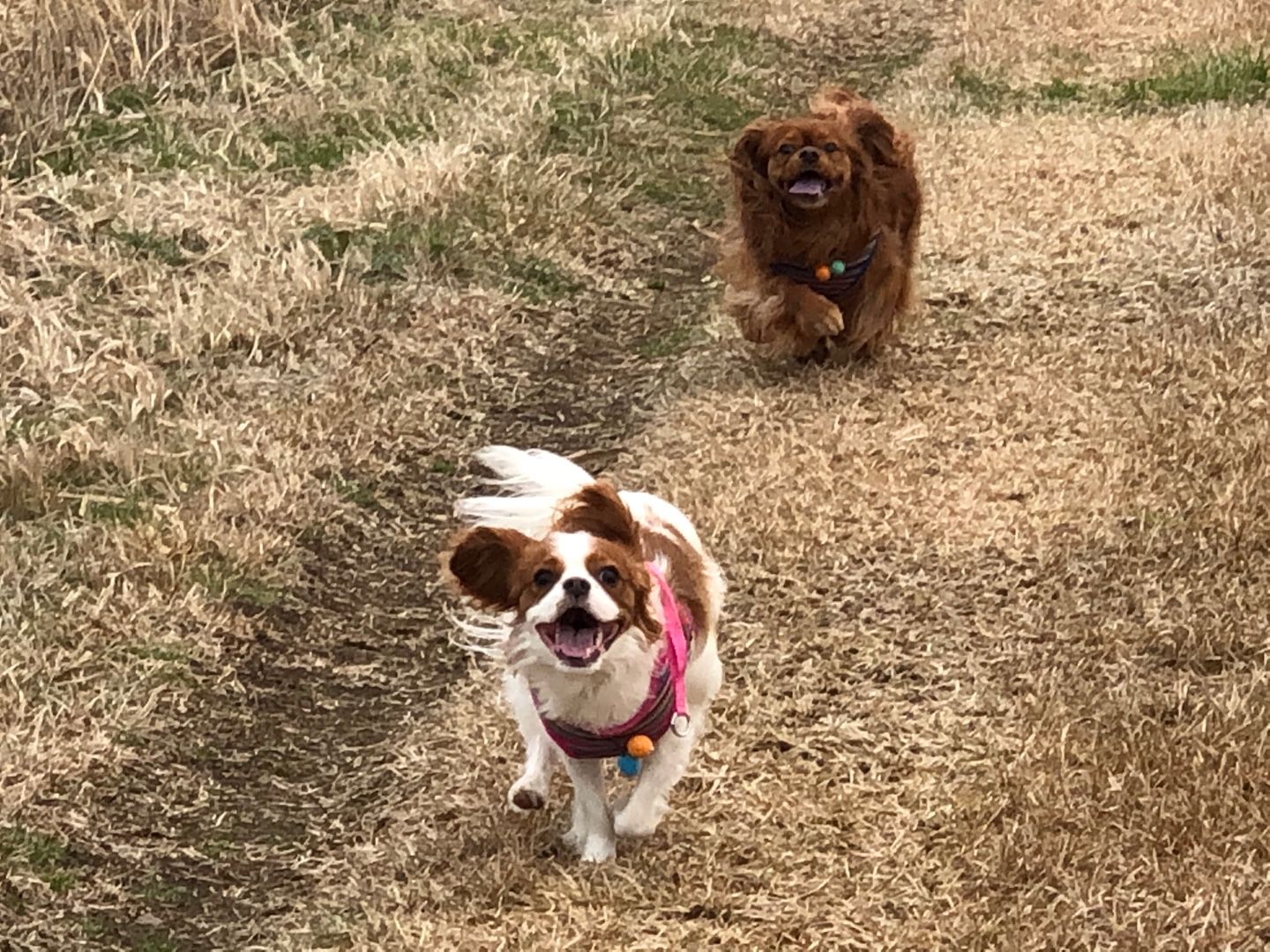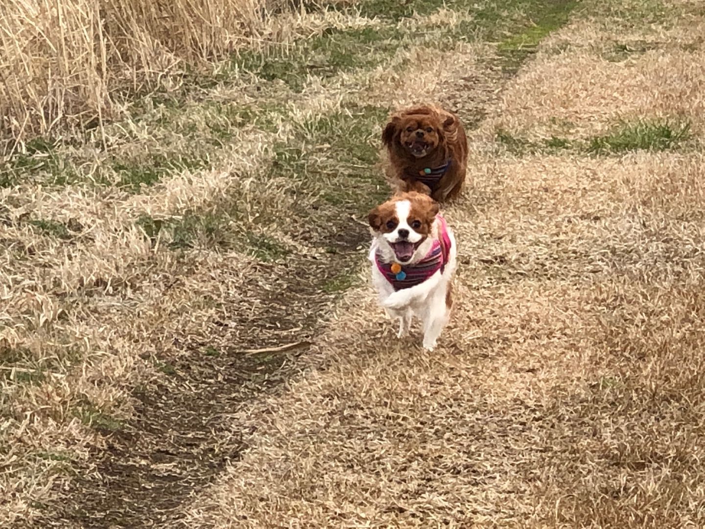 突風の中、「ロビンと葉月」お散歩頑張りました