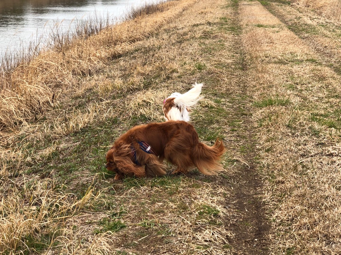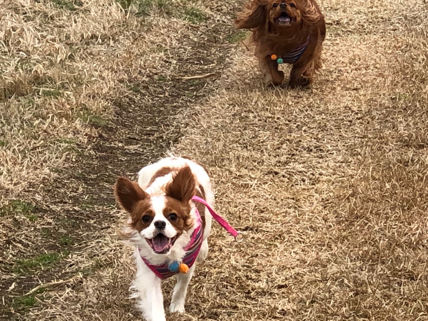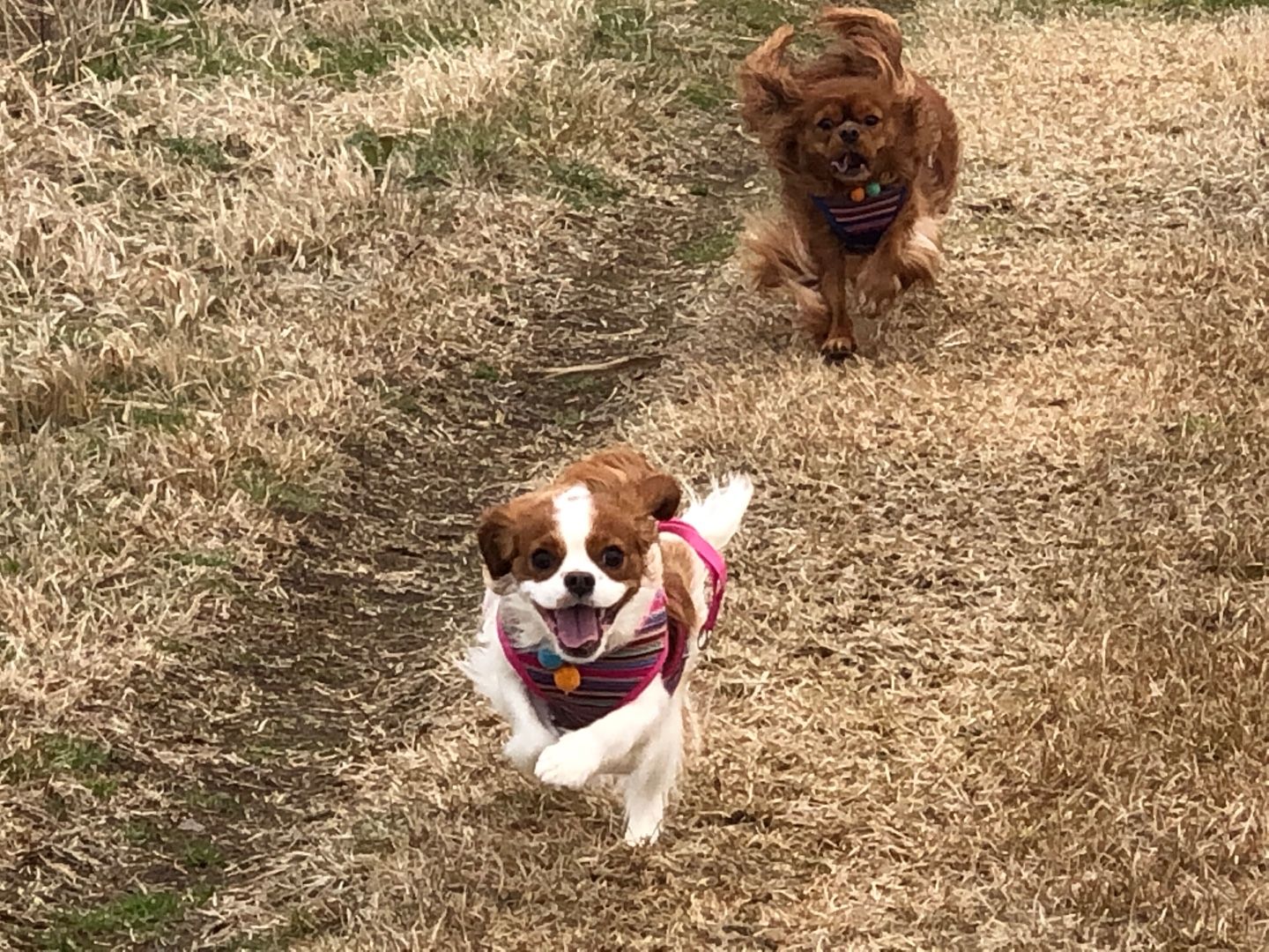 突風の中、「ロビンと葉月」お散歩頑張りました