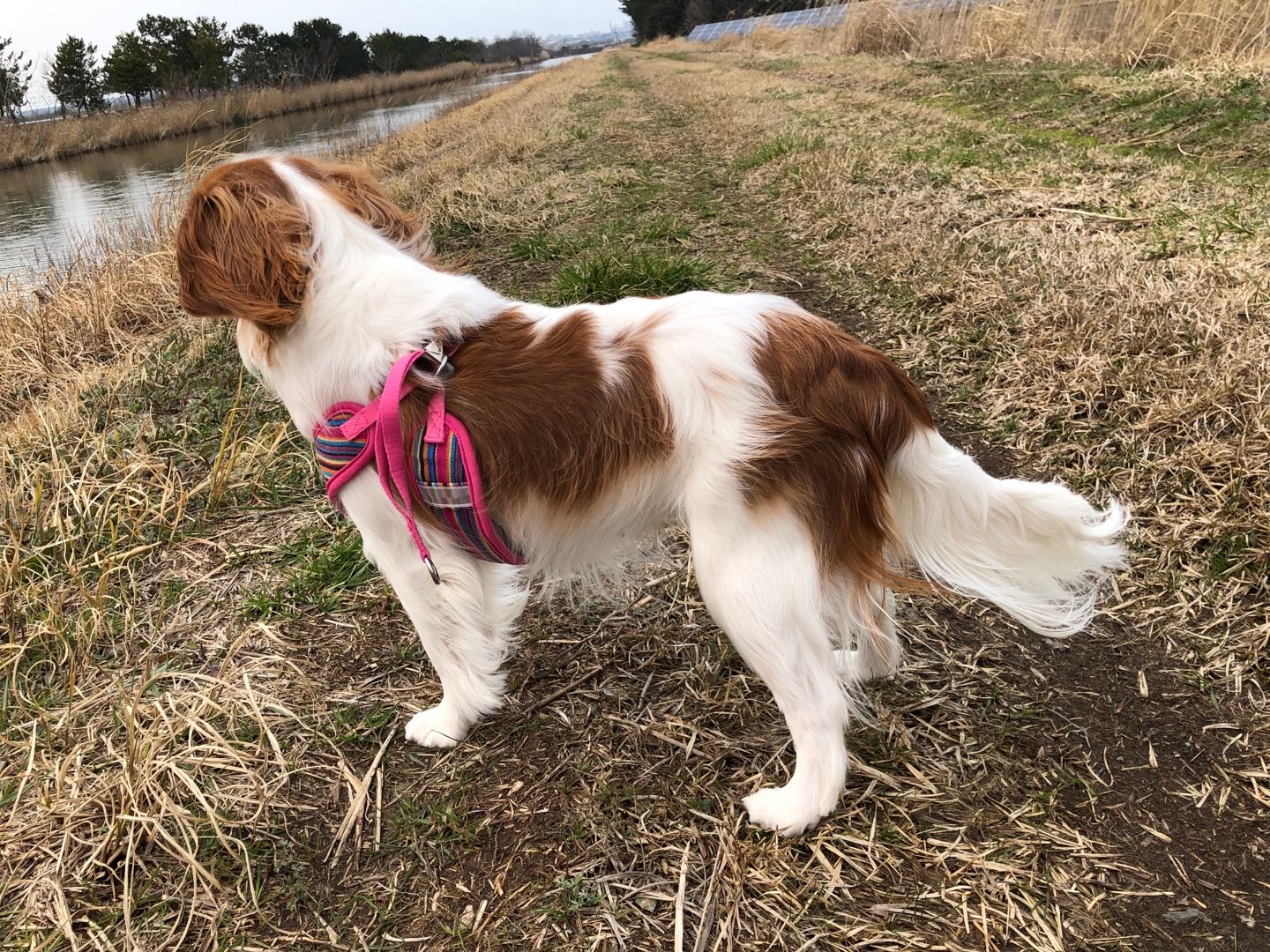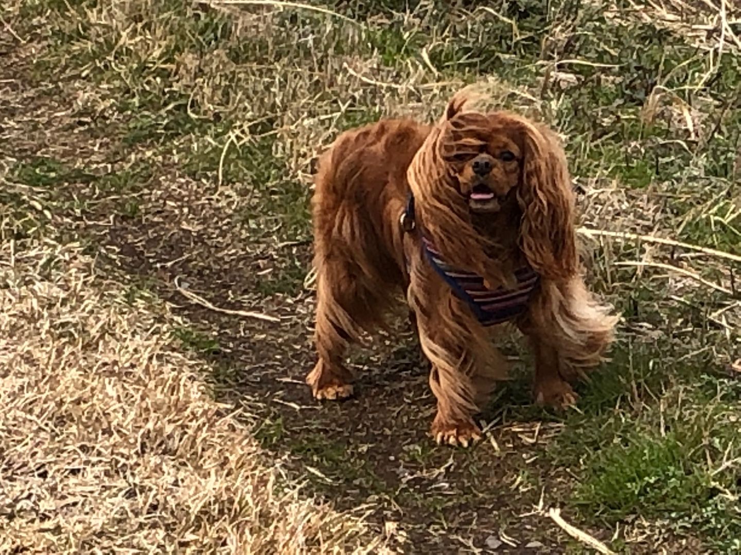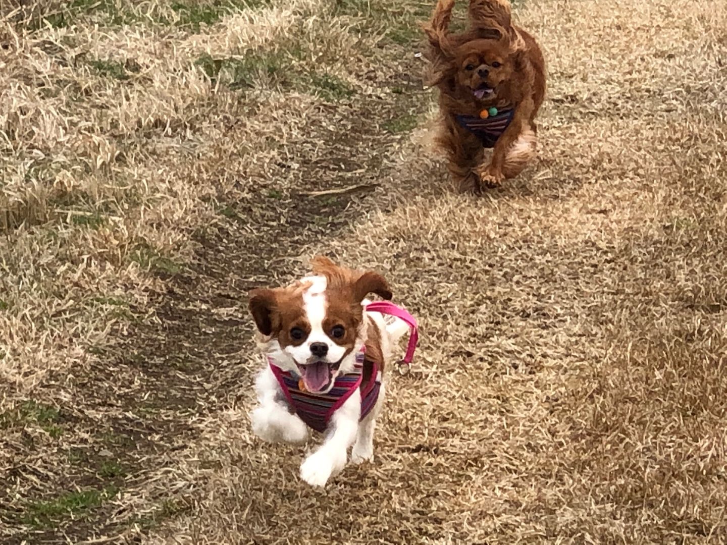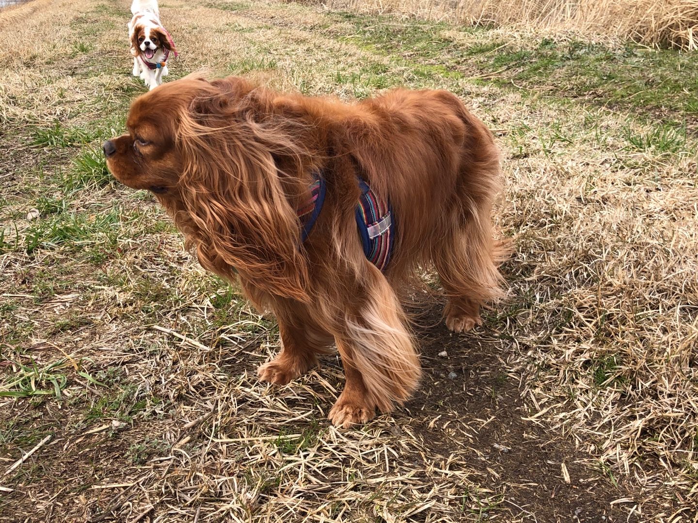 突風の中、「ロビンと葉月」お散歩頑張りました