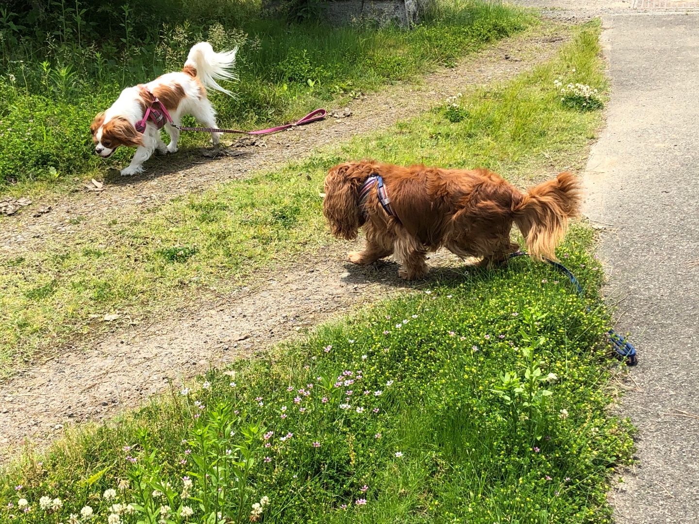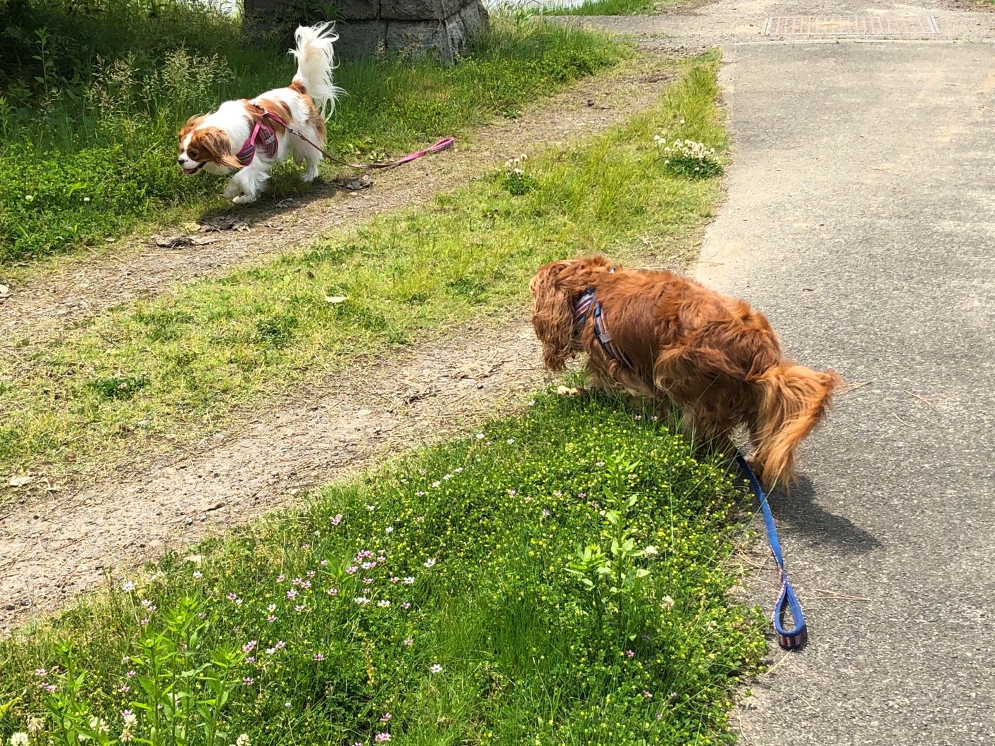 結局お散歩が遅くなって ロビンも葉月もあちっちっ🔥