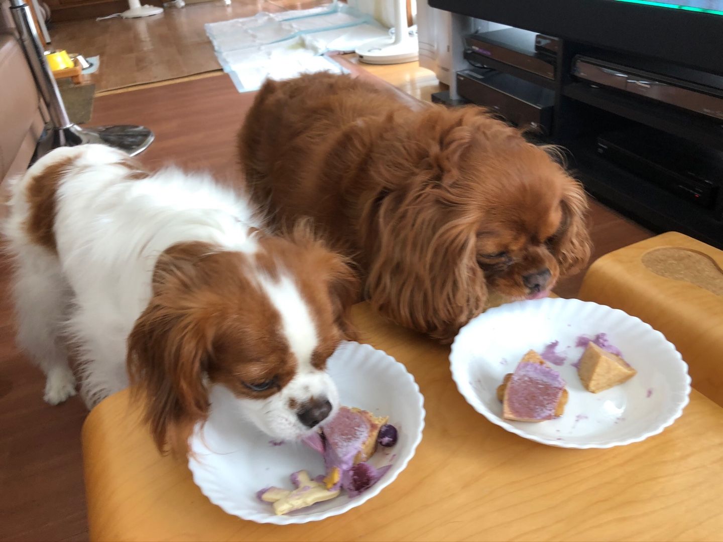 紫芋のおケーキをウマウマ中のふたり