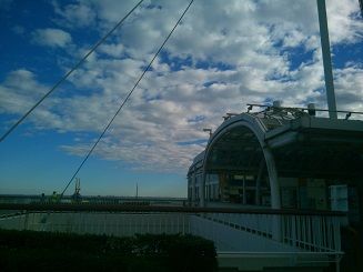 雲の美しい真っ青な秋の空。某パーキングエリアの屋上。