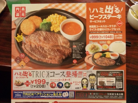 注)) 本日の日記は、完全自己満な内容になってしまいます 意味不明な表現が出てくる可能性があります(笑) 私、仲間由紀恵さん・阿部寛さん出演のドラマ、【TRICK】の大ファンなんです トリックからのスピンオフドラマ、【警部補 矢部謙三】も、もちろん見てます見てるドラマは、唯一これだけです(;^ω^)今のところ、内容はトリックの方が面白いと感じてしまってるんですけど、警部補 矢部のドラマ内に、隠れトリックが満載なんです たとえば・・・ 矢部警部は、ヅラなんですけど、部下の名前が「桂 美晴」分かります?? 「かつらみはる・・・カツラ見張る」 矢部警部補が出した領収書の店名が「仲間商店」トリック内で、仲間由紀恵さん演じる山田、の後ろ姿がチラ映り以前に部下だった人がチラ映り などなどなど 一瞬しか映らない領収書だの、壁に貼ってある注意事項だの、細か~い所を見ると、かなり面白い事になってるんですこの細かい面白さは、トリックにも沢山あるので、機会があったら、是非是非トリックから見て頂きたい、超おすすめドラマです 今回、トリック10周年を記念して、映画が公開されるんですけど、それも超楽しみ定期的に新シーズンとかやってるわけじゃないのに、10周年だからと映画を作ってしまうなんて、私みたいに根強いファンがたくさんいるんですね そんなトリックが、なんとなんと 今、ガストとコラボしてるんです対象セットの注文をすると、オリジナルコースターがもらえたり、プレゼント応募の参加権がGET出来たり・・・トリック好きにはたまりません そんな感じで、今日の夕食はガスト行って来ますパパとの外食でわざわざガスト・・・って感じなんですけど、トリックの為に(笑)パパに話したらものすごく呆れられたんですけど、「対象セットはステーキだよ」って言ったら、とりあえずもらいました(笑) 明日の日記はガストの詳細で ジュワッチ ハイ、この日記が数日前から書きたかった本題でした(;^ω^) まるっとトリック情報 スピンオフドラマ 【警部補 矢部謙三】 毎週金曜23:15~放送中【劇場版TRICK 霊能力者バトルロイヤル】 5月8日公開ガスト 【ハミ出るビーフステーキ TRICKセット】【TRICK 新作スペシャル2】 5月15日 21:00~任天堂DS 【TRICK 隠し神の棲む館】 5月13日発売