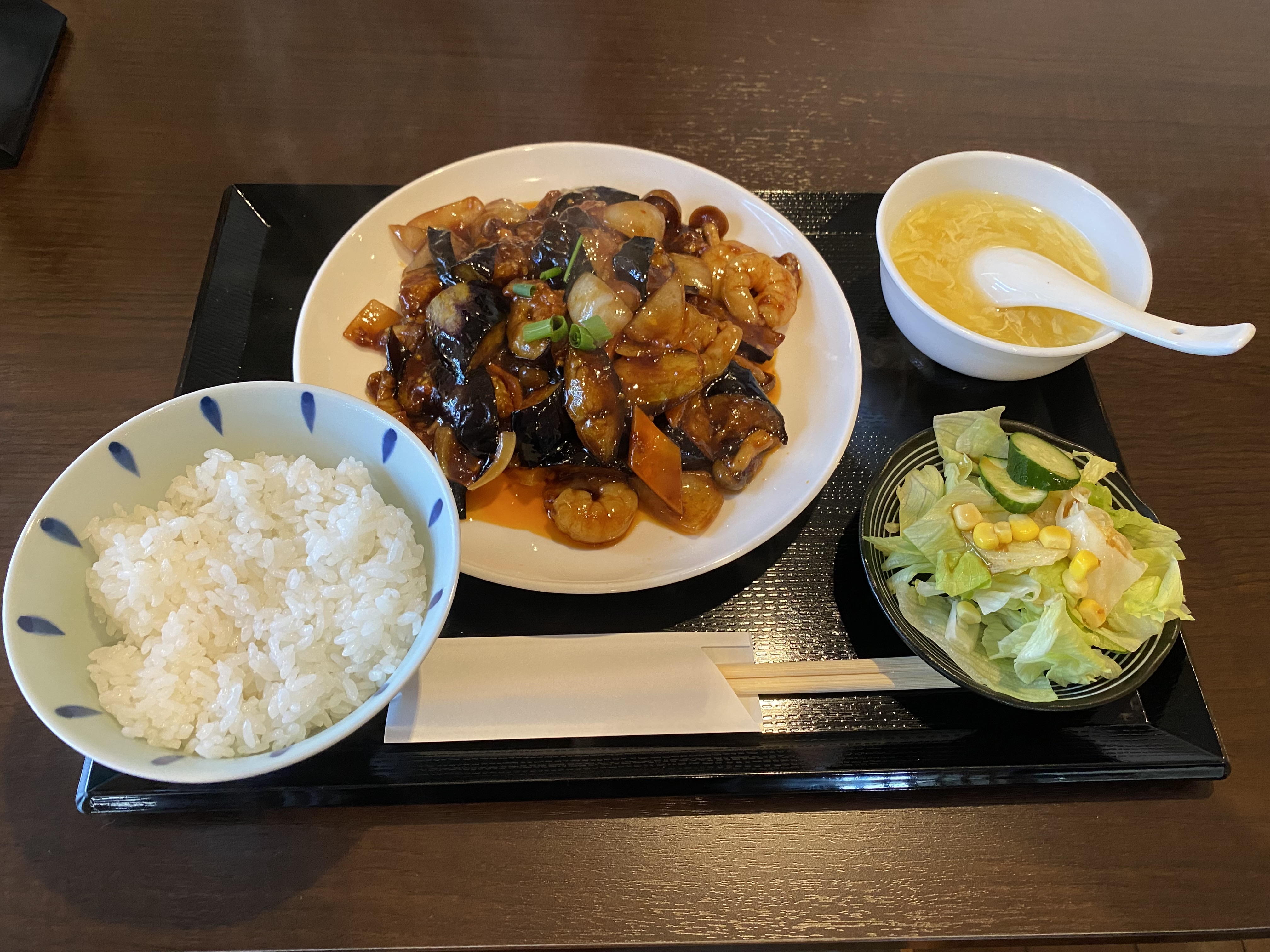 先週に引きつづいてこの表題でのお届けとなりますそれにしても今日も朝から暑い一日でしたねぇ…気象庁によれば「今年は梅雨入りが遅かったため、梅雨の日数は27日間となり平年と比べると3分の2ほどの短い梅雨になりました」とありましたけれども感覚的には「昔のように梅雨らしい雨の期間があったかなぁ⁈…」と思うもので今は「ゲリラ豪雨というか熱帯雨林気候のような降り方」というか…もっぱら「線状降水帯」の言葉を耳にするのが当たり前のようになってしまいましたね……ちょっと話しが逸れてしまいましたね…そんな朝を迎えた今日は、のちに控える法事に備えて、義理の母と一緒にお墓へ行ってそのあとは通常の休日ルーティンである買い物がてら昼食をとることにしましたこの暑さだったので、そんなに食欲がわかない感じでしたが先週お伝えした「また行きたくなる店!準レギュラー入り」へと昇格している「台湾料理屋」の話しが出たとたん「そうしようっ!」ってことで即決でした~…で、お店に入って気がついたのですが「ん⁈…先週も来た?」って話しになって、そうなると準レギュラーのお店というよりも完全に行きつけでヘビーローテーションの位置づけになるお店となってしまいますねぇわたしたちが入店したときは、ほかに誰もお客さんが居ませんでしたがその数分後には満席に近い賑わいでしたので良いタイミングでした!少しずつ口コミなどで「安くておいしいお店」として人気が出ているのかもしれませんねほんと近いうちには行列店になっている可能性があるかもしれないですねぇ…で、今回は初お目見えのランチがあったので、わたしはそちらを注文して妻は気になったレギュラーメニューをお願いするものでした ランチ「ナスとエビの味噌炒め」 / 「豚バラ辛味あんかけごはん」いずれもとっても美味しかったですぅ!味付けが思った以上に濃いわけではありませんが、この暑さでも食欲が増す感じで、とてもごはんがすすむ料理でした!いやぁ~満足でしたぁ!この調子だとまた来週も足を運んでしまいそうですね…