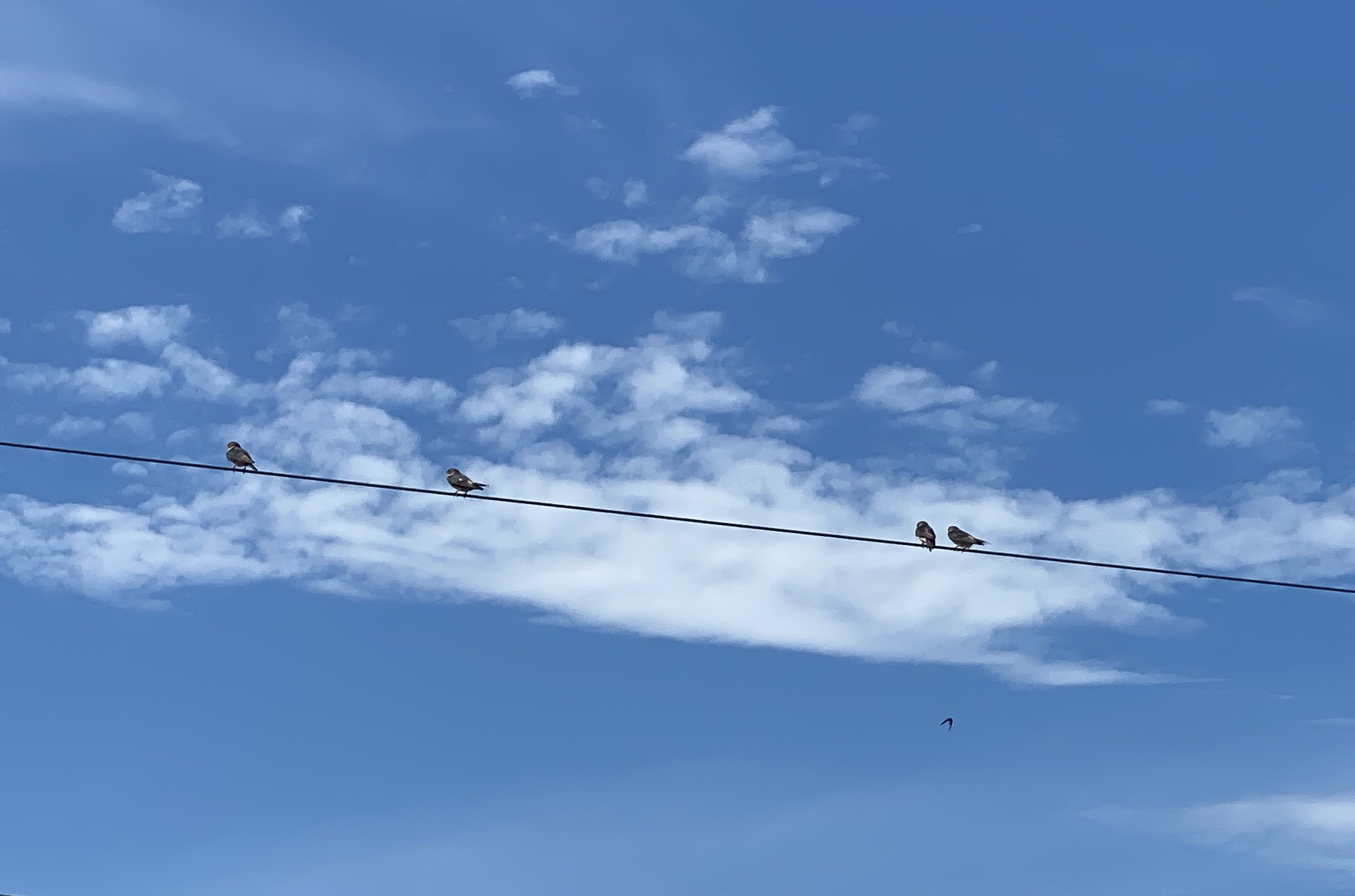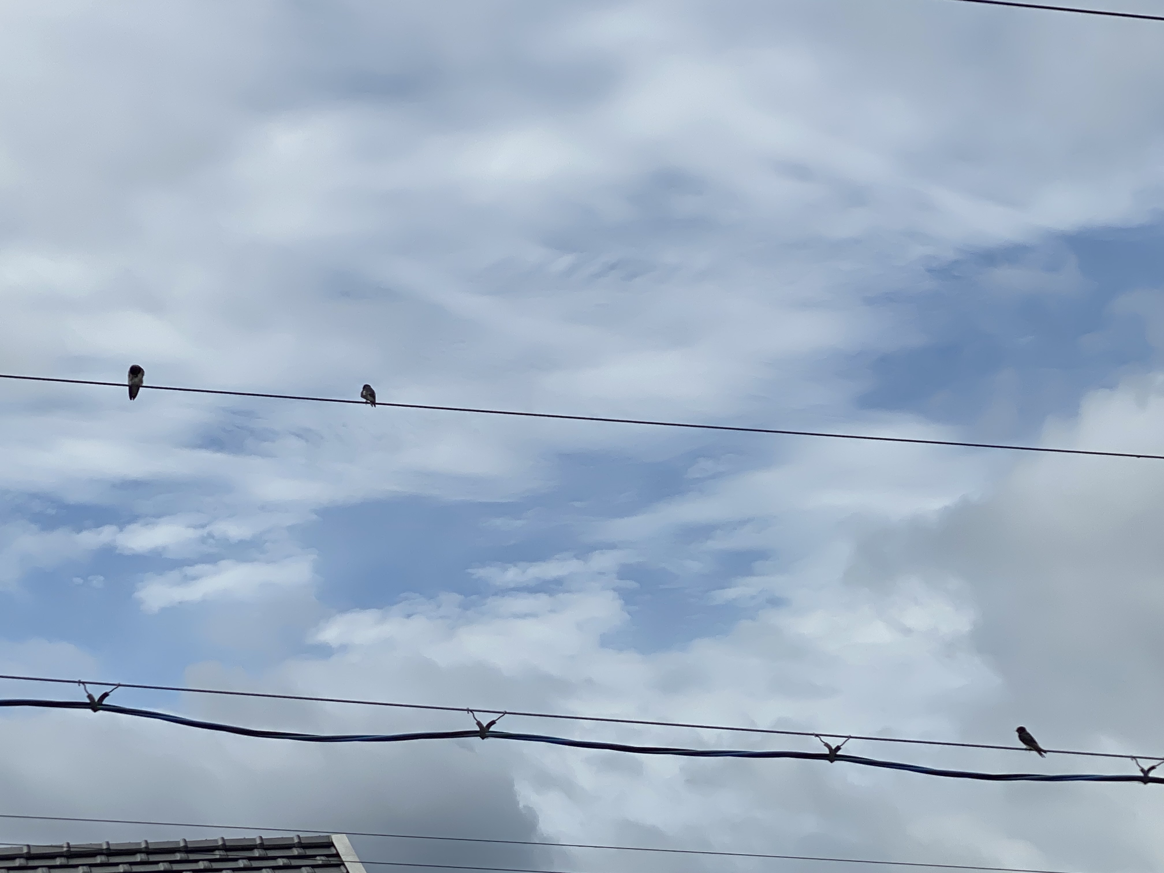 安心しましたぁ!今朝6時半くらいには「チュリチュリ」「ジュリリ」といった感じで鳴き声がして外を見るとツバメたちが「安定のポジショニング」でした!その後、一旦、飛び立っていって見かけることはなかったのですがさきほど9時半くらいには、また外が賑やかくなってきたなぁと目をやるとおなじく「安定のポジショニング」でした!昨日は、わたしが居ないこともありましたし、たまたま遭遇しなかったのでしょうねぇひとまずは安心しました昨日もお話しをしたように、そのつば九郎たちは、ほかにも電線や戯れる場所があるのにどうしても、わが家の前にある電線(ちょうど駐車場の上)が居心地が良いみたいなのですねえ昔からツバメは作物につく害虫を食べてくれる益鳥として大切にされていたようですしそのことから「巣を作る場所=人の出入りが多い場所」として商売繁盛のシンボルとされたり雷や火事から家を守ってくれる存在とされてきたようなのでこれからもあたたかく見守っていければと思っております(あっ!フンだけはご勘弁を~)あと、わが家の軒下に巣作りはしておりませんが、何カ月前に偵察部隊のつば九郎たちが飛び交っていましたから、ひょっとすると候補にはあがっているのでしょうかねぇ~9時半の様子