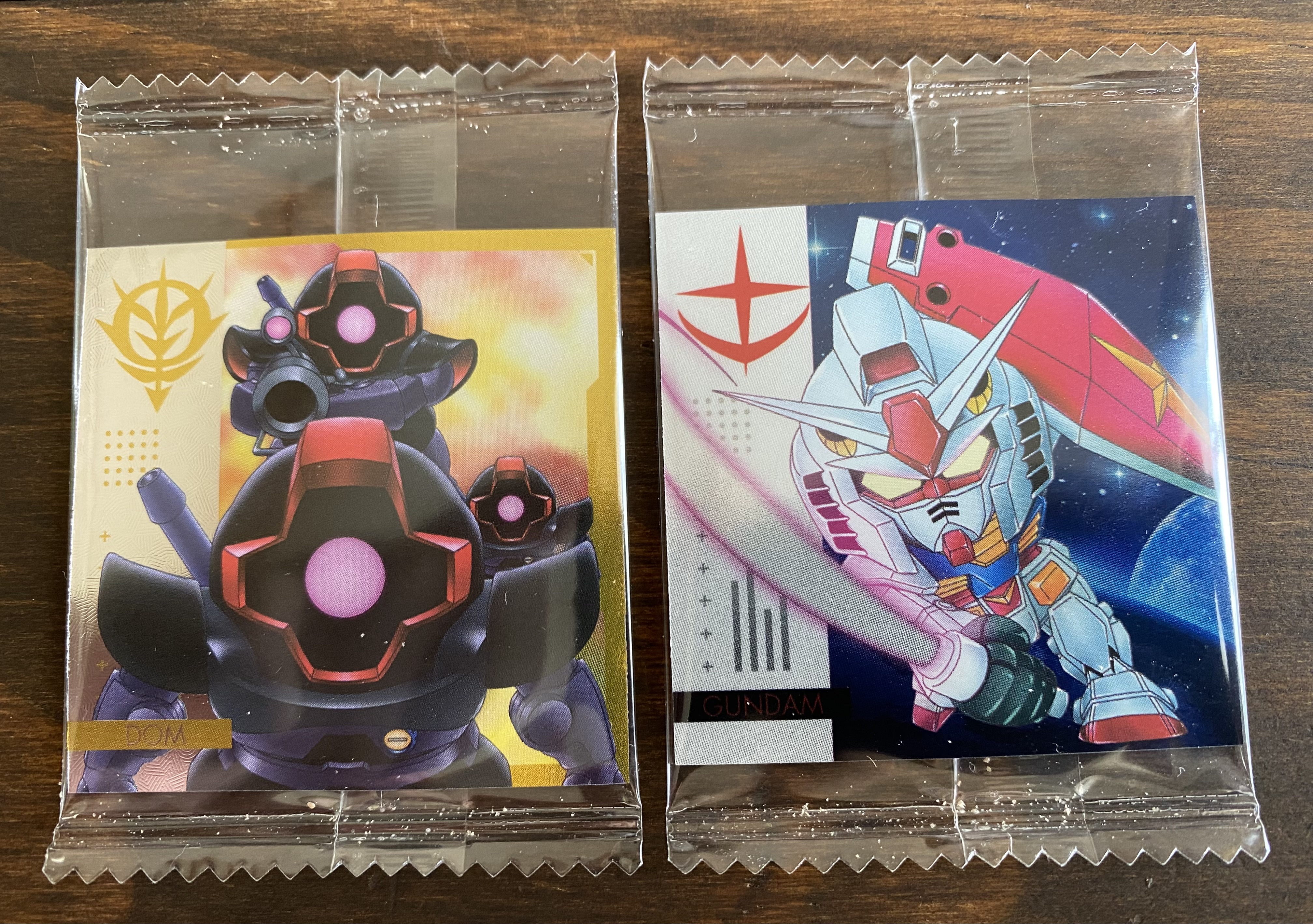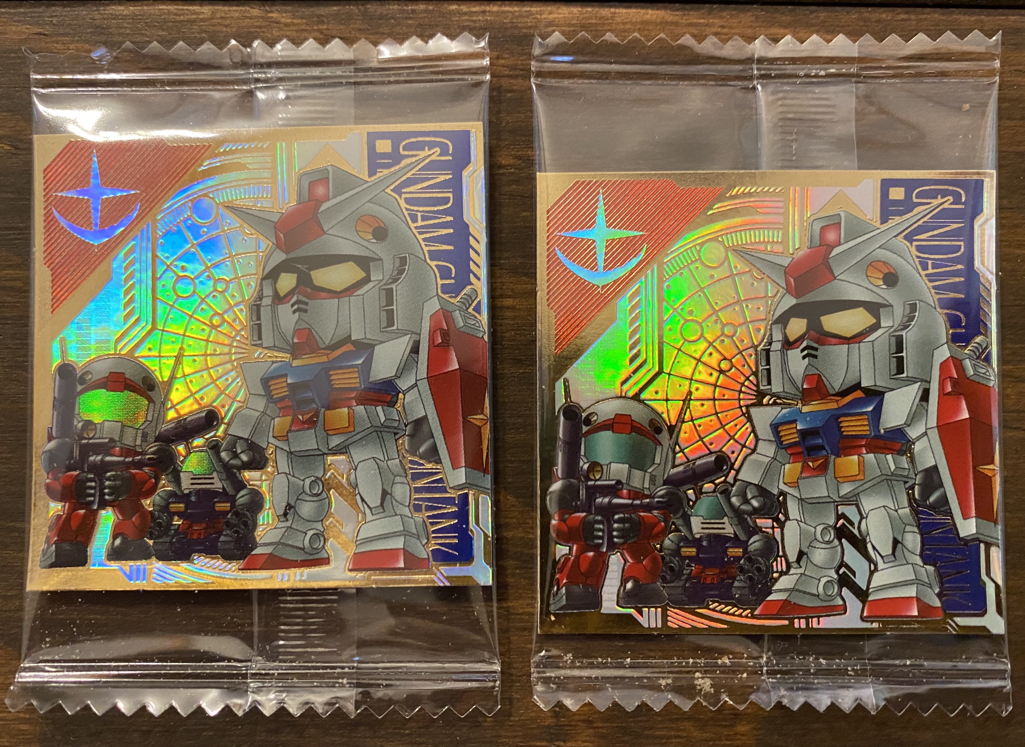 7月7日の「関心事のつぶやき」のなかで取り上げていた「にふぉるめーしょん 機動戦士ガンダム シールウエハース ~戦いの序曲~」のことですおとなの特権で大人買い(20枚入りひと箱です)をした以降は毎日一枚ずつ何が出るのか楽しみにしながら、その結果報告として、「たのしくcooking」のブレイクタイムにあわせてお届けをしていたところですその楽しみもそろそろ最終章を迎えておりますお届けしてきたように、なかなかお目当てである『ファーストガンダム関連』が出なくて…本来ならば、それ以外の『スーパーレアシール』や『シークレットシール』を引き当てたら喜びが生まれるところでありますが、わが家では違ったんですねぇ~さらには、妻とわたしのどちらが『引き当てが強いか』と競っているところもありましたものでそこには『小さな譲れない戦い』も繰り広げられていたのでありますっ!(なにそれ⁈ですね…)…ってなところで、いままでの「引き当て確率の傾向」はもっぱら、妻の方が優勢で、わたしが唯一『グフ』を引き当てただけだったんですね…そんな中、先日、ついに!わたしが『ウルトラレアシール』である『ガンダム & ガンキャノン & ガンタンク』を引き当てたのですっ!ホントうれしかったですね~!…と、わたしが喜び勇んでいる傍らで、なにげに妻が「もう1枚食べよっと」と開けた瞬間…あろうことか『ガンダム & ガンキャノン & ガンタンク』を引き当てたのでありますっ!なぬぬっ…しかも、喜んでいたわたしに被るかのようなタイミングで…ま、ま、まぁ…『ファーストガンダム関連』が出たのはたしかにスゴイことなのですがわたしの独占していた喜びの時間は、たった『30秒』ってところがミソでしたねぇ~ホント妻の引き当てる確率というのはなかなかのものですから~残り『シャア専用ザク』『量産型ザク』『ドム』の3つは、「小さな譲れない戦い」はさておき早めに引き当てられるように応援⁈…していこうかなぁと思います