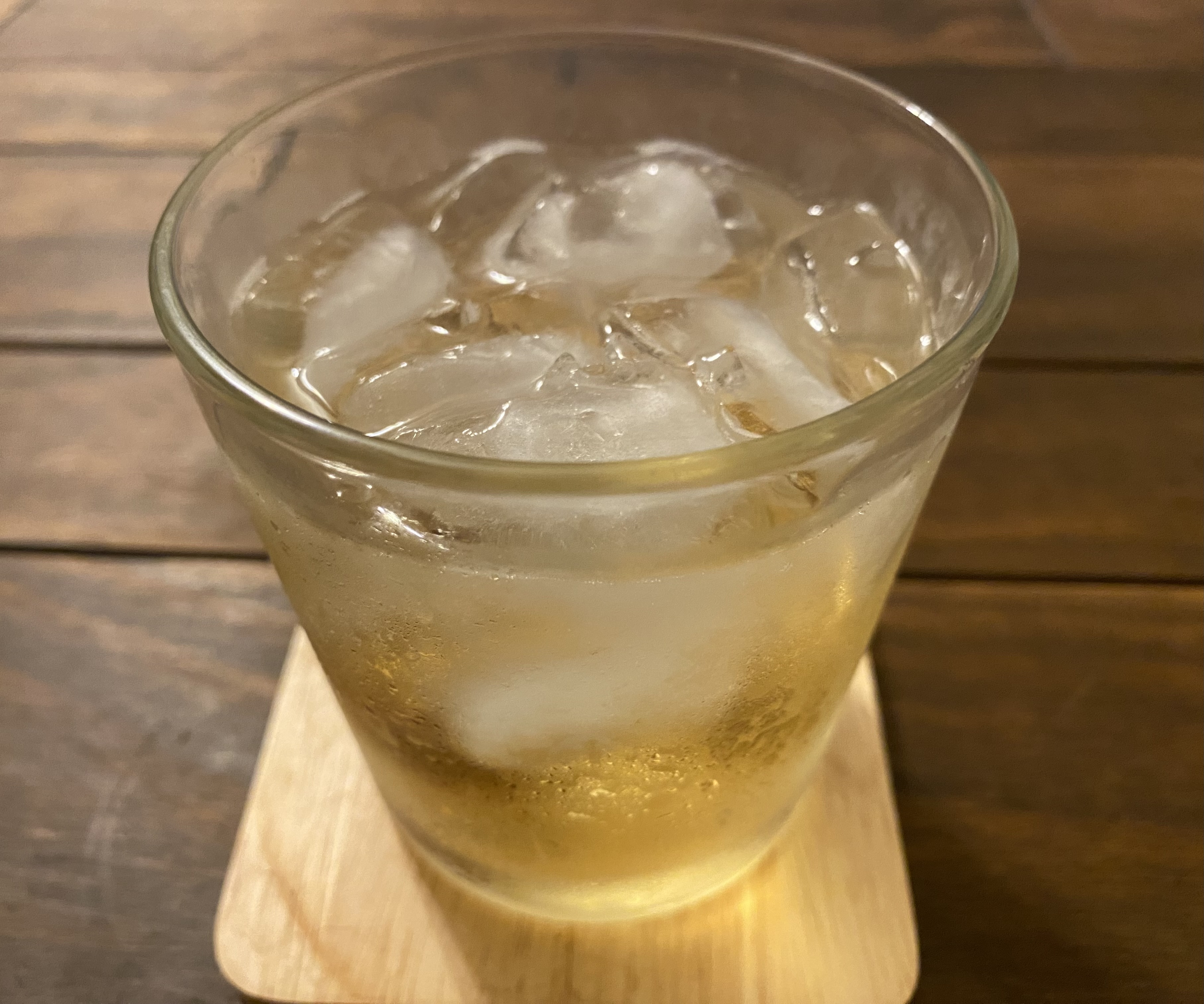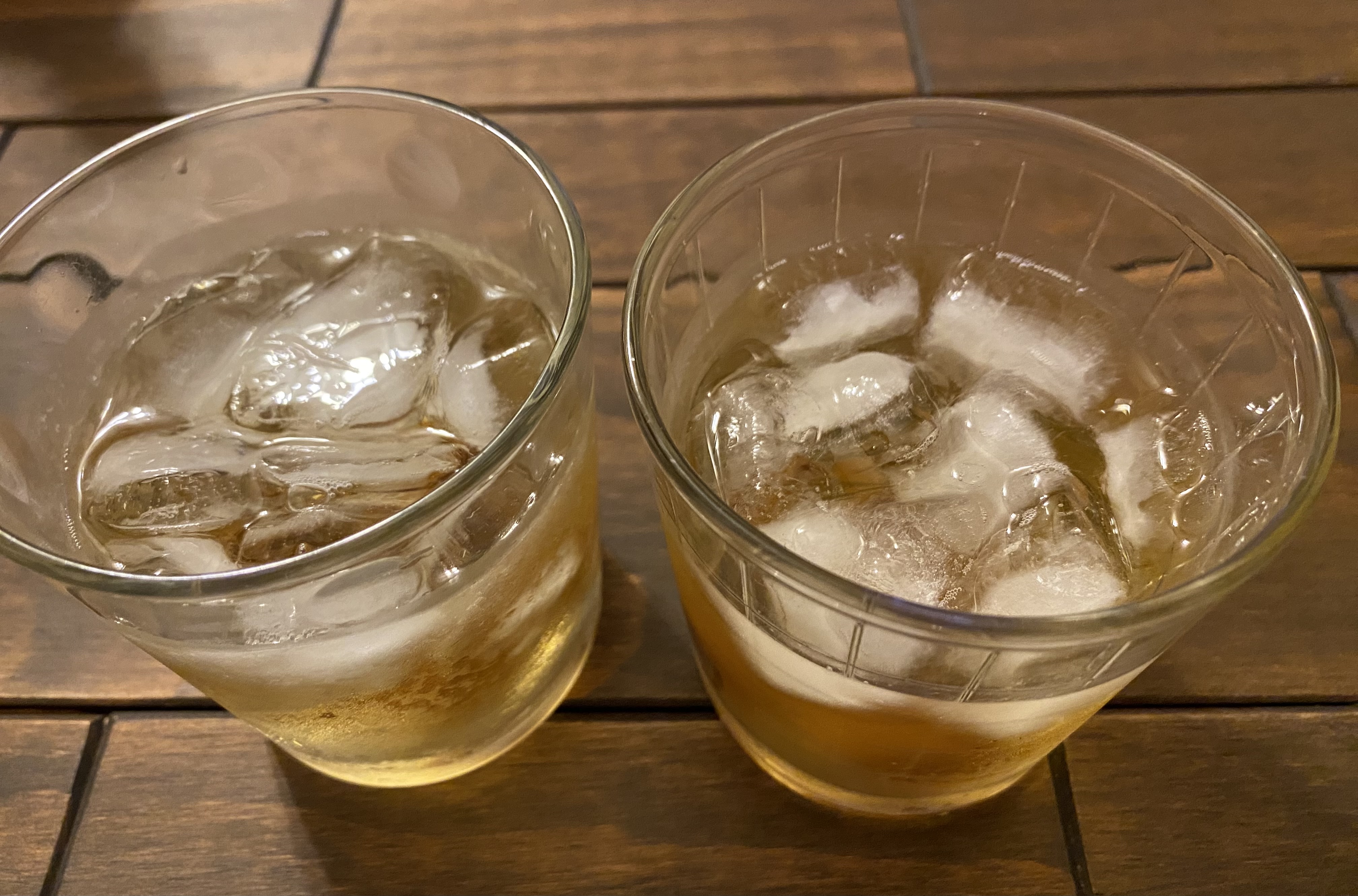 一昨日お届けしていた『梅酒』のその後ですそういえば…昨日の試飲報告ができておりませんでしたねぇ…結局、昨日は『ロック』と『ソーダ割り』の2パターンから確認してみましたまずは原液を確認しながらソーダ割りの適正比率を探ってみることにしてあわせて、妻が叔母からいただいた梅酒の『梅酒配合量のメモ』からどんな配合だったんだろうと確認してみるものでした結果的に、今日、妻が漬け込んだ梅から『ジャム』を作ってみて分かったことですがかなり梅がアルコール分を吸収してしまっていたのでありますぅ…そうですねぇ~さすがに6年ものとなっていたので、浸透圧の作用を繰り返した結果ちょうど良い浸漬液のタイミングを逃してしまった感じでしたぁ~(梅の実からエキスと結びついたアルコールや水分がゆっくりと放出していたものが 長い年月を経て、また梅へ出戻ってしまった感じ)とはいえ、とても熟成期間が長かった甲斐⁈…もあって、漬け込んだ梅の実自体はとてもきれいで柔らかい状態を維持したので、ジャム作りには良い感じで適しているようでした ※また『ジャム』の情報は追ってお届けしたいと思います…で、最終的に今日は、ジャム作りで取り除いた『タネ (ちょっと実がついた状態)』を入れて『ロック』で飲んでみることにしました!するとどうでしょう! とても良い感じの梅酒の味わいを堪能できたのでありますぅ!結果的に美味しかったのでOKですねぇ~!ということで…一般的には『梅酒:ソーダ = 1:1 』がおいしい梅酒ソーダ割りの比率と言われておりますが(使用する梅酒にもよりますが)今回の『わが家の梅酒バージョン』は『タネ入り仕様』でそれを再現できることが分かったのであります~ ※今回取り除いた『タネ(ちょっと実がついた状態)』は別保管済み