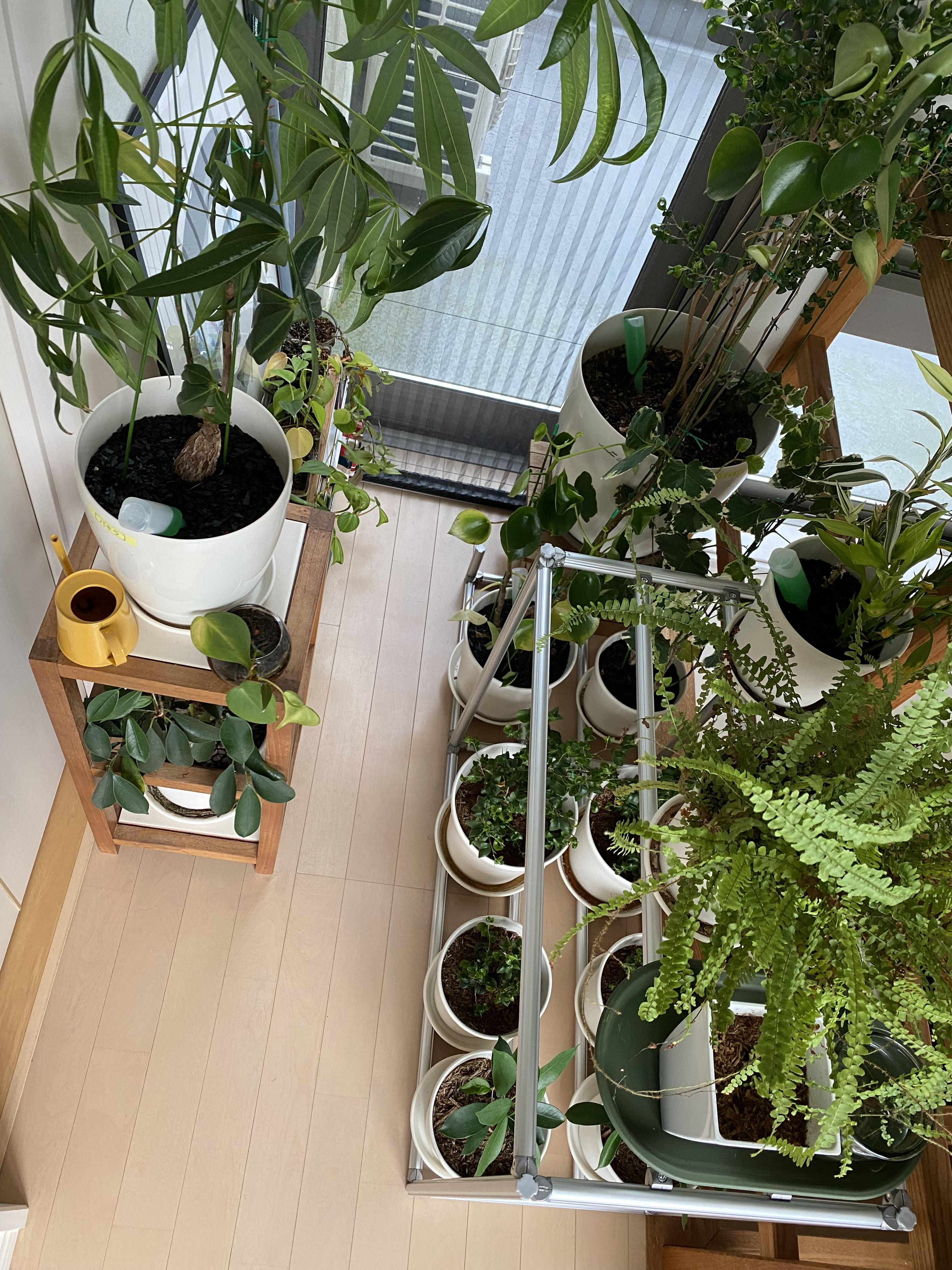 ここのところの大雨(台風接近)に備えて、屋外にあるものを家の中へと一時避難させているため、その被害⁈…を受けているのが『わが家の観葉植物たち』であります…結果、家の中がところ狭しとなってしまって…(広ければ良いのですが…)少し工夫して『観葉植物ゾーン』というか、専用棚などを設けることでしっかりと居場所を確保してみようと考えてみるのでありましたそこで、以前、ブログのカテゴリー「やってみたいこと」の中で、7/2にお届けしている『DIYの日よけ暑さ対策 物干し台』で使用した「G-Fun(ジーファン)」のフレームを使って専用棚をつくってみることを思いついたのであります※以前にもご紹介しておりますが、「G-Fun(ジーファン)」とはアルミフレームをコネクタで連結させ、六角レンチ1本で自由に組み立てるシステムですってなことで、簡易的な製作図面をもとに、さっそく材料を買いに行ってお昼のカレーづくりの前に組み立ててみましたカレーをつくったあとに、ゆっくりと『観葉植物たちの配置決め』をしたところですもともと同じ空間に居たとはいえ、場所が変わることで違和感があるといけないですがなんとか馴染んでくれたらと思っているところです※ 新しく専用棚へ配置※ 変更前※ 使用したフレーム/材料DCMオンライン【Nシリーズ】GFunマルチコネクタインナー SGF-0007 シルバー G-Fun