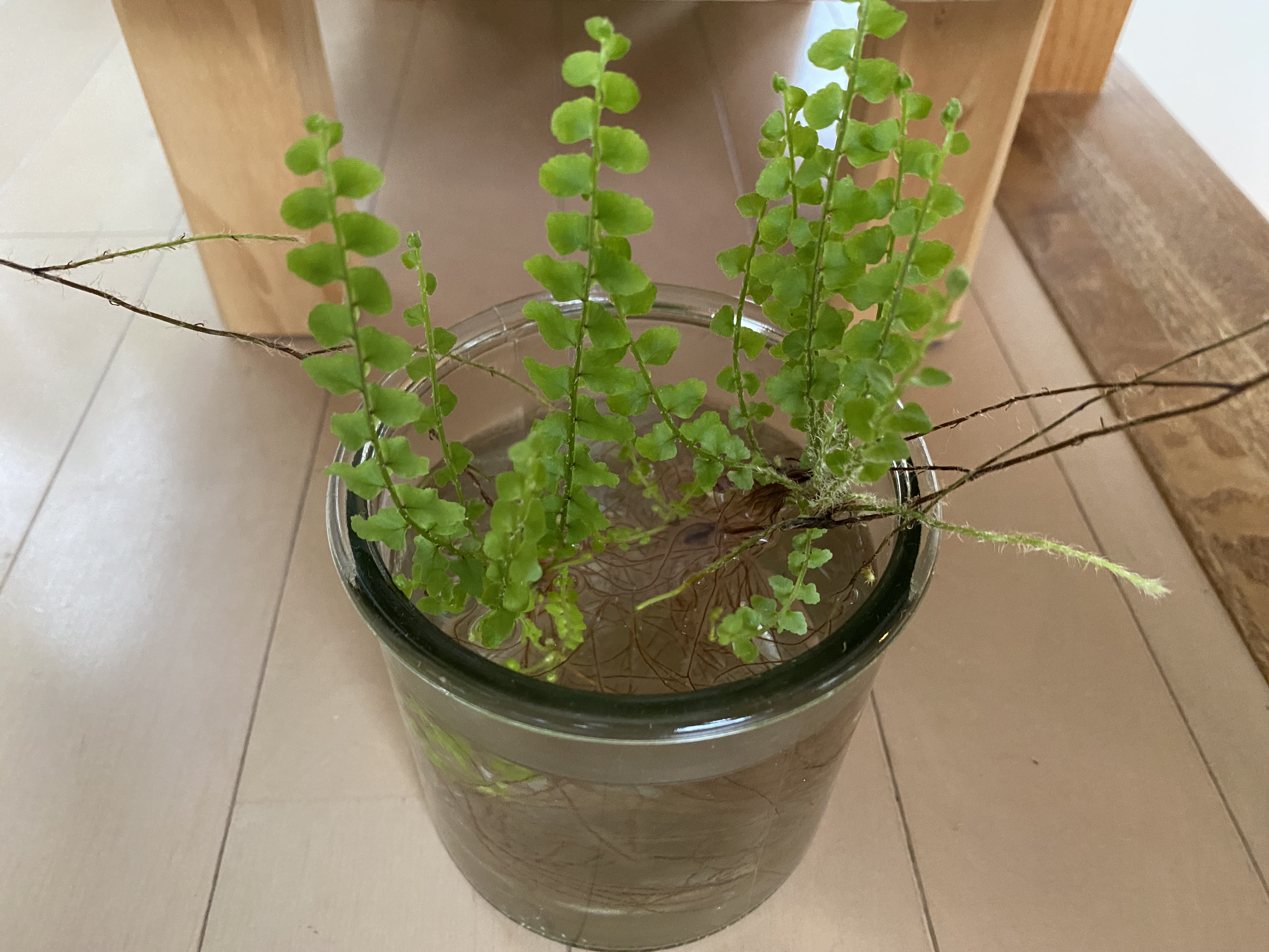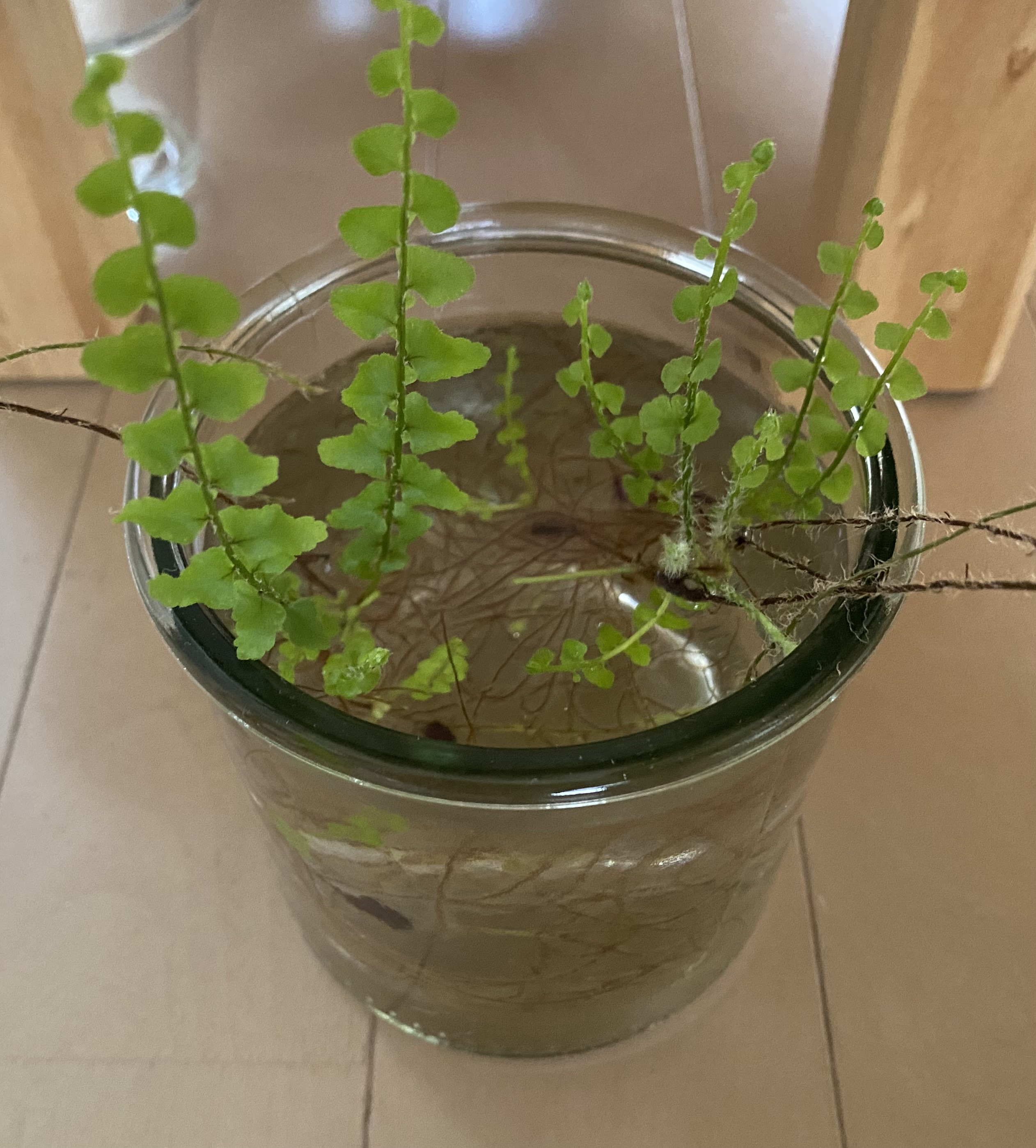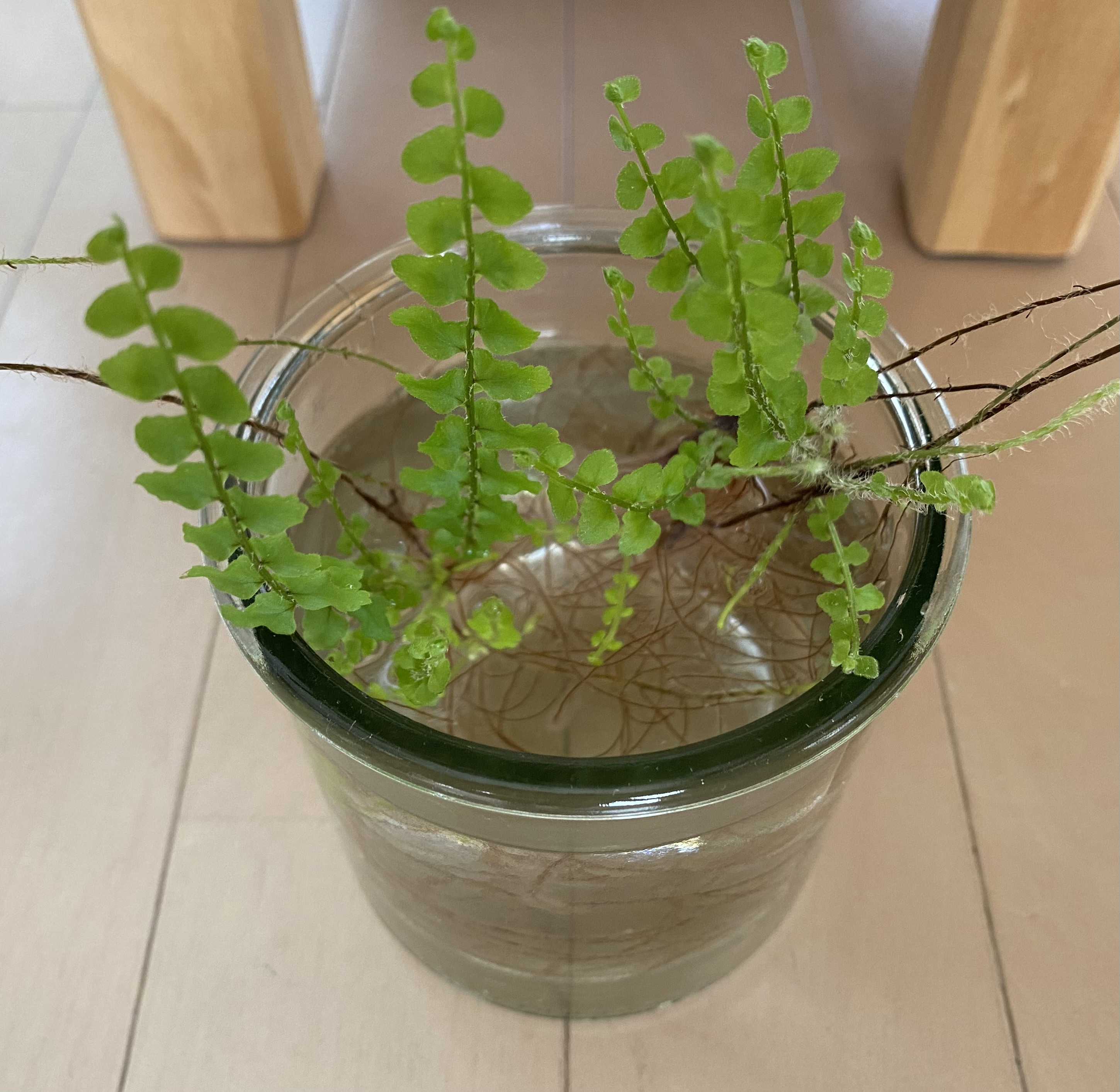 毎週水曜日の朝におとどけしている「わが家の観葉植物たち」から注目株の「ネフロレピス ダッフィー」のその後です…で、毎度のお知らせのように…ここで観察している内容としては「ランナーと呼ばれる蔓のようなもの(先端)から発芽させる方法」を実際に体験してみることでほんとに『ランナーの先を水につけておくだけの手法』が実証されるのかどうかというところを確認している成長記録となります…ということで、現在の様子はというと写真からお分かりのように「はじめに発芽した2箇所」と「その後に発芽した6箇所」」の区別がつかないくらいに『ワシャワシャ成長』しているのであります!追いつけ追い越せの勢いです!ちょうど、水の入れ替えしたときに気がついたことですがこの花瓶には『本家のネフロレピス ダッフィー』から伸びているランナーを両端2箇所からそれぞれ挿し込んでいるので、やっぱり根っこの成長もそれぞれなんですよねぇ当然と言えば当然なのですが…当初、見聞きする中では、「自生地では、もともと地上や木に着生しながら成長する植物」とあったので、ひょっとしたら、それぞれの根っこ同士が着生しあうことで成長するのかと思っておりました…(水替えのときに、根っこが絡み合っていたので…)でも、実際はそれぞれが独立して成長していたのであります(水の中で根っこをほぐしたところ)ということで、何を言いたかったかというと実際のところ、はじめに発芽したところよりも、その後に発芽した方が水の中では『根っこの量と成長が著しい』ことから、以降の『葉っぱの成長』にも影響があって結果、今回のように成長が追いつき追い越せなのかなぁ~と思ったのでありますぅホントは、そろそろ本家から独立させて『水挿しから鉢植え』にしようかなと思いましたがガジュマルとベンジャミンの鉢替えを優先に行っていたので、ちょっと先送りにしましたまた鉢替えのときにはお届けしたいと思います※ 観察中のネフロレピス ダッフィー(浸漬後7週間) ※ 観察中のネフロレピス ダッフィー(浸漬後6週間)※ ふり返り:観察中のネフロレピス ダッフィー(浸漬した当初)