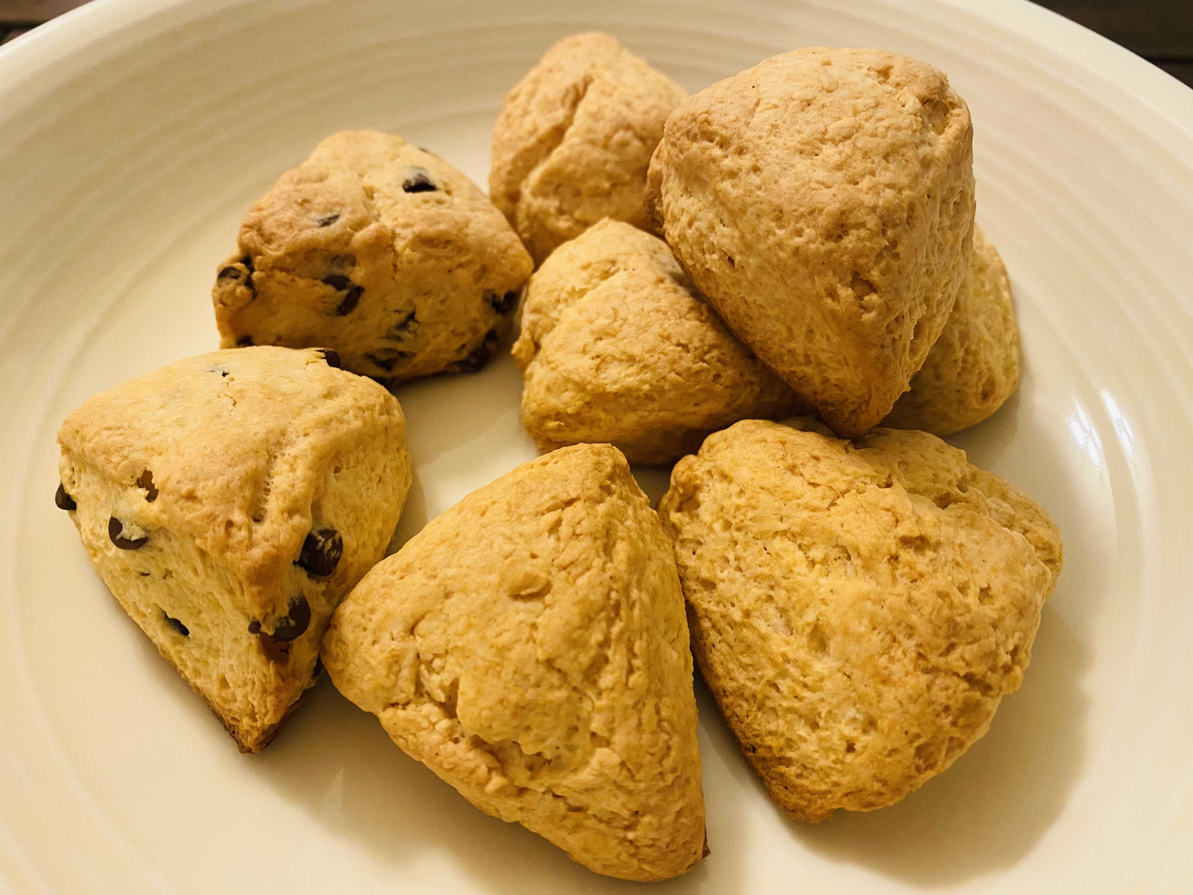 今日は午前中に『ガスの点検』があって、給湯器やガスコンロを使えませんでしたが電気は使えたので、その間に「スコーン」を作ってみることにしましたどうも、ここ最近の「スコーンづくり」では会心の出来というか、満足のいく出来ではなくて…スランプ気味…なんというか…一番最初に作ったスコーンが一番良かったような感じがしますぅ…う~ん…ビギナーズラック⁈…たまたま、チョコチップ仕様は上手く出来てその配合をもとに、アーモンドパウダー入りのスコーンだったり、はちみつ入りのものを作ってはみたのですが…いずれも残念な感じで…もう少し、配合や焼き具合をそれぞれ見直してみる必要がありそうなのです…で、今日はというとあらためて「チョコチップ入り」と「はちみつ入り」をそれぞれ作ってみました昨日、型抜きを買ってきたので、円形のスコーンにもチャレンジしてみました結果…はちみつスコーンはほろほろ感が足りなくてNG…チョコチップスコーンも若干、ほろほろ感が足りなくてNG…型抜きによる断面積の兼ね合いからなのか単純にも大きさの違いによるものかちょっとわかりませんが…結果的に、一番最初に作ったスコーンの再現性の確認が出来ませんでした…まだまだ修行が足りないんですねぇ〜またチャレンジしてみたいと思います
