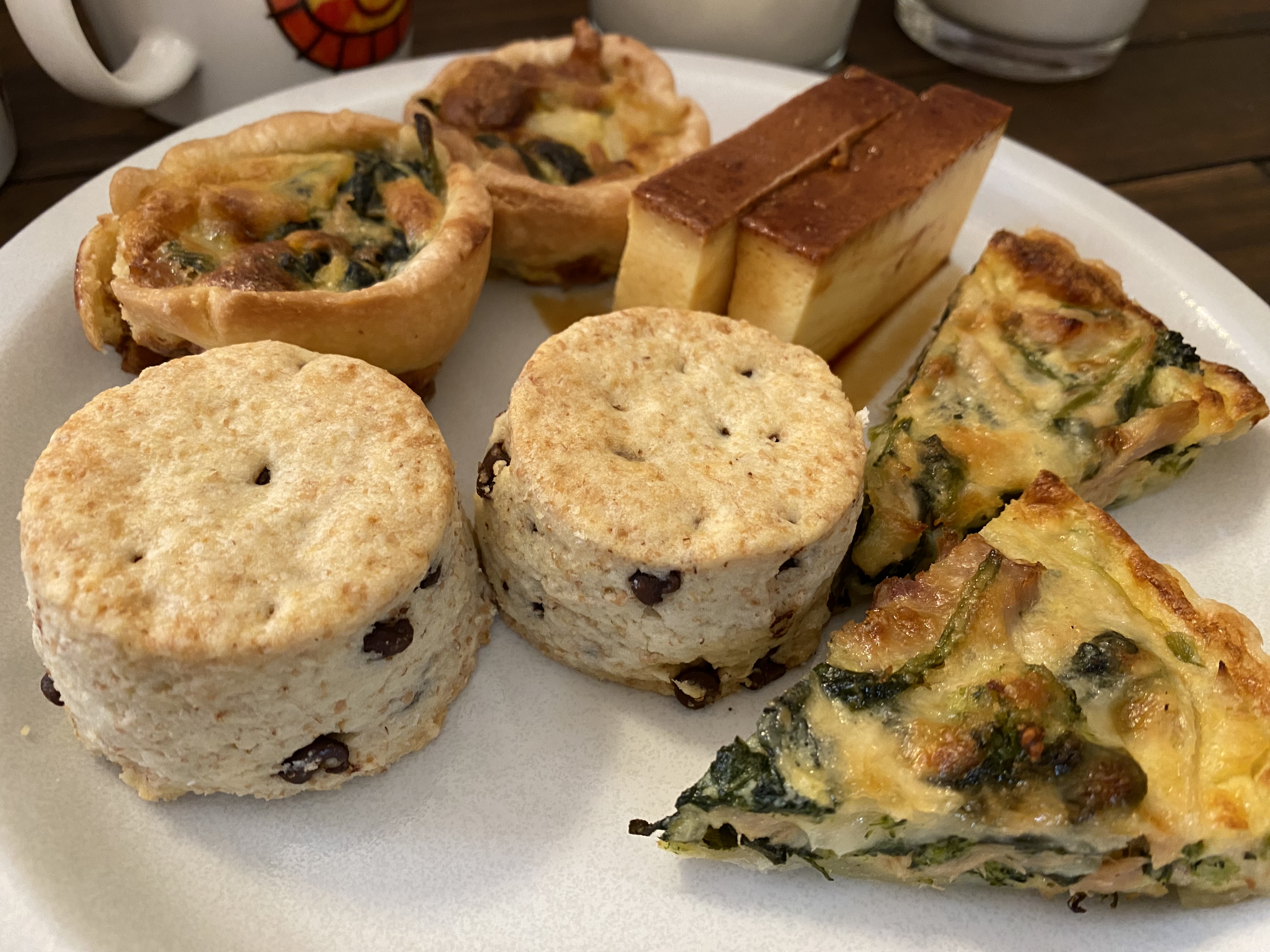 今日のcookingは『週末の余りものオールスター』と『スコーン』ですッ!まずは『週末の余りものオールスター』をお届けしますネーミングほど特別なことはないのですが先週末までに食べおせなかったものをちょっとだけアレンジして『ワンプレート』に仕立ててみました①週末のカレーを 『リメイクカレーミートスパ風』②キッシュ (温めただけ)③食パンと以前買ったフランスパンを 『フレンチトースト』う〜ん…何気に盛りだくさんにッ! お腹いっぱいですね①と②は、もともと実績のあるメニューとなりまして③のフレンチトーストははじめてでしたが、思いのほかおいしかったですそれも、買ってきたフランスパンよりも家でつくった食パンの方がとても染みこんでいてジュワ〜って感じでおいしかったですまだ卵液に漬けこんでいるフランスパンがあるのでひょっとすると、時間をおくと染みこみが良くなっておいしくなるのかもしれないですね