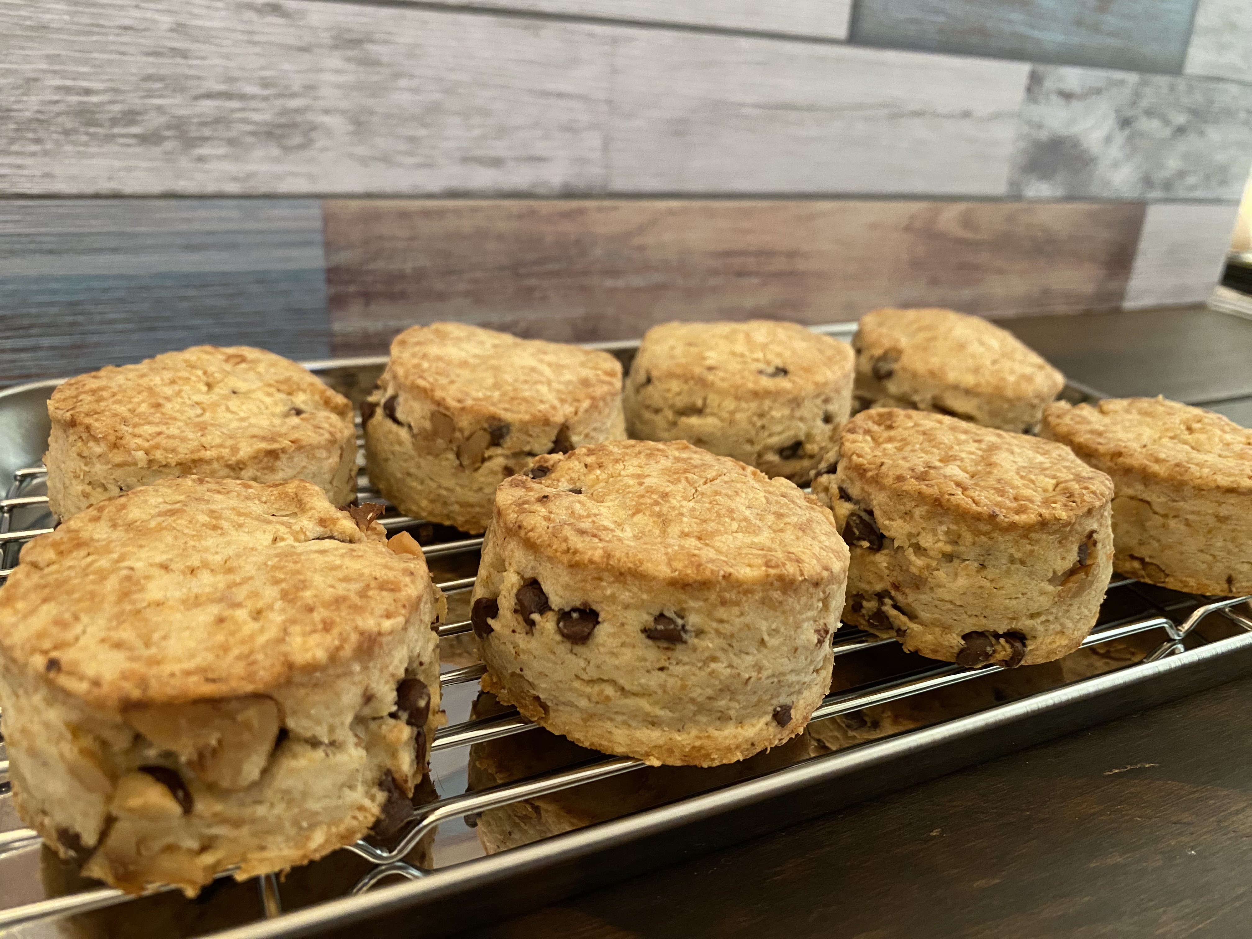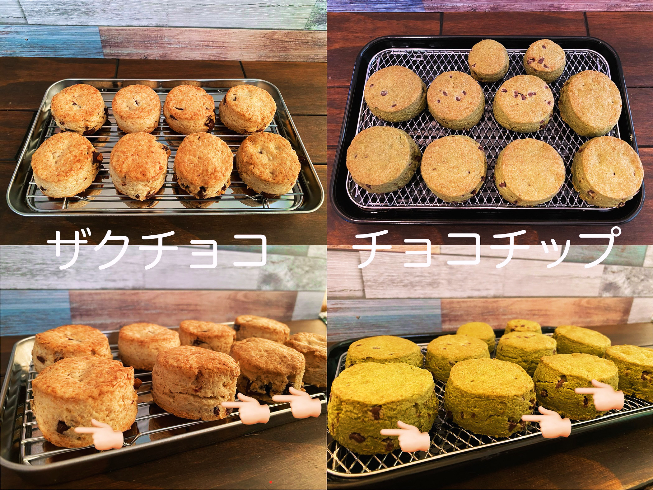 さきほどのブログでは今日一日のミッションをふり返ったところで、なかなかの過密スケジュールでしたッ!(今日のcookingは一日前倒しメニューでしたし)…というところで、『スコーン』が焼きあがったのでお届けします今回は、月曜日のときに好評だった、新作の『抹茶&チョコチップ』ですあと、そのときに、リクエストとしてあった「ホワイトチョコの仕様」をつくってみました結果…どうでしょうかねぇ〜見た目のところでは、ふつうのチョコチップの方がチョコが入っていますって感じがよく分かるのかな…と思ったりもして…味のところも、ふつうのチョコチップの方がちょっとビターな感じの味わいがするのかな…と思ったところでした何はともあれ、リクエスト&発案者の『スコーン博士』の感想を聞かなくてはですね
