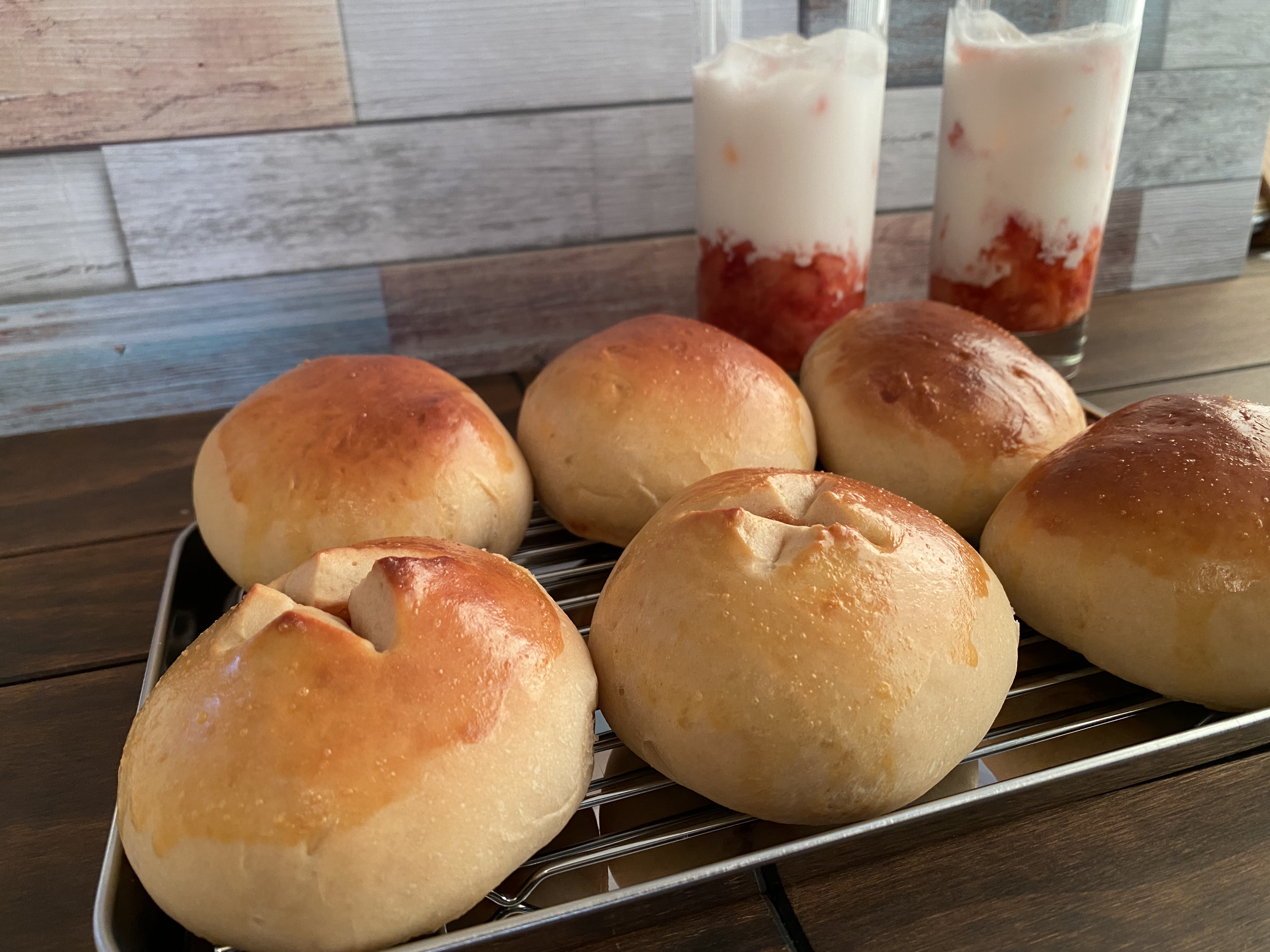 今日のcookingは火曜日なので「パンづくり」ですッ…で、今回は「スコーン」にならってちょっと粉の仕様を変えてつくってみました※ 強力粉の銘柄変更今回使用した強力粉は『春よ恋』です!そのほかの材料は基本的に変えないでどんな感じになるのか確認してみましたあと、『いちごジャム』をつくったのでパンの中に入れて『いちごジャムパン』とミルクに入れて「いちごミルクジュース」にすることにしましたッ!(つくったパンの種類) ①クリームチーズ&いちごジャム ②ミルククリーム&いちごジャム ③ミルククリーム※ミルククリームは 信州発「牛乳パン風」のクリームです お土産でもらったのでつかってみました結果…うん、うん、コレ!コレ! お店みたいなふわふわのパンですッ! ちょっと形は悪いですが…ほほ〜ん!強力粉の種類が変わるとこんなに変わってくるんですねッ!良い勉強になりましたよぉ〜し、良い感じだったのでまたこの仕様でつくってみたいと思いますッ!