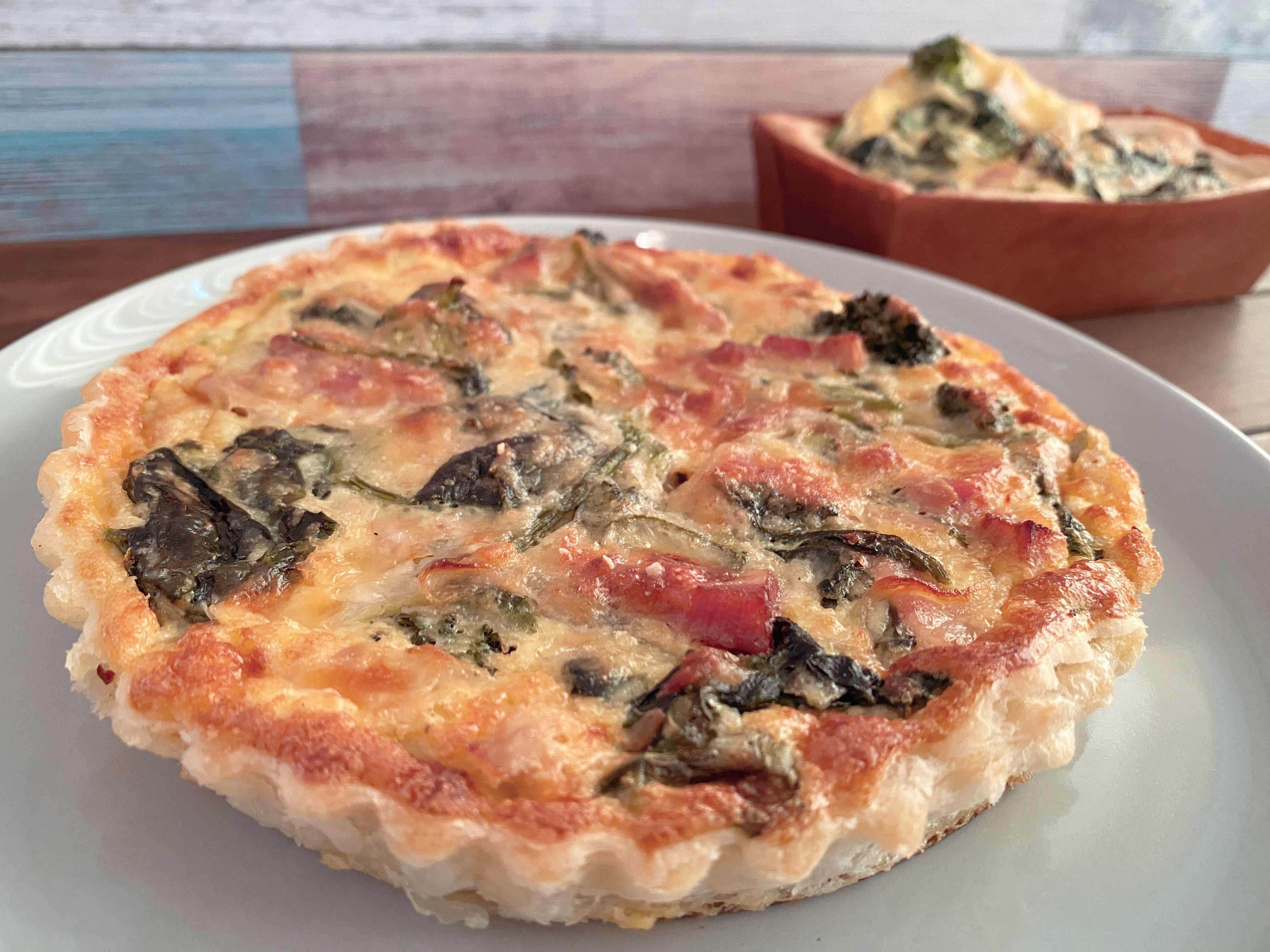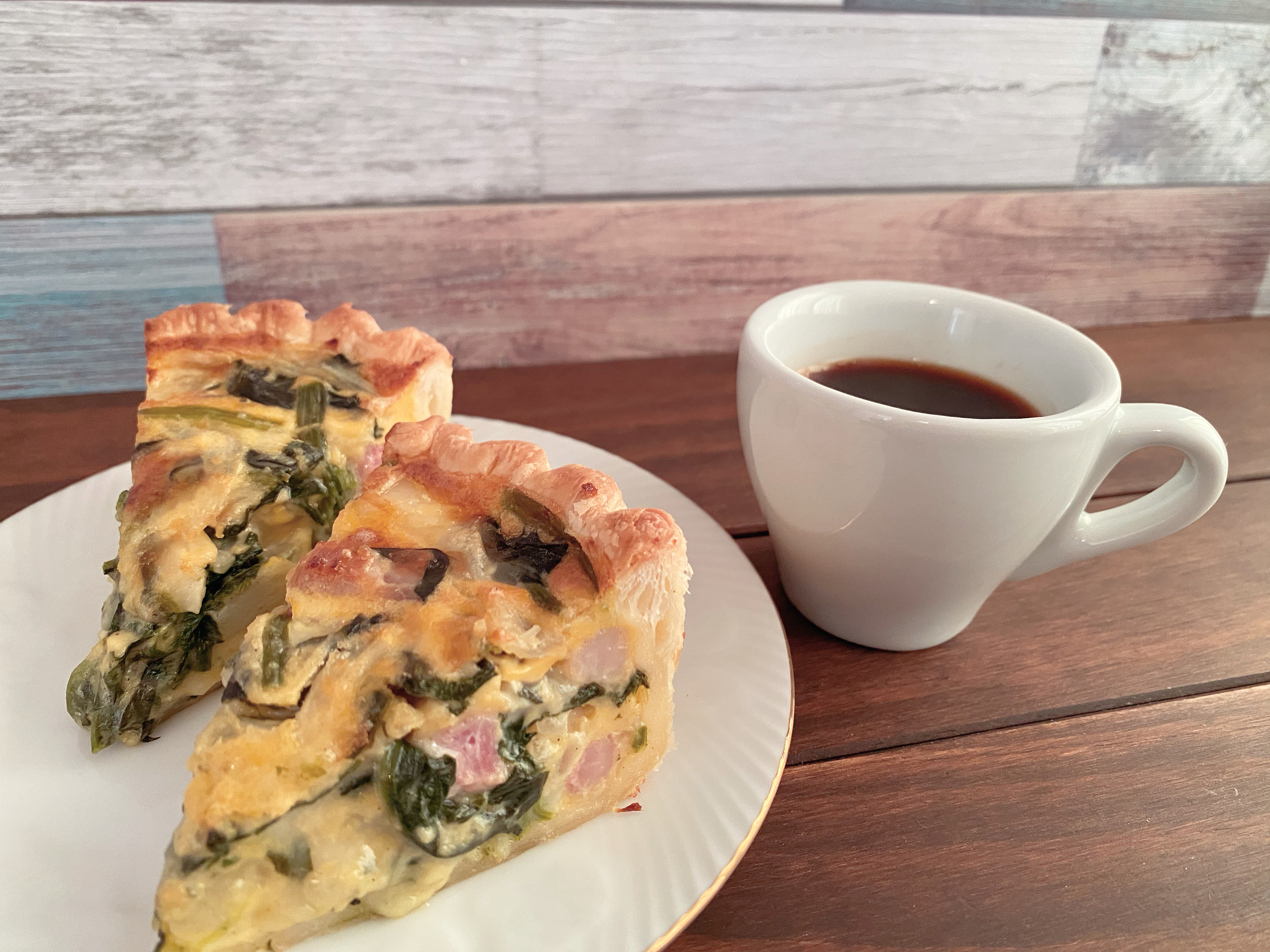 今日のお昼は、ひと足先に「土日朝食用のキッシュ」をちょっとだけ食べてみましたお知らせのように、今回は「18φの大きさで厚みのある仕様」で実際にどんなものか事前確認をしてみました(※明日の朝は妻も食べる予定)実際に食べてみて、まず、ひとつ大きな違いとして分かったのは「具材を含んだ卵液」が、とっても『ふわっふわ』でした!ちょうど「茶碗蒸し」みたいな感じですかねッあと、食べ応えとしてもたくさんの具と卵液のバランスが良い感じで厚みがある分、具だくさんでも受け入れ態勢がOKそうですよりまして、今までの「16φの大きさ」はつけ合わせ的なポジションなら良い働きをしてくれると思うのですがいちメニューとしてと考えると、今回の仕様の方が満足感を得られるのかなと思ったところでありますでは、また明日の朝食にてお届けできればと思います