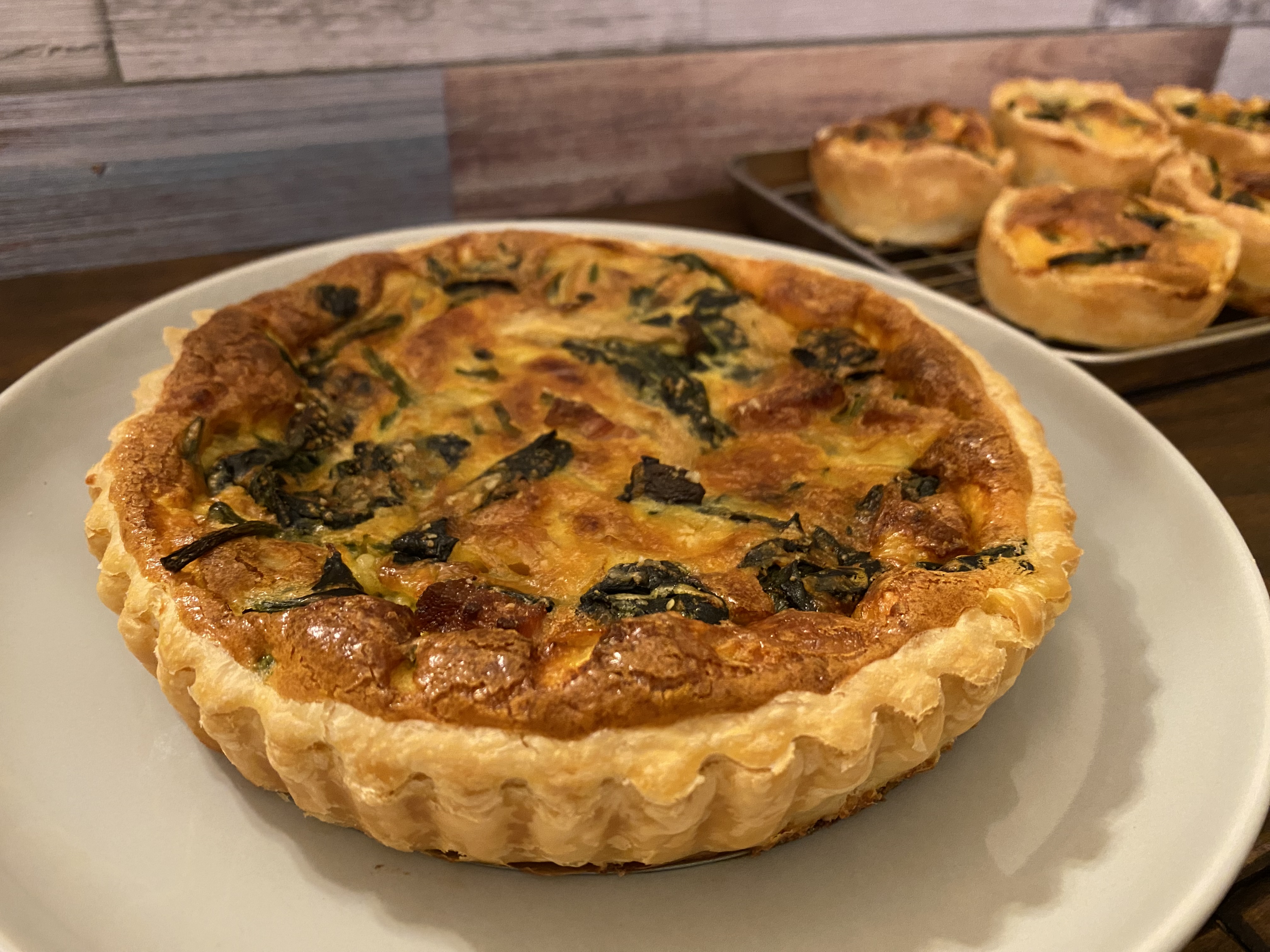 今日は木曜日のcookingなのでホントは「なんでもトライの一日」なのですが明日のわたしは「忘年会」の予定があるので一日前倒しで「定番週末メニュー」の「カレー」「キッシュ」「スコーン」をつくることにしたのでありますまずは、「キッシュ」からのお届けですッ先日お伝えしたようについに「18φのタルト型」を購入したので今回はじめて使ってみることにしました(※ 今までは16φでした)おっ!お店みたいに良い感じにできました!ほほ〜ん、卵液もちょうど使い切りで余ることなくピッタリ!でしたいつもは、タルト型とか耐熱容器にも分けてつくっていましたが……で、今回のキッシュは基本具材の「ほうれん草、ベーコン、玉ねぎ、しめじ」に『じゃがいも』も入れてみました!今回で6回目となる「キッシュづくり」も、大分、形になってきたっぽいですッあとは、今回の大きさの食べ応えってところを、どんなものか確認しておかなければ…ですね