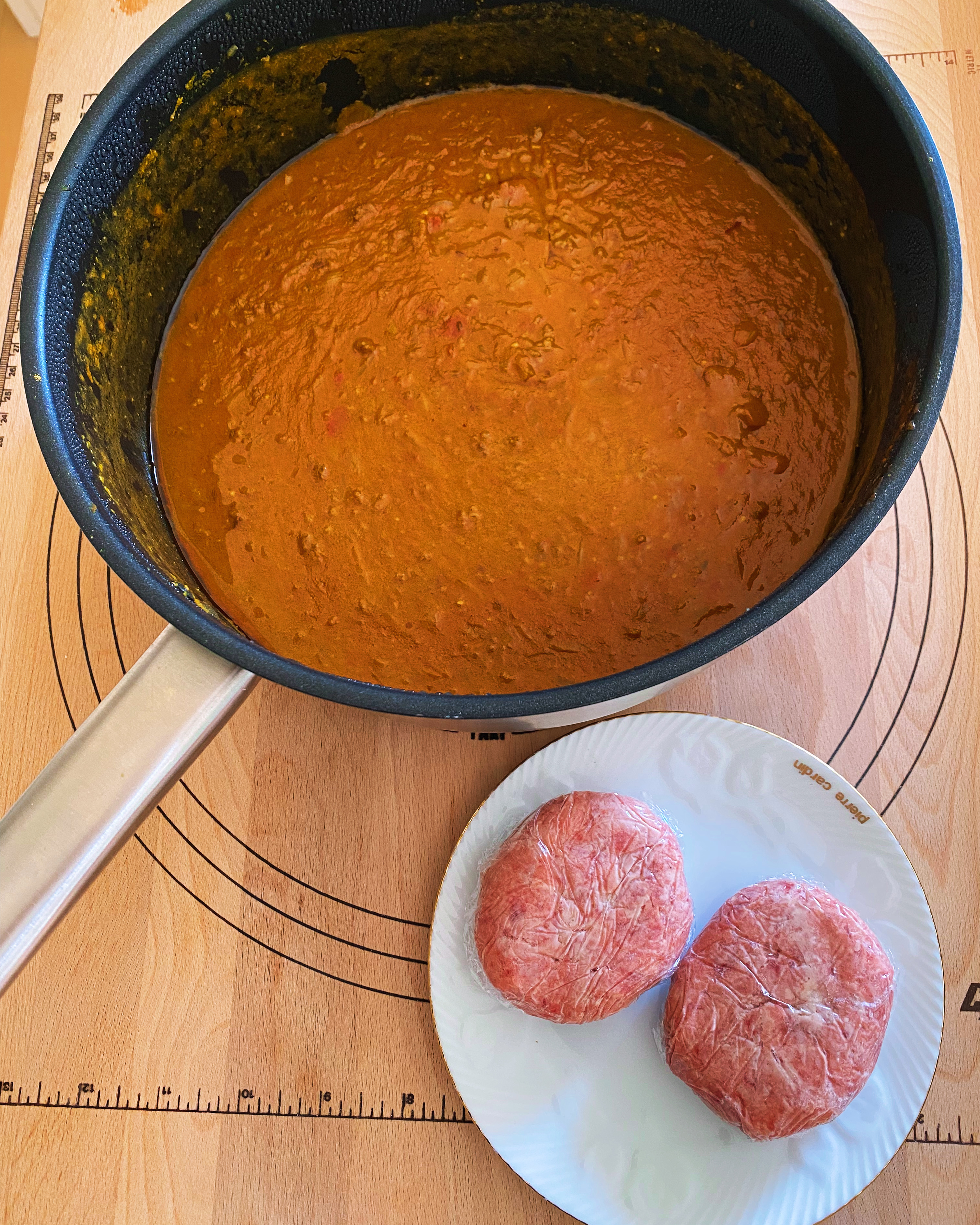 つづいては「カレー」ですッ先週は妻が忘年会だったのでカレーづくりはスキップしていたんですねなので2週間ぶりとなります…で、今回も「欧風バターひき肉カレー」となりますあわせて、トッピングとしては1週間前のパンづくり(バーガー)であまって冷凍してあった「パテ」があるので『ハンバーグカレー』にしてみたいと思いますまた夕飯のときに焼きあげたて、仕上げてみたいと思います