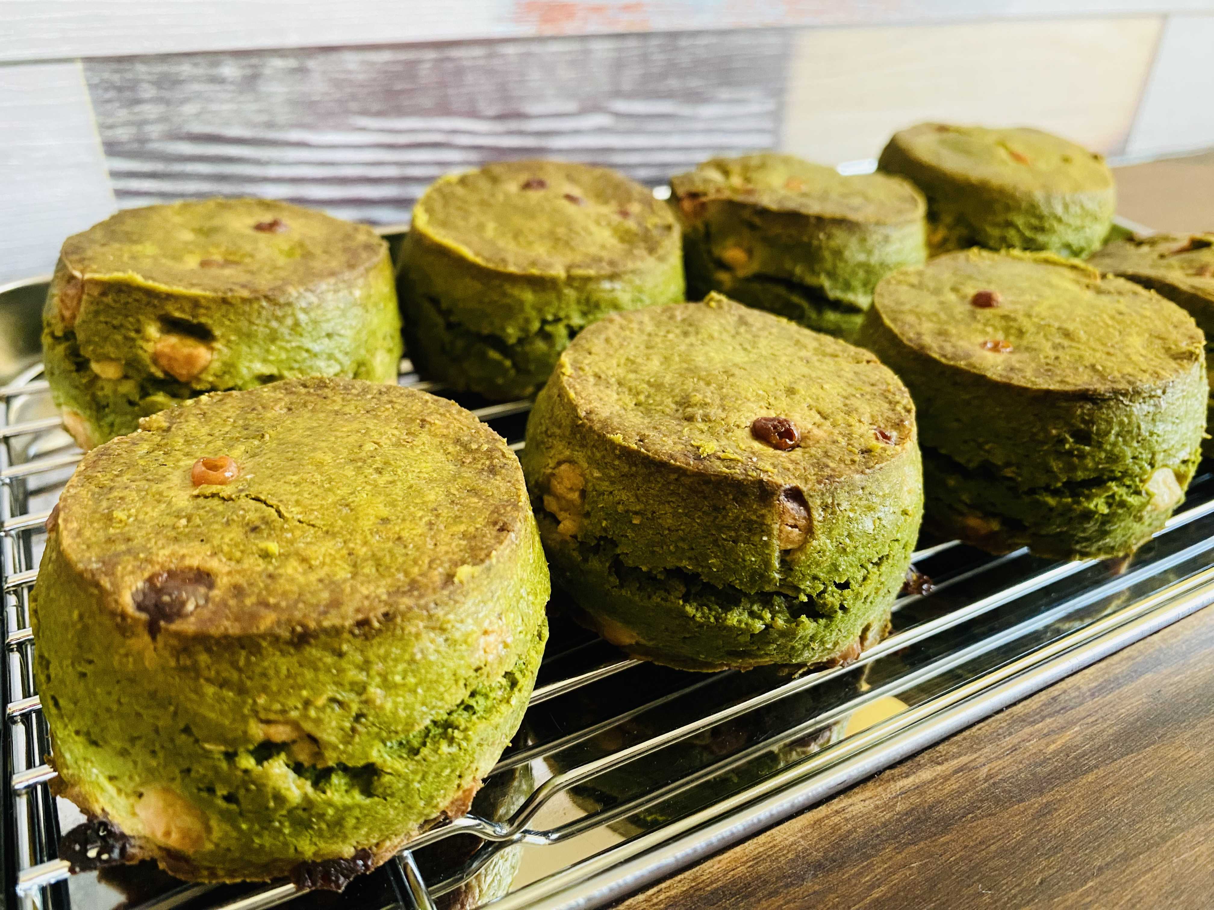 さきほどの「塩麴メニュー」につづいて一週間ぶりの「スコーン」ですここ最近のスコーンづくりでは自家製ジャムを使った「サンド仕様のスコーン」や「のっける仕様のスコーン」などなどいろいろなパターンを試しているものでした結果…いまのところ「これが一番!」ってのがまだ見出せていなくて、完成形には至ってませんが、いくつかトライしてみたいことはあるので、またぼちぼち試していってみたいと思いますそんな中一ヶ月まえに新メニューとして仲間入りした「チョコチップ入りココアスコーン」の感じが良くて、思いのほかスコーン博士にも好評だったものですから、この配合をもとに既存のわが家スコーンの改良版(アレンジ)をひそかにつくってみようかなと思っているのでありました…で、今回わが家スコーンの中から「ホワイトチョコ入り抹茶スコーン」のアレンジに取り掛かってみることにしました今の「ホワイトチョコ入り抹茶スコーン」も十分に「抹茶」の風味と味わいを感じられるのですが、今回は「前出の配合をもとに」…となりますから、いつもの3倍量の抹茶パウダーを使うことになったんですね結果…おっ!コレはこれで良い感じですッ抹茶好きな方には、こっちの仕様の方が良いかもしれないですそれではまた、スコーン博士の見解を聞いてみたいと思います