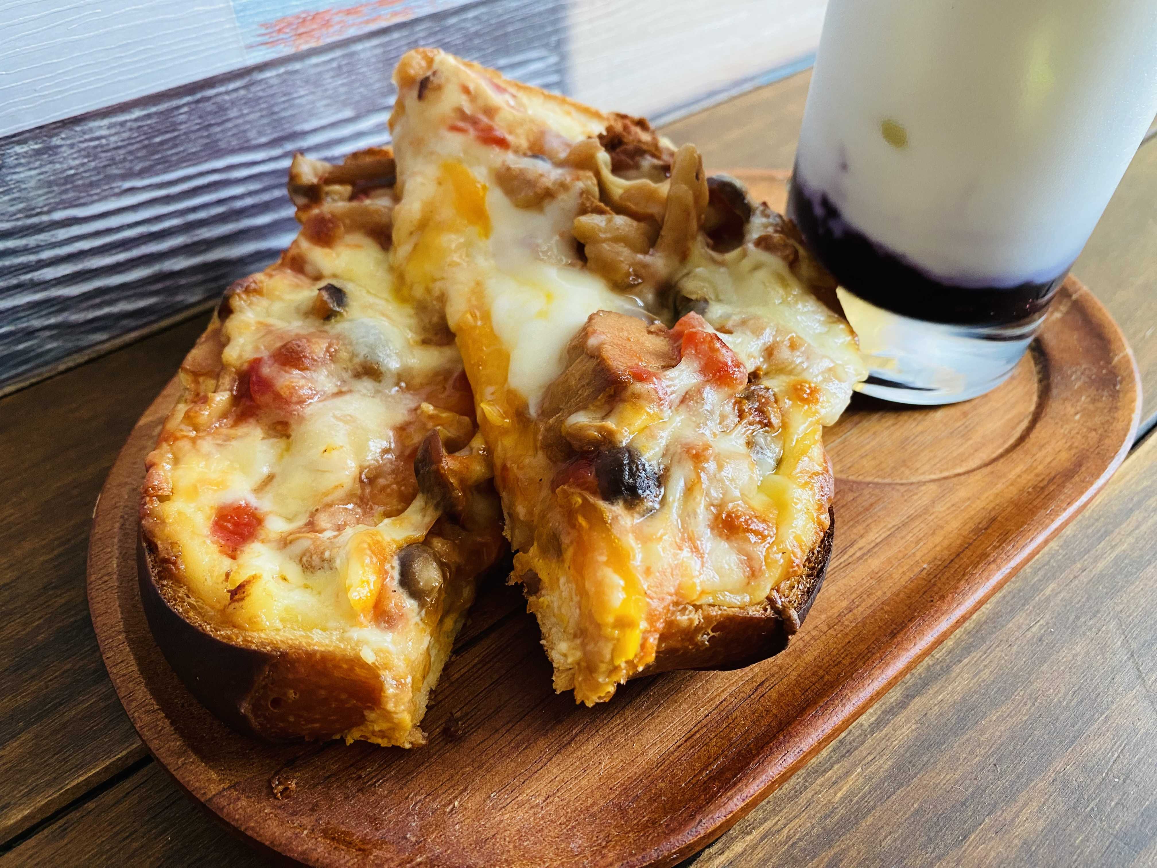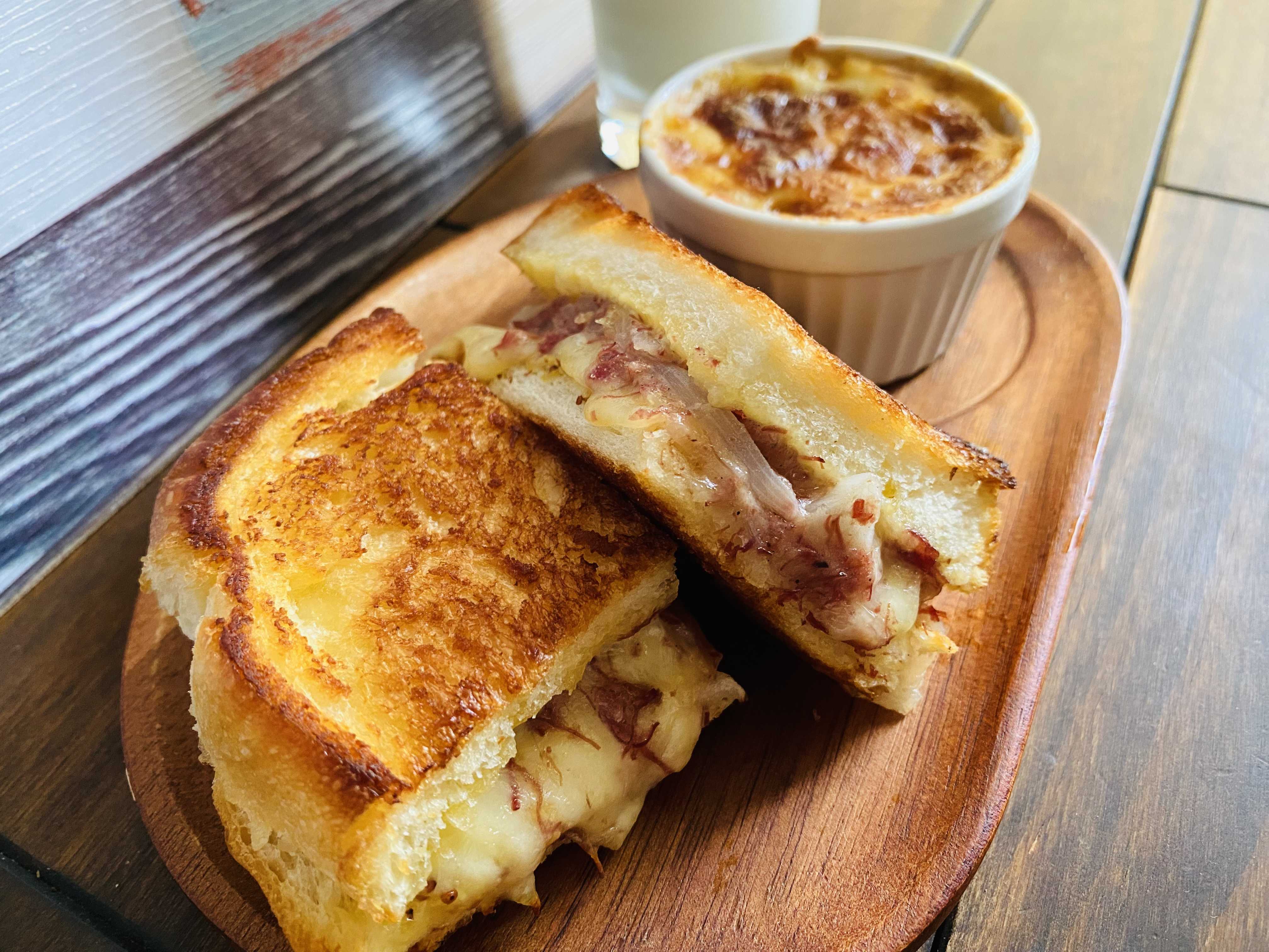 さきほど、今日の午前中のできごとから「やりたいこと!」「気になってたこと」をお届けしたところで、このあとはその後のcookingのもようとなります…とある中午前中は思いのほか夢中になってしまってさらには、ちょうど照りつけるような太陽がのぞきはじめたので、なんだかひさしぶりに汗だくになってしまっていたんですね…そんなこともありましてそれほど「手間ひまかけずメニュー」からなにか出来ないかなぁと思って「クロックムッシュ」にしてみました…といってもたまごを使い切ってしまってたので(さきほどのイタリアンプリンづくりで)どうしようかなと思ってたところあっ!「冷凍してあるカレー」を使ってつくってみよう!ってことになりました ※冷凍カレー…わが家オリジナルカレーイメージでいうといつものクロックムッシュ(マダム)で使っている「たまご」をのっける代わりにパンの中心部(ポケット)へカレーのルーを流し込んでみて、あとはいつものように仕上げるといった感じですおっ!思いのほか即席のわりには良い感じですッ!また今度つくるときはコレにたまごも付けて、スペシャルな感じにしてみようかなと思ったところです