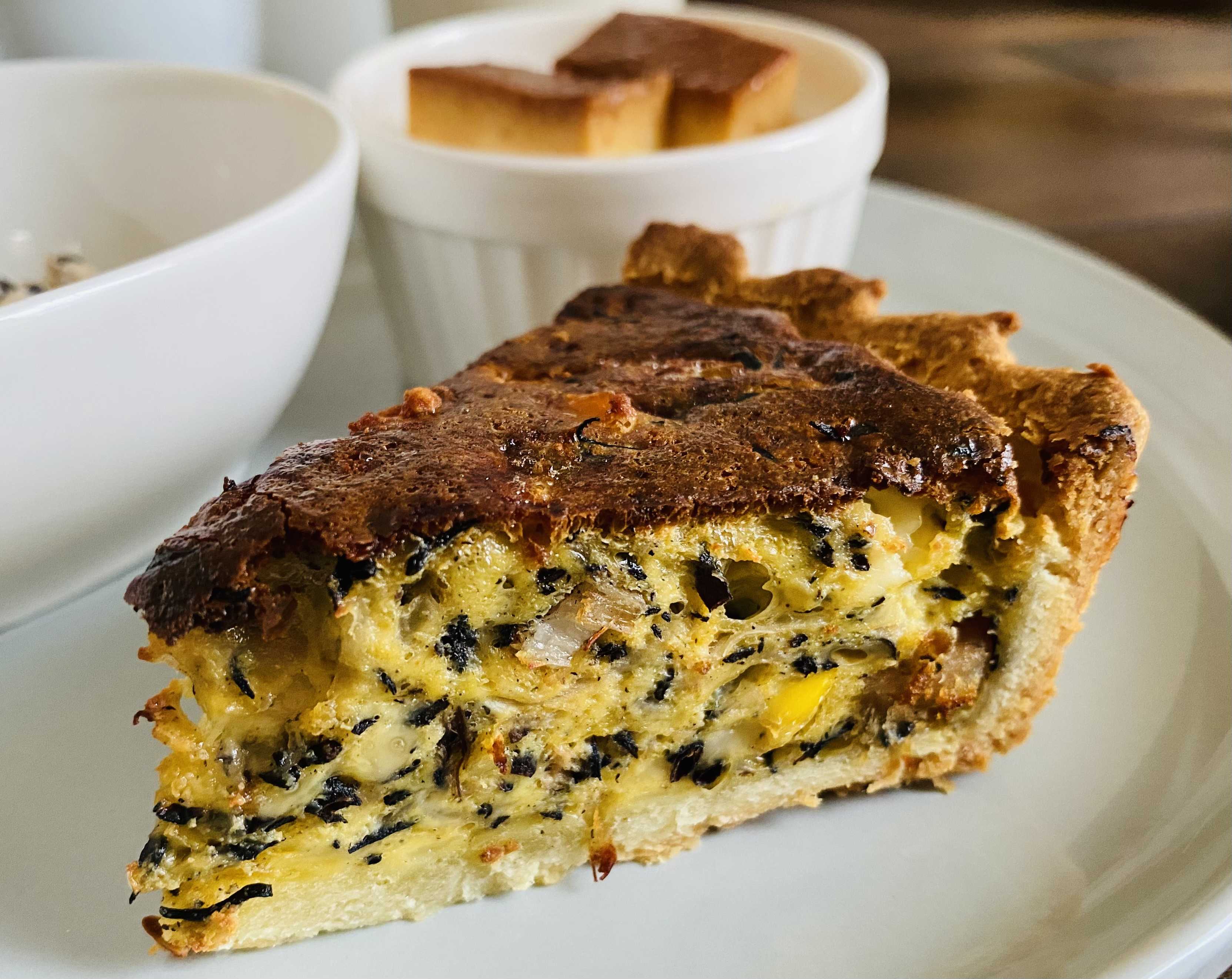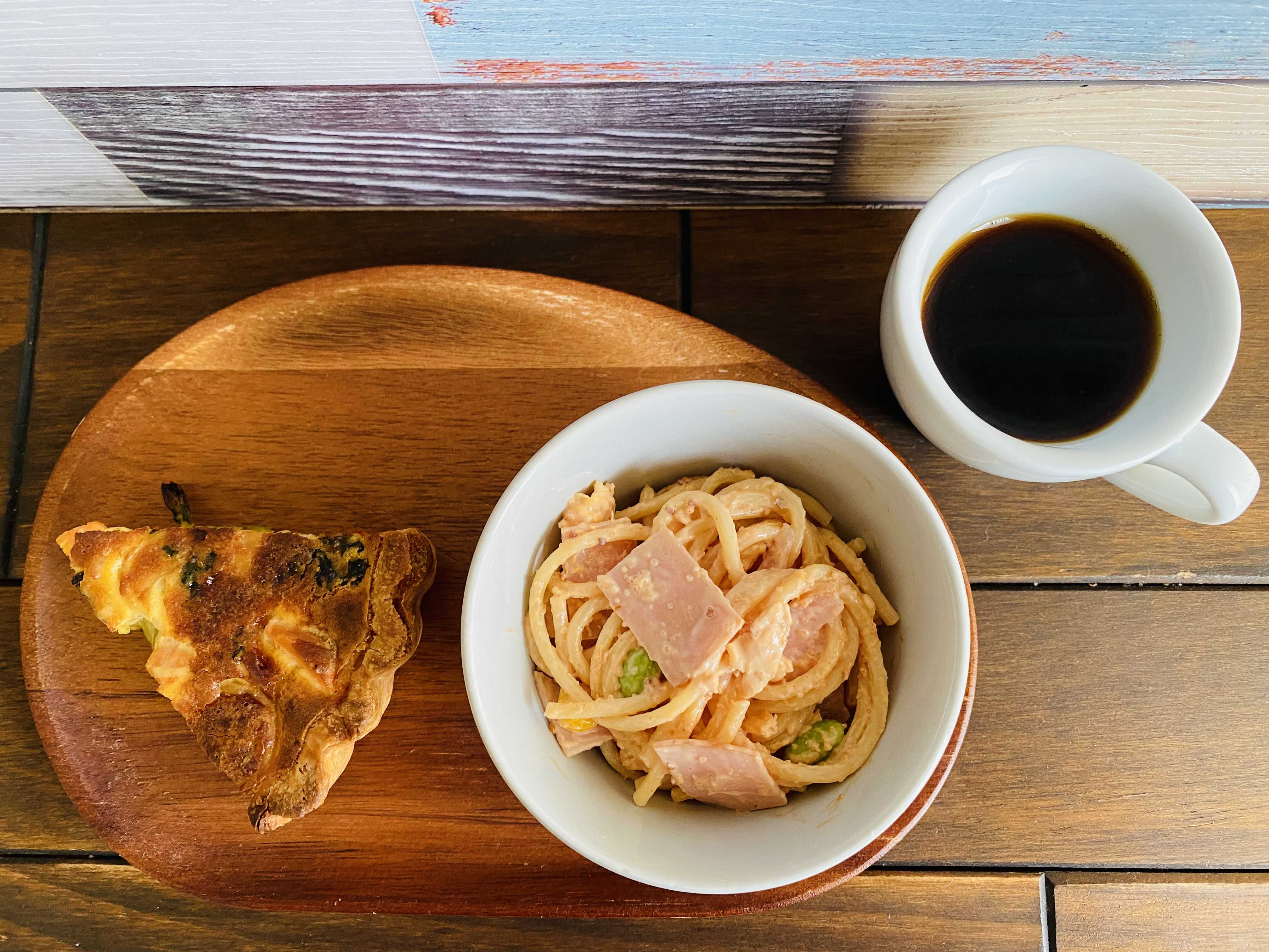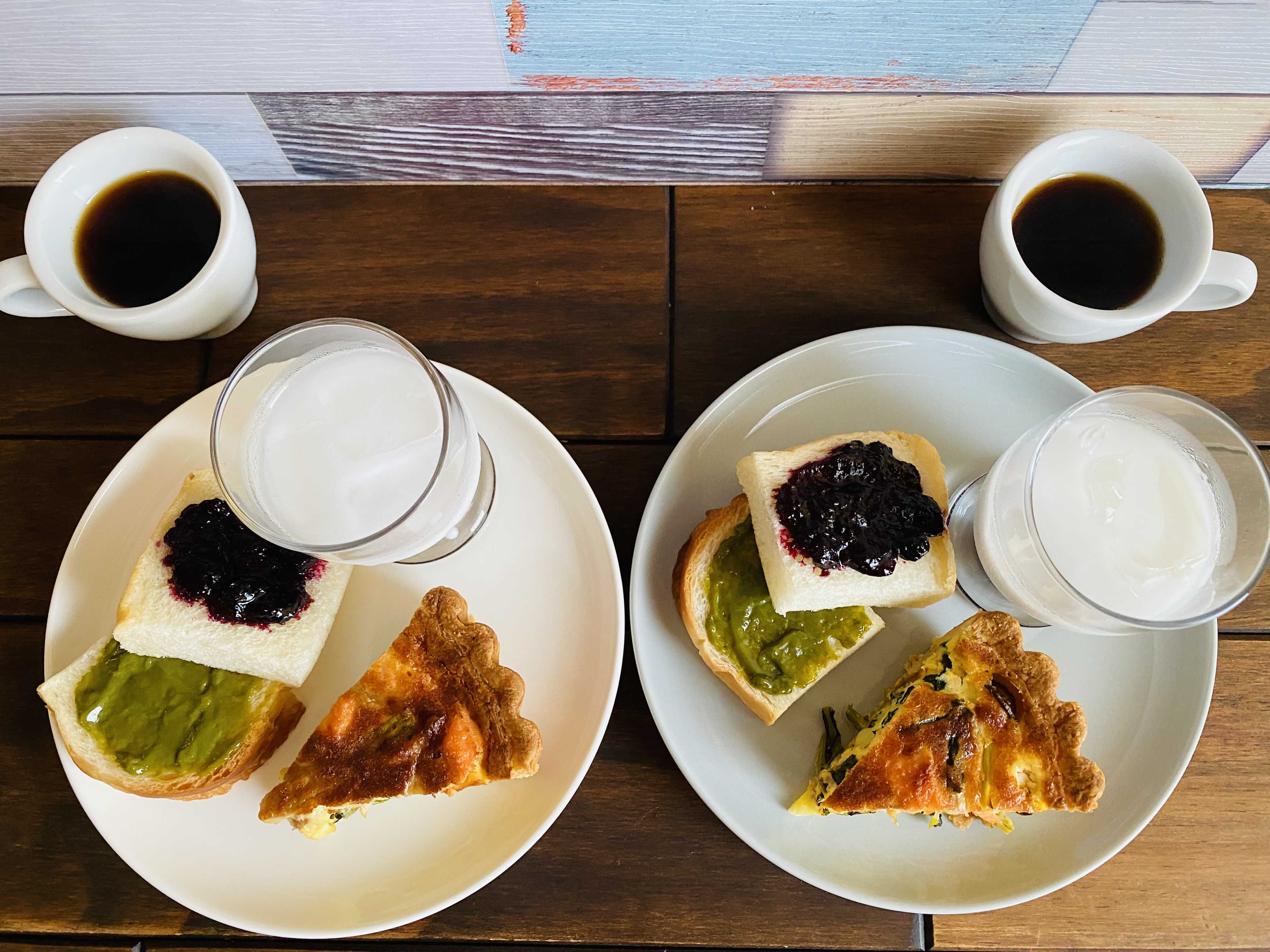 おはようございます今日は彼岸入りですね暑さ寒さも彼岸まで…というようにちょうどこのタイミングにあわせて猛烈な暑さが落ち着いた感じですこのあたりでは昨日に続いて30℃を下回る気温になっています…なんですが、なにやら明日だけはまた真夏日の予報とあって…以降も気温のアップダウンをくりかえすのでこの季節の変わり目に体調を崩さないように注意したいと思いますそんなことを思いながら2週間ぶりの「モーニング」のお届けです昨日のcookingは「ひさしぶりの通常運転」で「カレー」と「キッシュ」をつくったのですがそれ以外の「サイドメニュー」を考えてなかったんですね…あっ…そういえばそうだった…と…ってなことでメインの「キッシュ」にちょっとだけトーストをそえてみてなんとかそれっぽくしたところです…なので今回特筆するのは「キッシュ」だけですねお知らせのように今回のキッシュは生地に「塩麴」が入っていて昨日の焼き上げ直後の印象では生地の色目がいつもより濃くて香ばしい感じがして、なにより生地に堅さが生まれたように見えたんですね…で、実際にさきほど食べてみたところ印象どおりの風味と味わいとなるものでしたおっ!これは良いですね使用した塩麴は「小さじ1」なんですがこれはどの変化があるとは!またこれからの「キッシュづくり」で再現性を高めていってみたいと思います(9/20 わが家モーニング)・シャケ&クリームチーズ入り 小松菜とベーコンのキッシュ・トースト(自家製ブルーベリージャム) (抹茶ミルクジャム:購入品)・ドリップコーヒー・ブルーベリーミルク