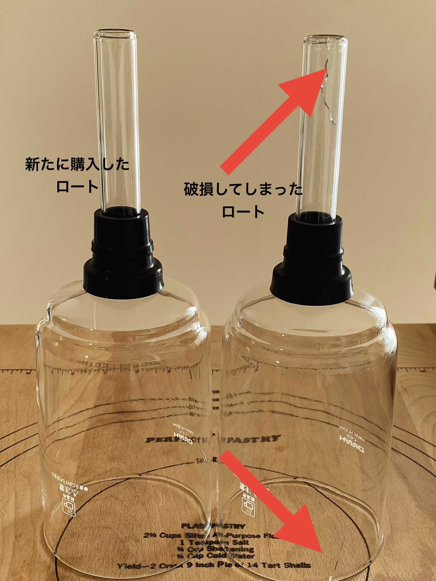 こんばんはこの時間のお届けは「わが家のサイフォン」についてです「実は…」先週のことなんですが残念なできごとがあって…いままで大切に使っていたサイフォンの「ロート部」をあろうことか不注意で割ってしまったんですね(ロート上部にコップが接触)もぅ…それはそれはかなり凹みました…たしかに諸行無常のこころってところでは「形あるものいつかは壊れる」とありますがなんでそのタイミング⁉︎…としばらくのあいだは、その事実を受け止められないくらい落ち込みました(ちょっと大げさですね)その後しばらくして新しいロートを手配するために型番(品番)確認しようとあらためて破損したロートを見てみると「な、な、なんと…ほかにも亀裂がッ⁉︎」今回の破損部分と正反対のロート下部(フラスコ内に浸かるとこ)にもあったんですねさすがに、この亀裂があれば使うときに気がつくと思うので、おそらく今までに接触があったりして亀裂まで至ってなかった弱い部分が、今回のことで致命傷になったのかなと思うものでありました…ってことでこの先、それを気がつかずに使い続けてコーヒーを淹れてる最中にそれが原因で大惨事となる前に、こんなかたちで「おぼしめし」があったのではないかとあらためて凹んでいた自分に言い聞かせてみるものでした どんだけ豆腐メンタルだよって感じですね…また大事に使っていきたいと思います