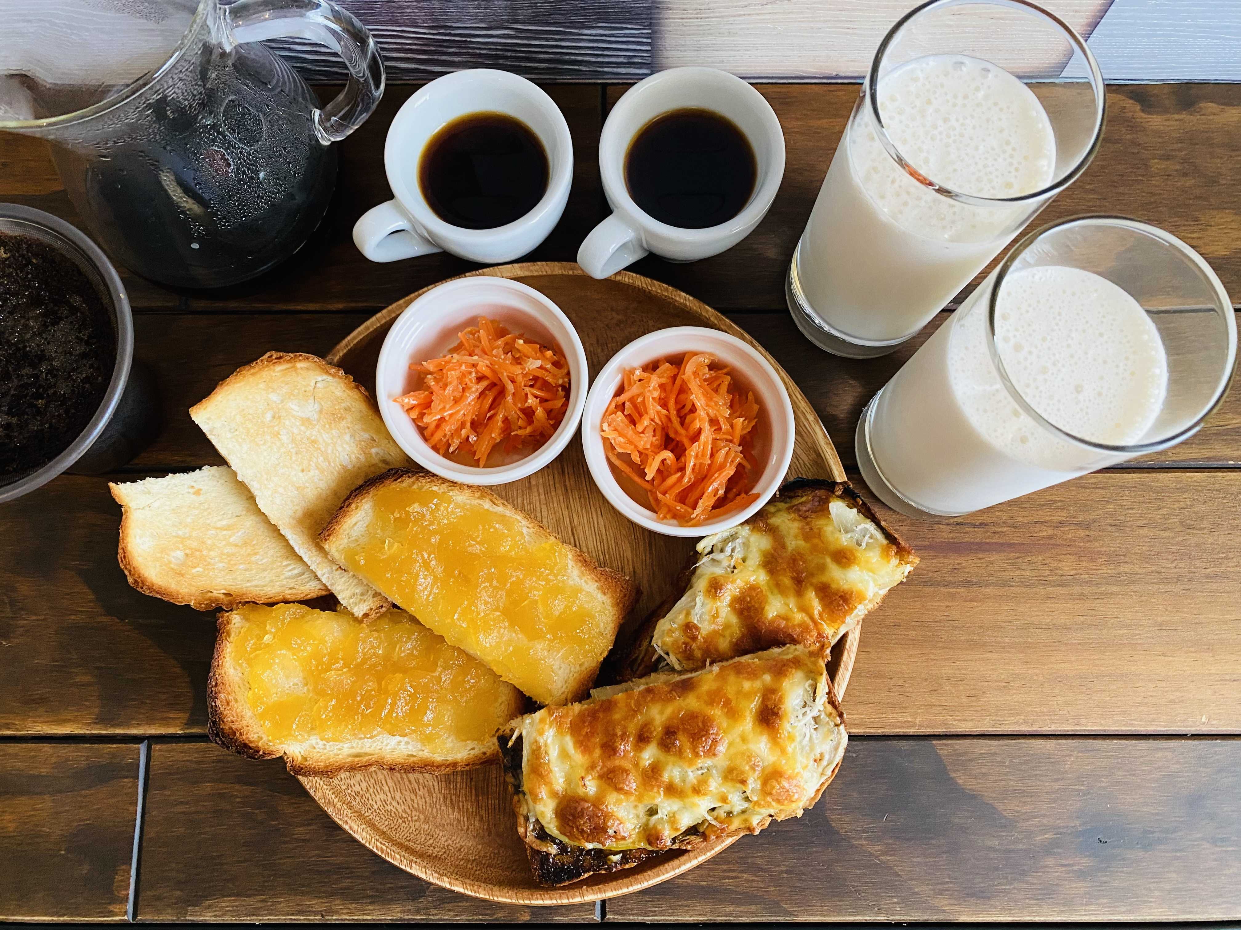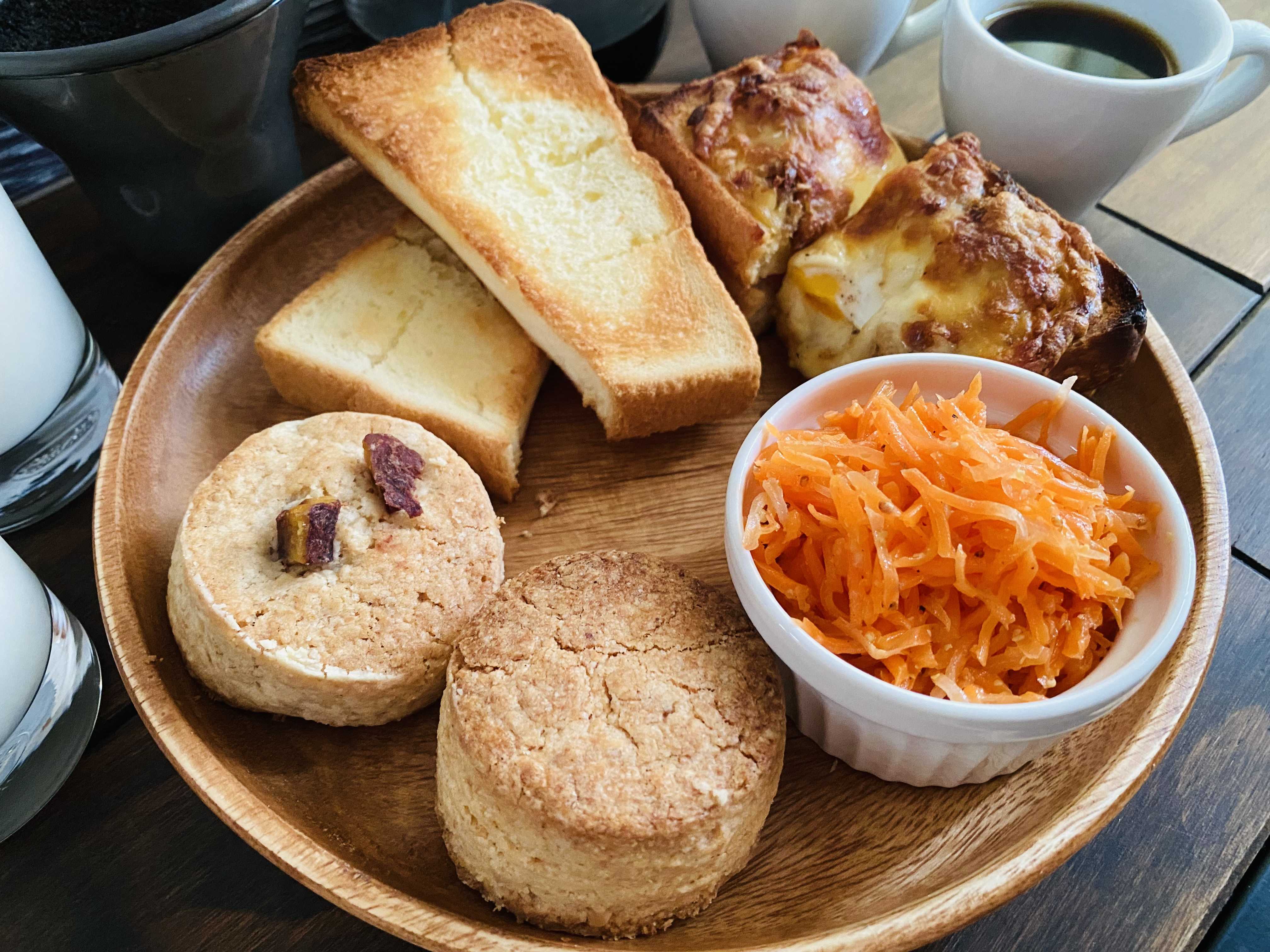 おはようございますこのあたりの今日は予報どおり涼しくて天気はくずついてますが過ごしやすいですそんな涼しさは昨夜から兆しがあってエアコンをつけなくてもいられたんですねでも、来週月曜日あたりから(台風通過後)また暑さがぶり返すようなのでくれぐれも体調には気をつけたいところですう~ん…衣替えがなかなか難しいですね…では、「わが家モーニング」のお届けですん⁈…昨日は週末モーニングづくりをスキップしていて何かあるの⁈…ってとこですが…今いる戦力⁈…あっ、ありあわせでモーニングを取り揃えてみるものでした(10/11 わが家モーニング)・クロックマダム (先日つくったツナフィリング入り)・栗入りスコーン& ピーナッツバタースコーン・にんじんラペ・ヨーグルト (先日つくったキウイジャム入り)・ドリップコーヒー