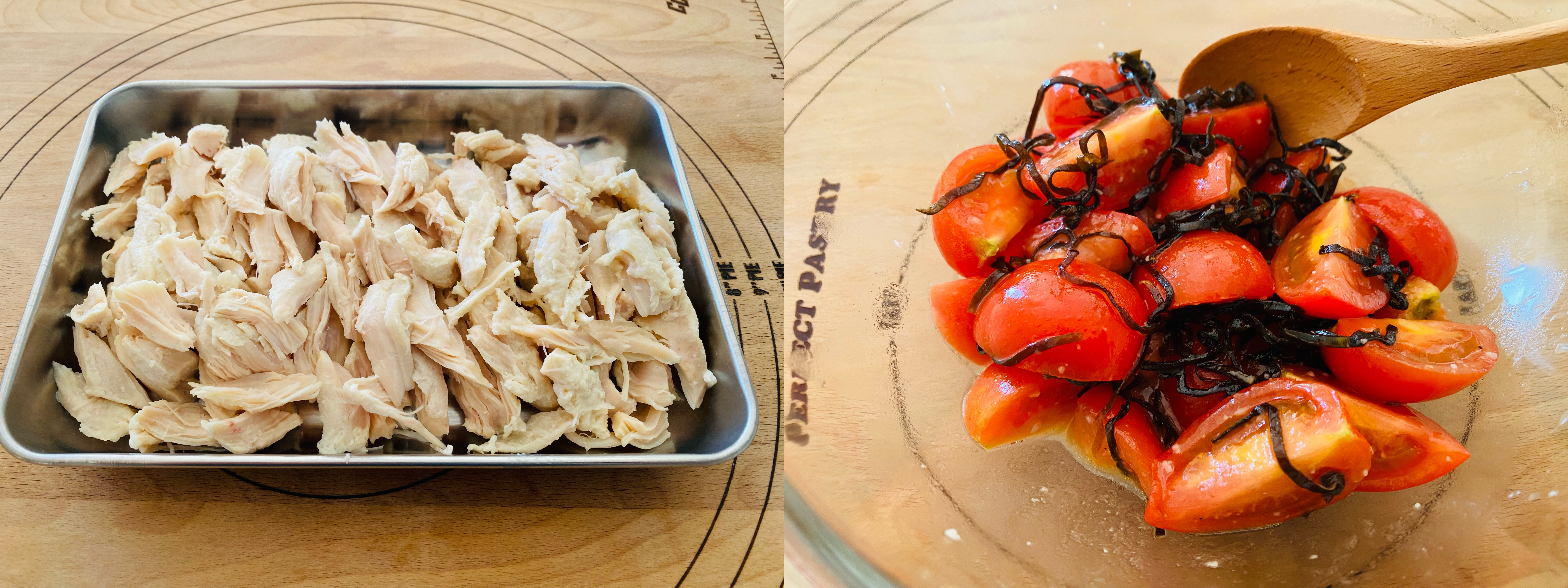 それでは次のお届けをしますね今日は盛りだくさんですッ!今回はめずらしくコチラのお題にしました9月ぶりのひさびさの登場となるのですが実をいうとそれ以降の週末cookingでは何らかの形でサラダが定番メニューになったのであらためてお知らせはしてなかったんですねそんな中、今回お知らせとなったのは定番サラダのほかにも新作メニューが2つあったからなんですねッ「ツナと塩昆布のサラダスパ」「カプレーゼ風サラダ」「ツナと塩昆布のサラダスパ」 → いつものサラダスパとはちょっと味をかえて 和風っぽい仕上がりの感じですかね 塩昆布を消費するメニューにはGoodですね「カプレーゼ風サラダ」 → 先日パスタの方ではじめて使った ジェノベーゼソースを 今回はサラダで使ってみることにしました ほんとはモッツァレラチーズの方が よりそれっぽい感じになると思いますが ひとまずは試しに…ですねではでは…また明日のモーニングでお届けできればと思います