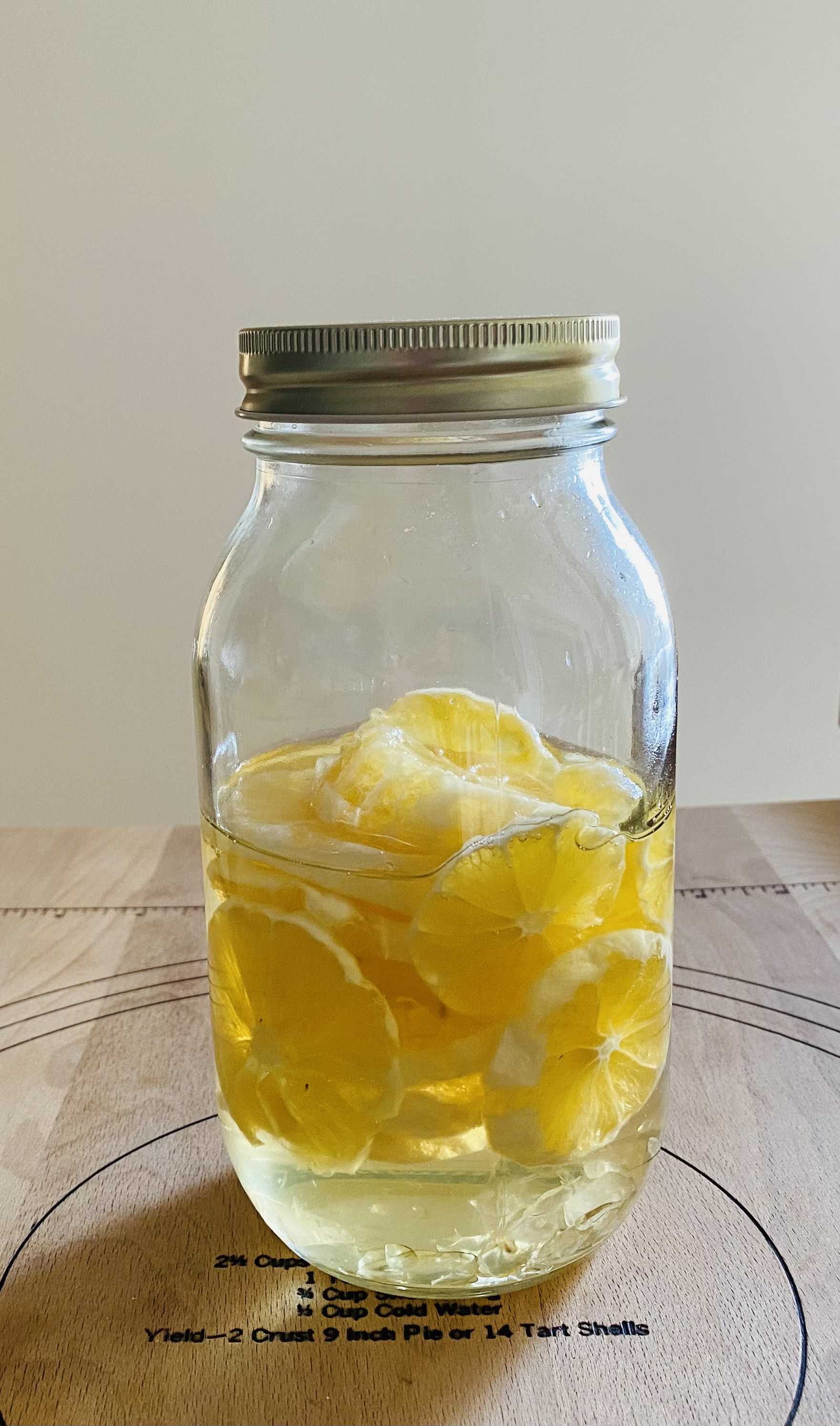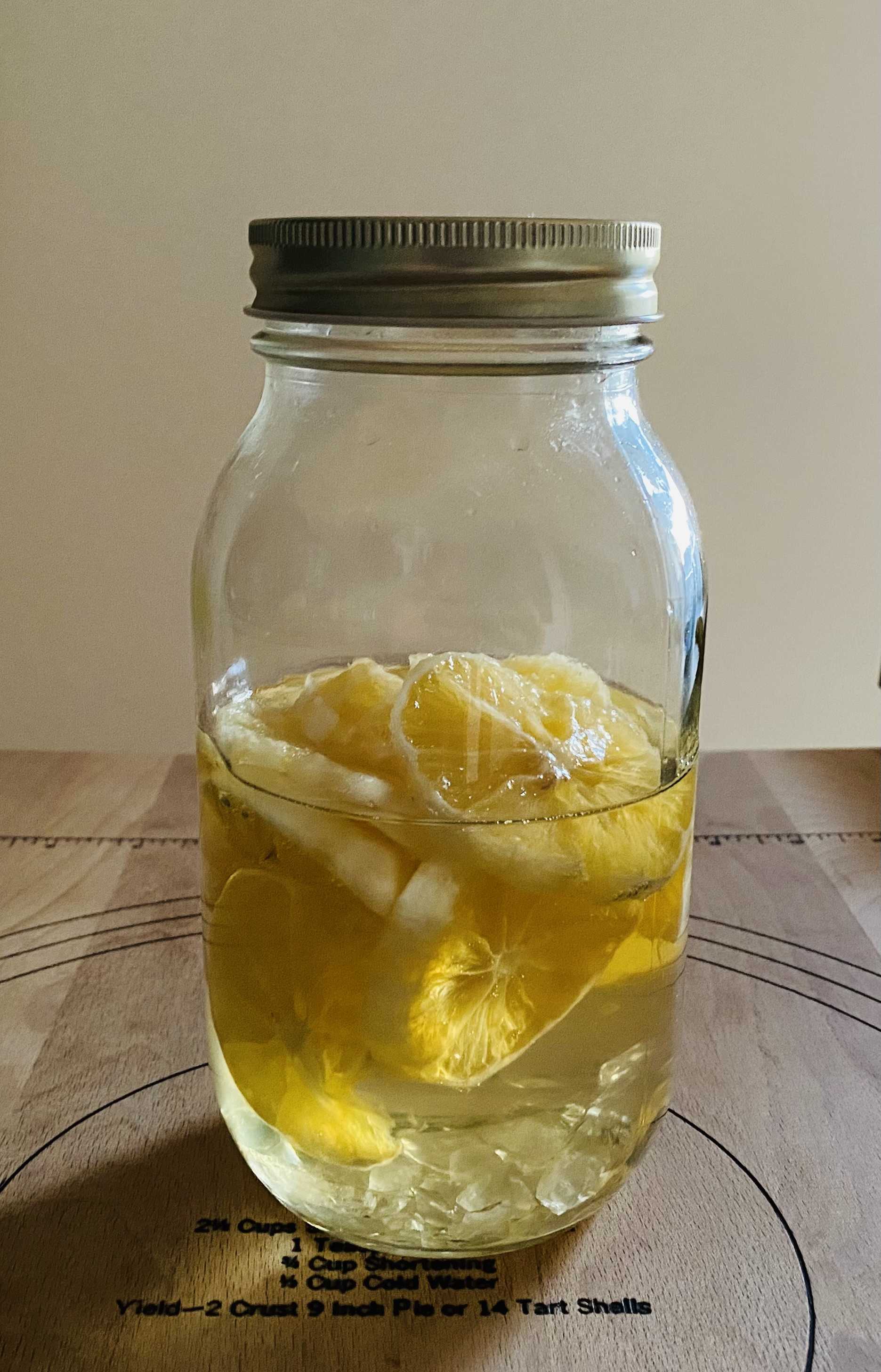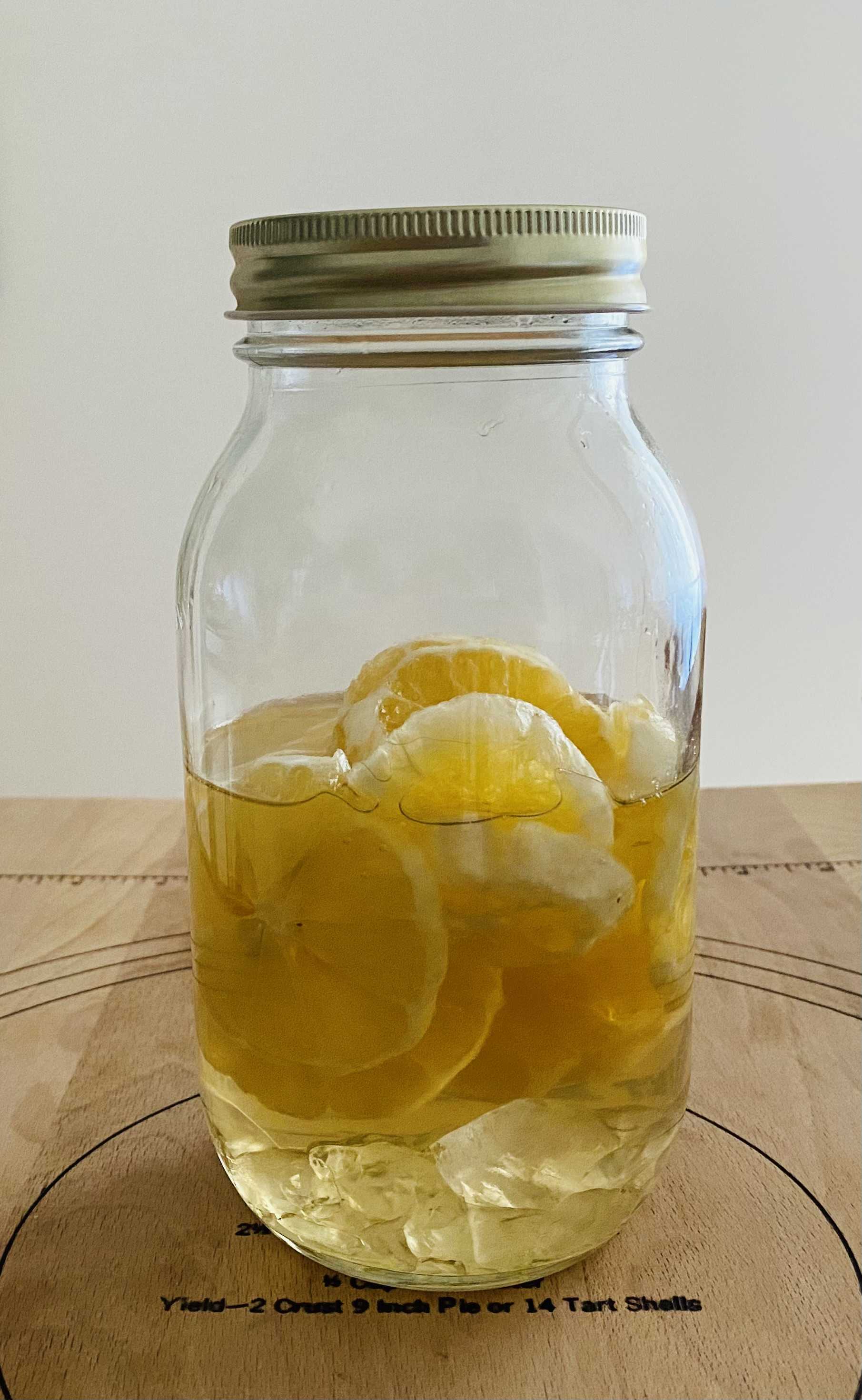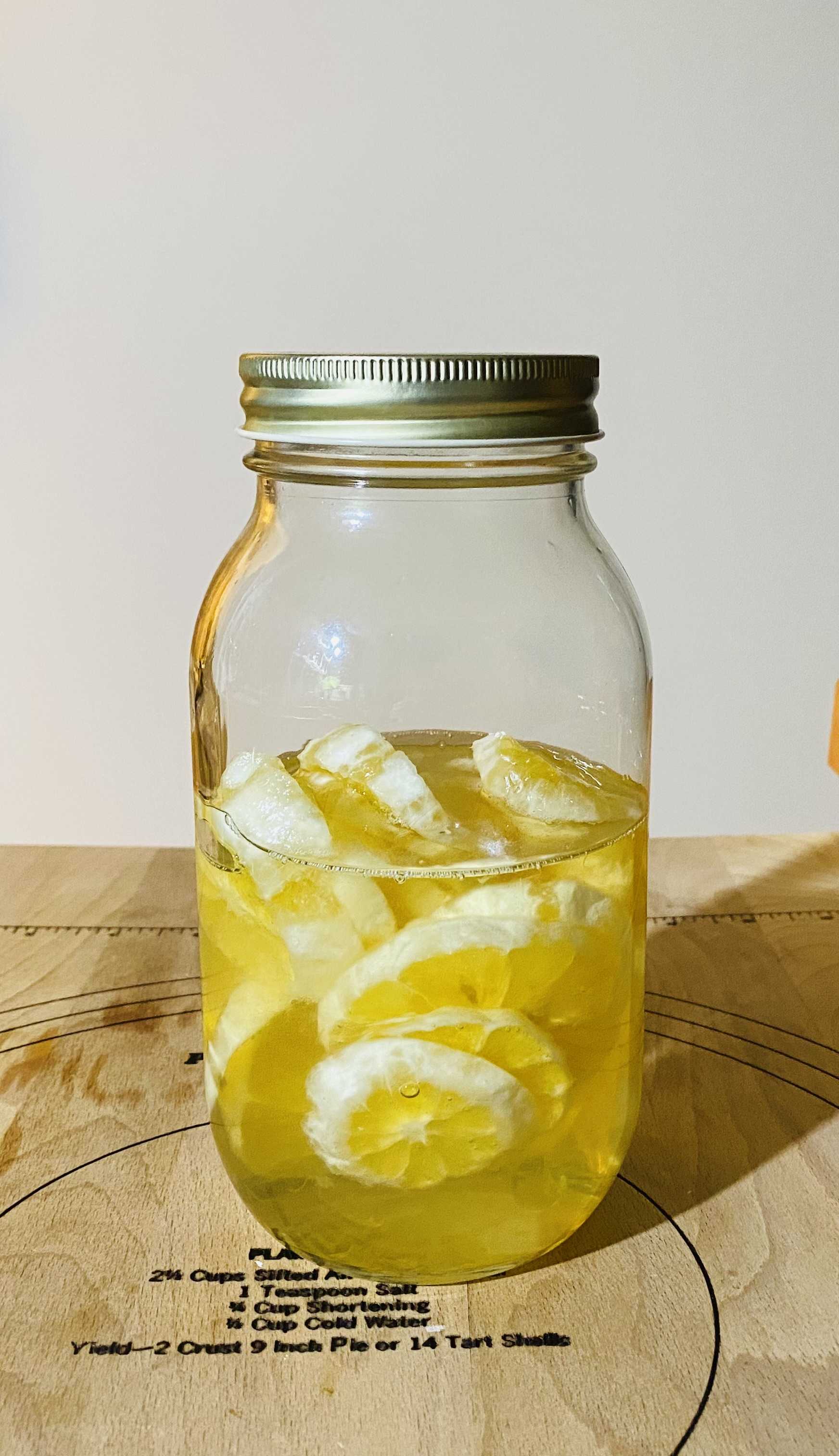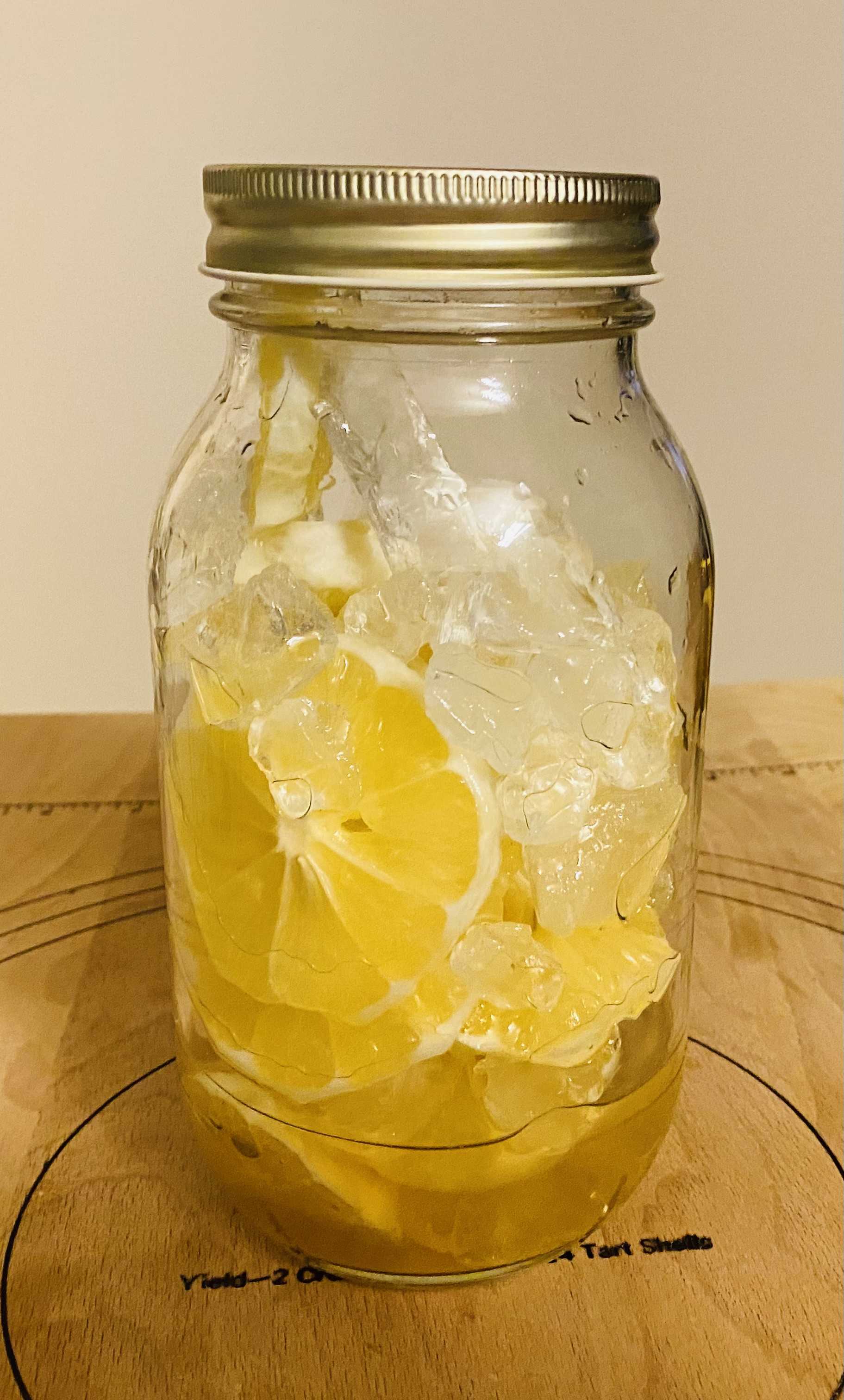 それでは本日最後のお届けは4日目の「レモンシロップ」の様子ですあやうく日が変わってしまうとこでした今日のお知らせしますね(4日目の様子) ・ほぼほぼ氷砂糖が溶けてきましたね 完全に溶けたあとは熟成期間ですかねそれでは、また明日の様子をお届けできればと思います(写真)・4日目・3日目・2日目・初日