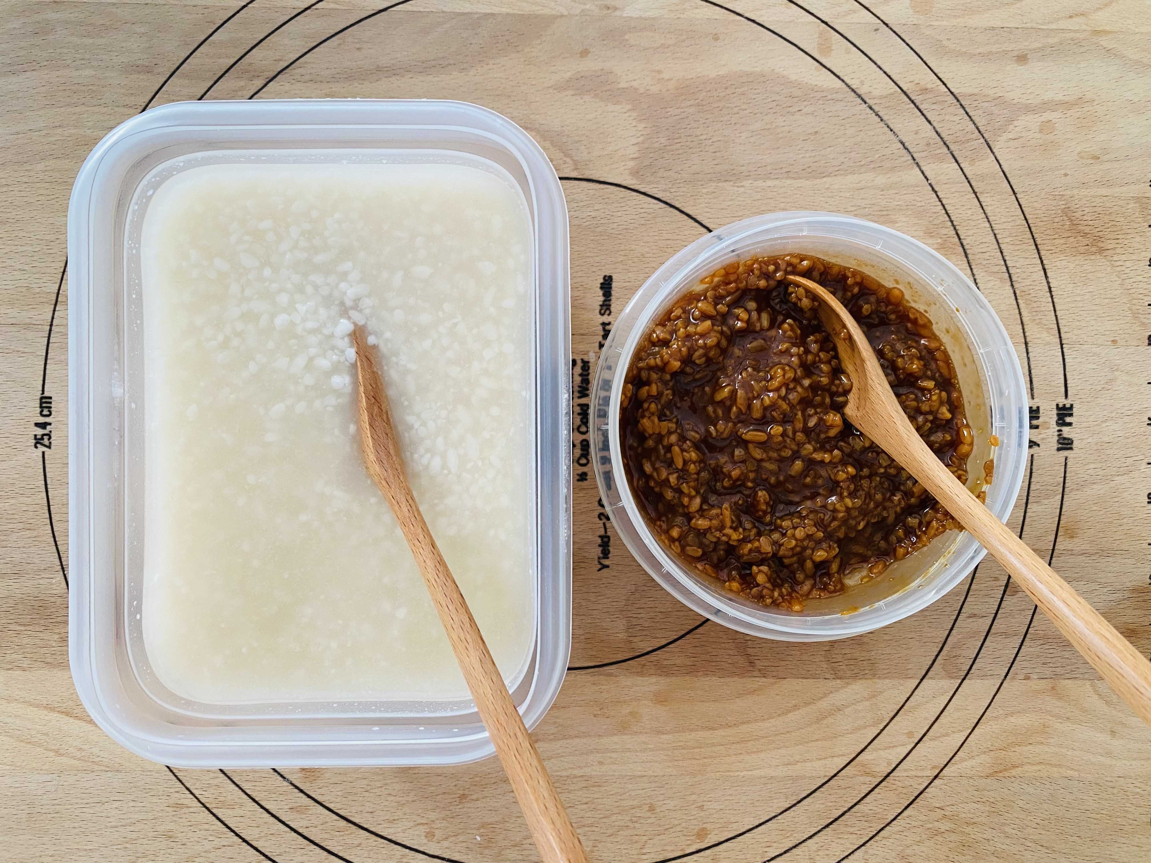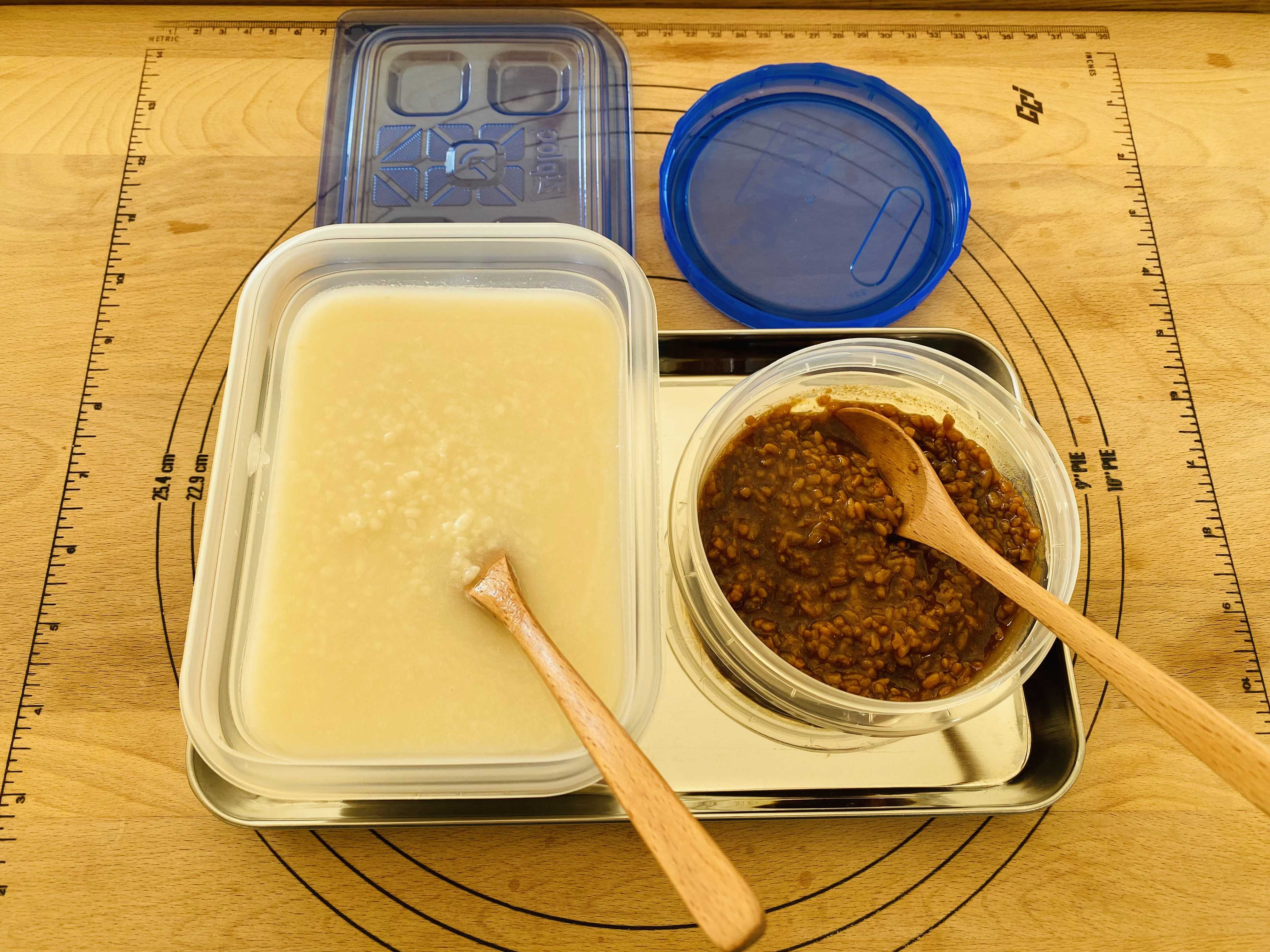 さきほどは「はじめての塩麴づくり」からついに最終回をお届けしたところですそんなこんなで、感傷に浸るまもなく⁈…ただ、つくり置きがなくなったのでまたつくろうかなってことなんですがひきつづき「2回目の塩麴づくり」を「第二章」として装いも新たに本日からお届けしていこうかなと思いますそこで、さっそく先日の買いものではじめての塩麴づくりとなった9/1ぶりに「米麹」を買い求めてきたんですねッ!なんだかんだと、ほぼ3ヶ月ぶりなのであらためてつくり方をおさらいしてから慎重に取り掛かるものでありました(注意点) ・米麹を塩もみ よく捏ね混ぜて握って後が残るまで ・水を投入 ミルク状になったら小分け今回は「塩麴」のほかにもはじめて「醤油麹」にもチャレンジしてみました…ということで、今日のこの仕込みが終わるとあと頑張って働くのは「麹菌」と「酵素」ですねッこの時期ちょっと寒くて活動が緩やかなのかもですがのんびり様子を見ていきたいと思います