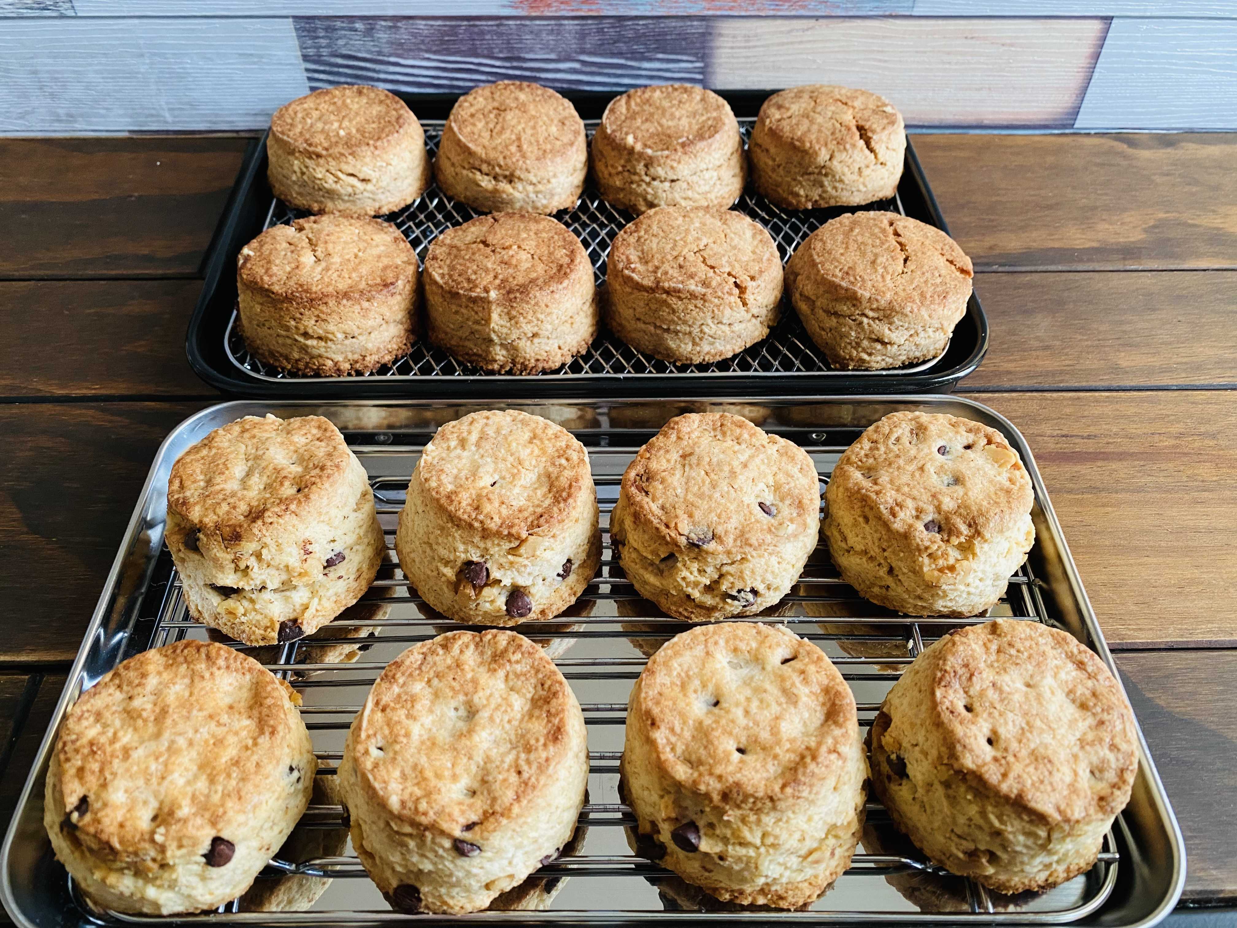 さきほどまでの「経過観察cooking」のあとはこちらはいつものように「確定cooking」から週一回のスコーンづくりのお届けですねここ最近のスコーンづくりはいろいろと試してみたいことがあってどちらかというと新作づくりが多くてレギュラースコーンづくりがご無沙汰でしたそんな中、ひさしぶりに妻からリクエストでわが家レギュラースコーンの中から「チョコチップ&くるみ入りスコーン」をつくってほしいと依頼があったんですね…ってなことでヨシッ!ひさしぶりにつくってみよう!と気合を入れてつくってみることにしました…で、せっかくのこの機会だったのでレギュラースコーンをつくりつつ新作スコーンづくりもしたとしたらどれくらいの時間配分になるのか確認をしてみたくなって(段取り時間・配分)先週、新たに仲間入りして好評を得ていた「アーモンドクリームのスコーン」も再現性の確認でつくってみることにしました【本日のスコーンづくり】 ①チョコチップ&くるみ入りスコーン ②アーモンドクリームのスコーン【本日の段取り】 1.①の生地づくり 2.①の生地冷蔵保管 3.①の生地成形 4.①の生地冷凍保管 ②の生地づくり 5. ②の生地冷蔵保管 6.①の生地型抜き 7.①の生地焼き工程 ②の生地成形 8. ②の生地冷凍保管 9.①の生地焼き上がり ②の生地型抜き 10. ②の生地焼き工程11. ②の生地焼き上がり開始が9:30~で終了が12:30ってところでした※途中途中の器具洗浄含みます※およそ1種類つくるのに1.5Hrってところです…ってことは実働時間7.5Hrとした場合 → 5種類つくれそう⁈…いやぁ…5回はしんどいですね前もって生地だけでもつくっておく方が良いですねさてさてまたスコーン博士に感想を聞いてみたいと思います