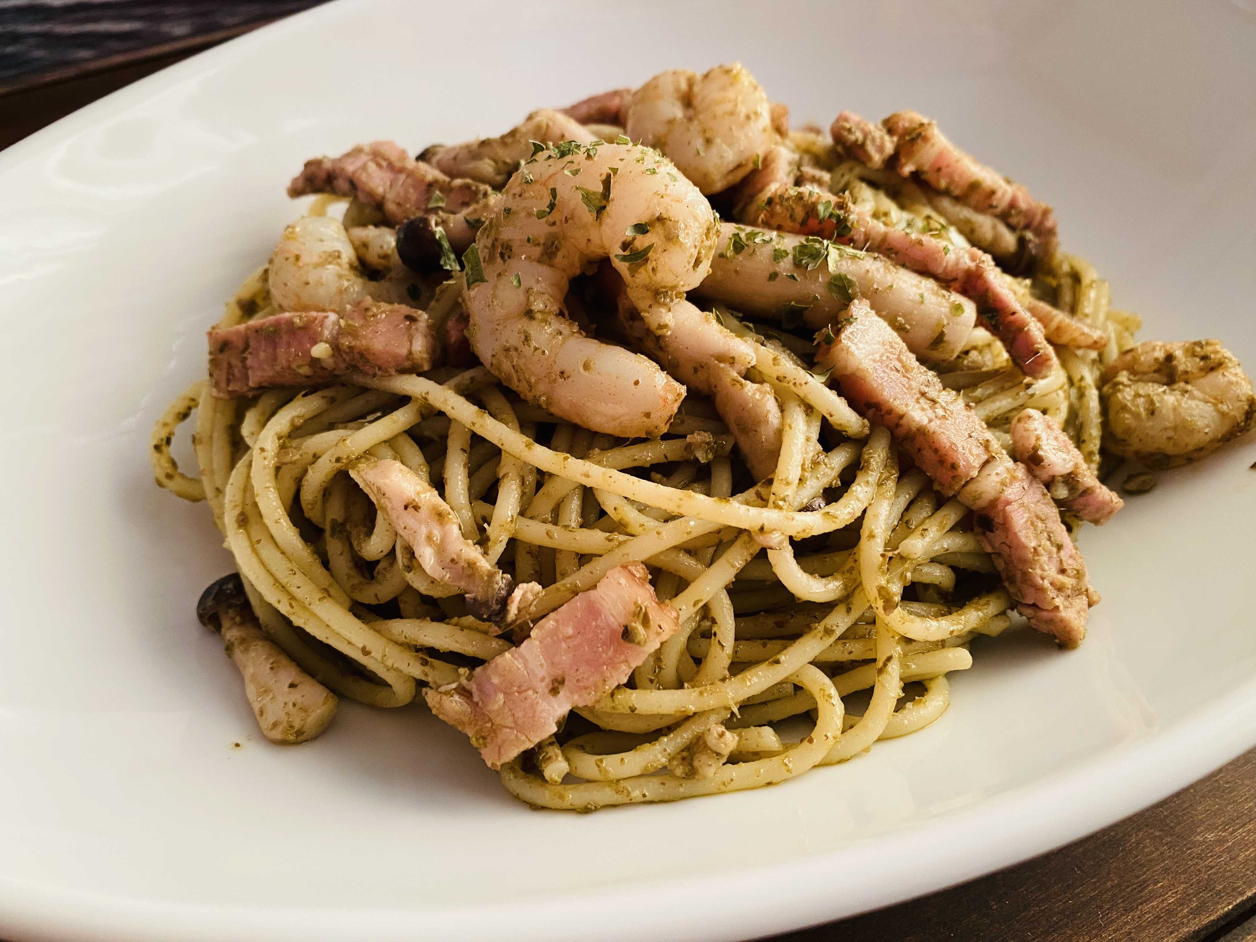 さきほどの午前中は「わが家モーニング」をお届けしてのんびりおうち時間を過ごすものでしたその後お昼どきをむかえてごはんどうしようか…としたときまぁ、今日は引きこもり生活なのであるものでちゃちゃっとつくって済ませようってことになりましたそこで候補にあがったのが「ジェノベーゼパスタ」です…というのも先週、新作サラダをつくってみようと「ジェノベーゼソース」を買っていてせっかくならこのタイミングで一度パスタに使ってみることにしましたコチラのジェノベーゼソースって代物は今までわが家の食卓に登場する機会がなくてパスタ屋さんへ行っても選択肢にのぼることは記憶をたどってもなかったと思うので実はどうかなぁって思いもあったんですね結果…なんとか形にはなったかなと思いますでも、味わいに関してはもう少し改良が必要かなと思ったところです今回すぐに「うまっ!」とならなかったのはいくつか原因があると思いますが少し茹で汁が足りなかったことがあったりオリーブオイルの量にも違いがあったかなとまた近いうちにリベンジですねあと、今回を機にいずれ自家製の「ジェノベーゼソース」をつくってみよっかなと思ったところでした