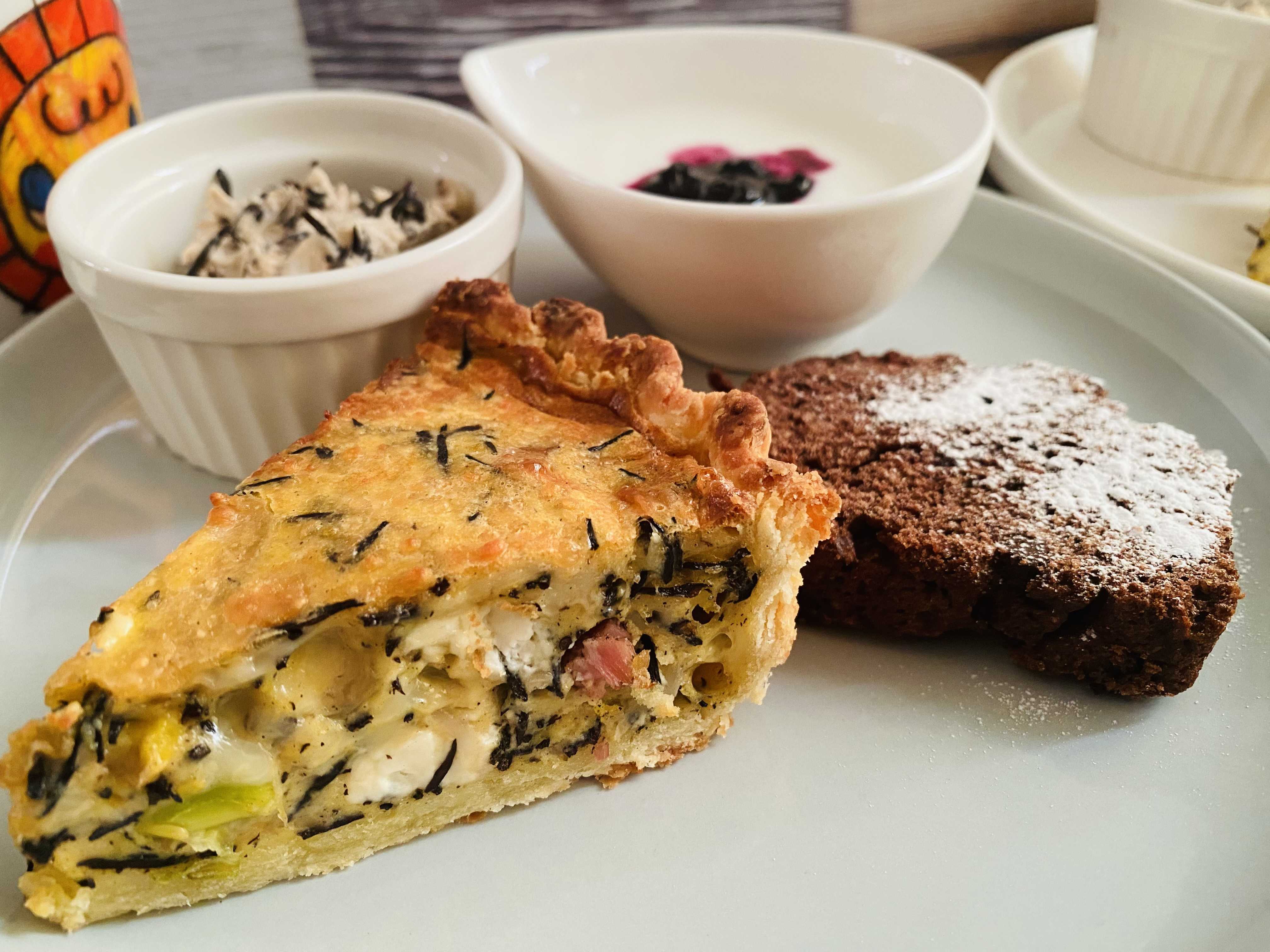 こんばんは今日の天気は予報どおりでしたねッ清々しく気持ちの良い一日となりました!そういえば…そろそろ紅葉の見頃ですかね⁈この三連休は少し足を延ばして紅葉狩りをたのしむ方々が多くおられるのかもしれませんねあっ…熊出没注意ですね!ではでは、遅まきながら8時間遅れの「わが家モーニング」のお届けです今回特筆するのは「キッシュ」ですかね昨日もお伝えしている「今までの焼き方を見直す」ってことで前回 11/7のキッシュづくりから(キッシュ表面(天面)の焼きめ注意)「焼き時間と養生のタイミング」をあらためて確認しはじめてるところでした…で、まず、昨日の焼きあがりはまぁまぁ良い感触を得ながら、その後実食となった今日のモーニング!ではさっそくご意見番からのひとこと…「ちょっといつもと違う感じがするなぁ」どうやら、今までの焼き過ぎ感のある「シゲル 松崎」さながらの色合いの方が香ばしく塩味が増しているように感じるとあったんですねたしかに、他の焼き菓子に例えると焼き過ぎかなと思えるわが家のキッシュは卵液に2種類のチーズが含まれることからそういった意味では「シゲル 松崎」級の方が、香ばしいチーズの塩味とおいしさが助長された相乗効果で自然とたのしめていたのかもしれませんねう〜ん…卵液に含むフィリングによっても違いはあるかもしれませんが…また次は「今までのつくり方」を再現してみようかなと思います…ってことはですよっこの「焼き方の見直そう」と思っていろいろ取り組んだ2週間というのはついつい「木を見て森を見ず」の逆で「森を見て木を見ず」の状態に陥っていたってことになりそうな感じですね…なにはともあれ、何事も勉強ですよねッ!うん、うん、トライ&エラー!(前向き)(11/22 わが家モーニング)・ひじき&クリームチーズ入り コーン&枝豆とベーコンのキッシュ・ココア&チョコチップのパウンドケーキ・ひじきとツナのマヨサラダ・自家製ブルーベリージャムのヨーグルト・ドリップコーヒー