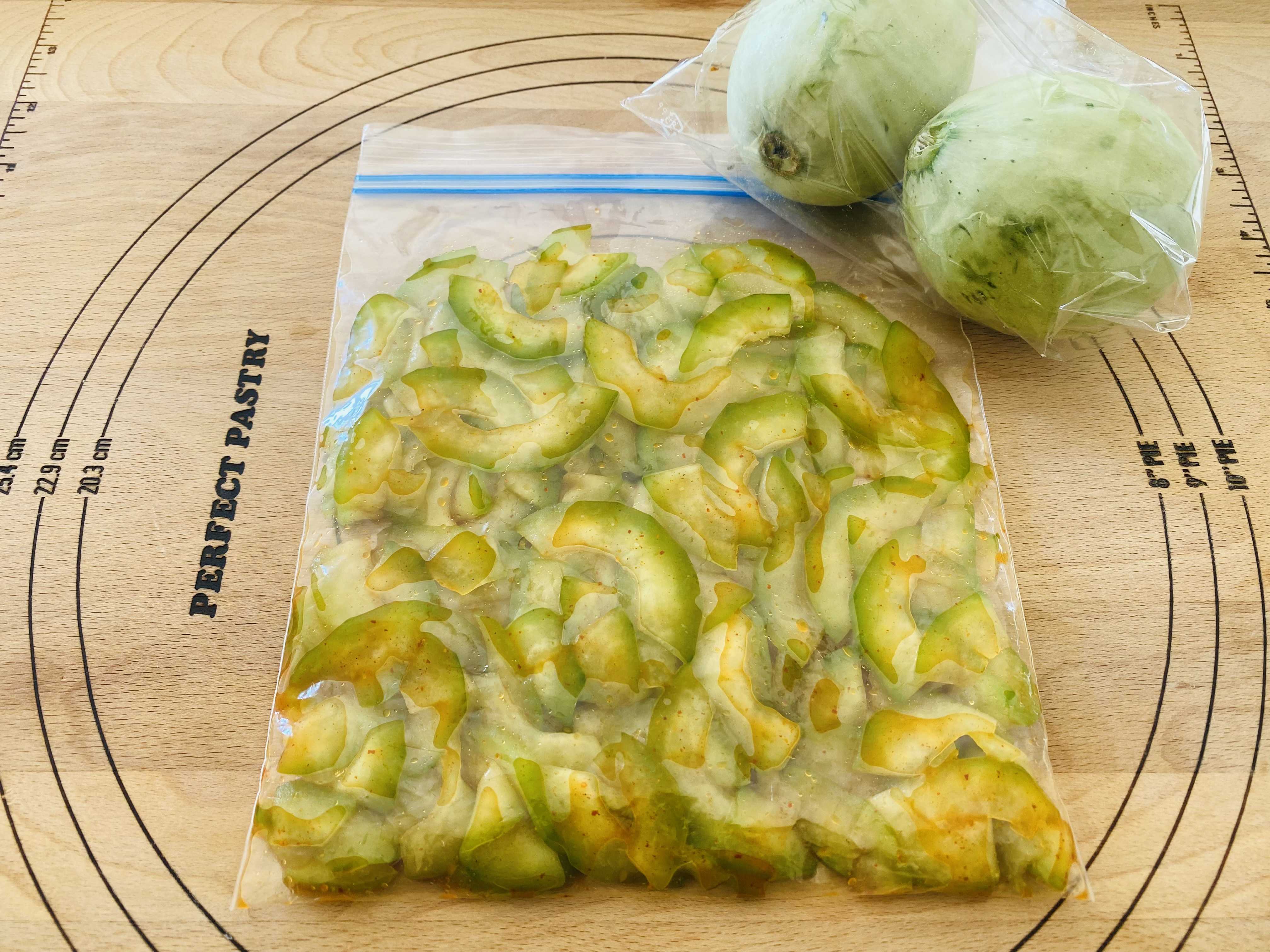 こんにちは今日もこのあたりは先週末からつづく暖かな陽気ですな、なんと20℃を超えて夏日に迫る勢いですから…むしろ暑いくらいですね…でも、いま日本海上空にただよう前線が過ぎ去る明日以降はぐっと気温が下がってこのあたりで今日より5~6℃低い予想ですここのところ毎日のように記していますが(おそらく自分に言い聞かせるため⁈…)こんなときは特に体調管理に十分注意して風邪などひかないようですねッ …ってなところで、cookingのお届けですそれでは、今週には底をつく自家製塩麴から毎度お馴染みの「塩麴メニュー」となります昨日の買いもので増量販売してる「子メロン」をみつけたので、コレは自家製塩麴の最後に相応しいわが家お気に入り塩麴漬けメニューの中から「子メロンのピリ辛漬け」をつくることにしました大好評なのでいっぱいつくってみましたがこれだけつくっても一週間もつかなぁ~ってとこですでは、のちほどその後をお届けできればと思います