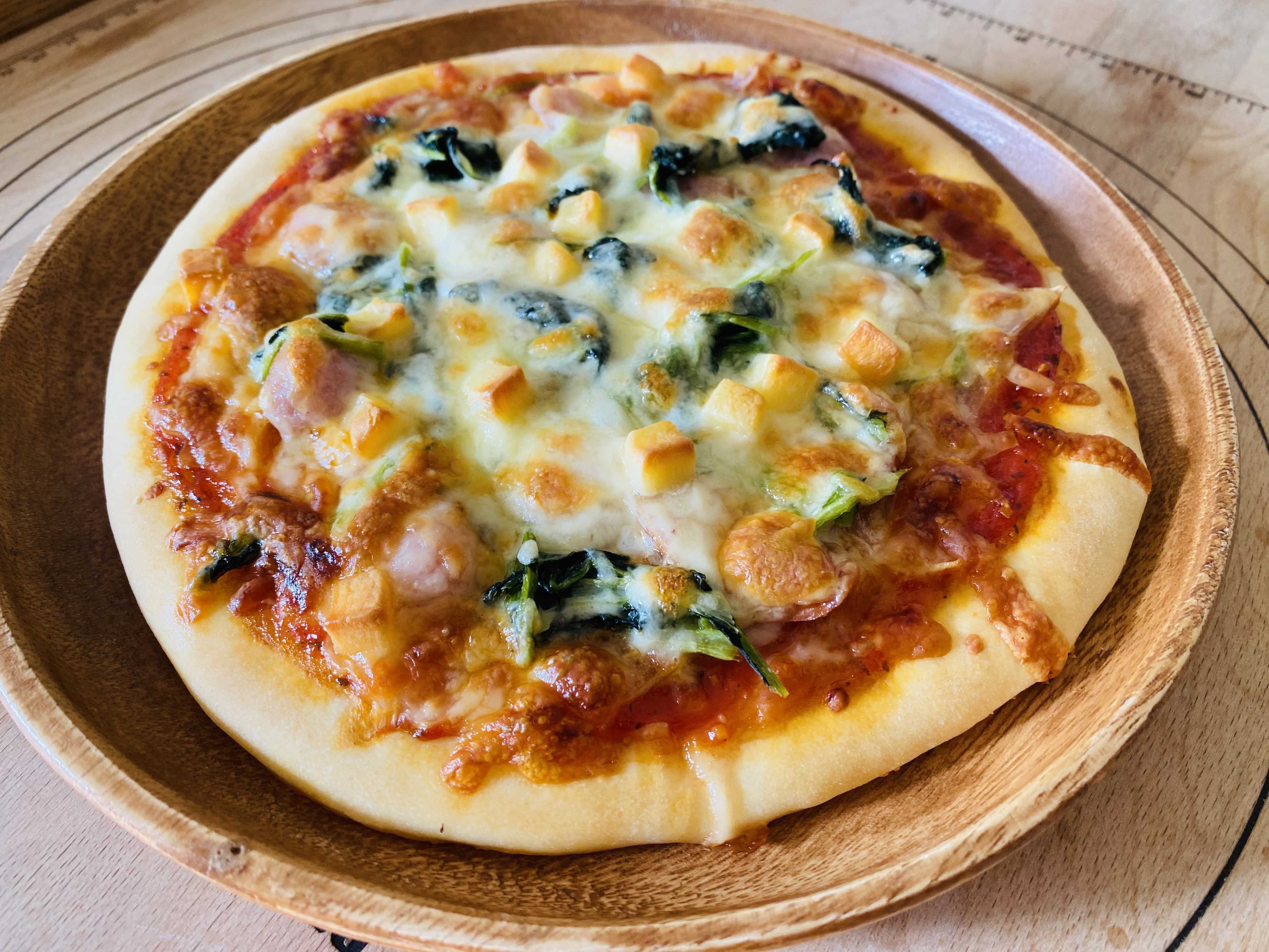 それでは本日のメインcookingとなります2週間ぶり6回目の「ピザづくり」のお届けです前々回(11/12)のときにつくった生地が冷凍庫にひとつだけ残っていたので11/14の「鮭フレークと海苔の佃煮のピザ」から2週間ぶりの再チャレンジとなりました今回、特筆するのはトッピングの具材の話しではなくて「生地の伸ばし方」と「焼き設定」のことです…というのも、まだまだシロウトなのでピザ生地のベストな状態が良くわからなくて試行錯誤しているところだったんですね ・1~3回目までは軽く伸ばす程度 → 結果、ピザパンみたいな感じに ・4~5回目はうすく伸ばし過ぎ → 結果、焼き上げ後、生地がカリカリに… ※φ10インチ…25㎝にしてました…で、6回目の今回は前回までの反省をふまえて中間サイズとなるφ8インチ…20㎝にしてみて焼き時間も2段階で調整してみました(※最後の5minを高温で焼く)あと、今回の仕様は一番最初のピザで試してるケチャップを使ったピザソースをつくって、トッピングについては冷蔵庫にあったありあわせとなります(たまねぎ・小松菜・ソーセージ)おっ!いい感じに仕上がったっぽいですこのあとのおひとりランチの方で、実食のもようをあらためてお届けできればと思います