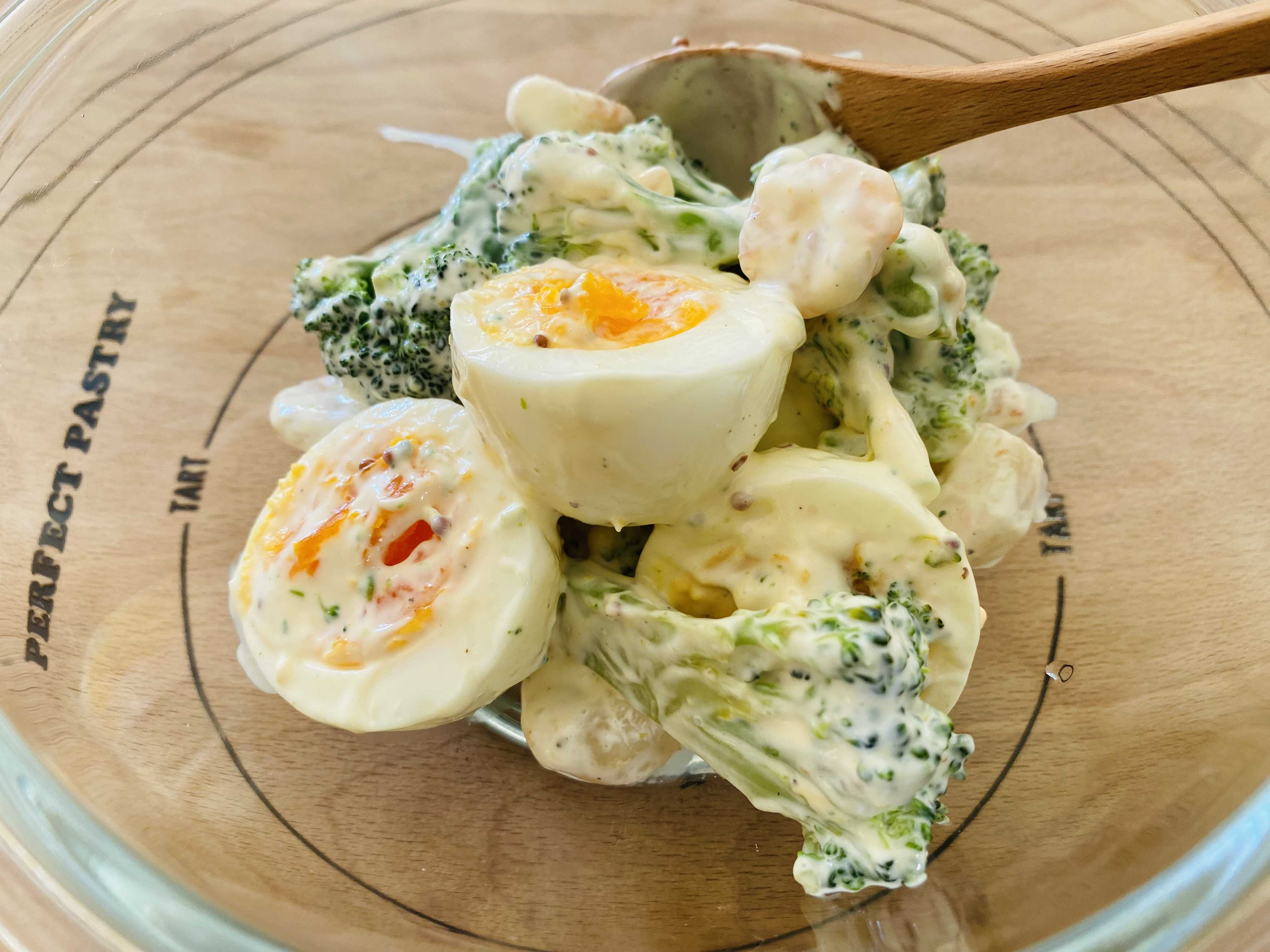 こんにちはやはり今日は予報どおりでしたねこのあたりでは日中の気温が15~16℃とあって日が差していても昨日とは違って何だかどことなく肌寒さを感じますこれからの天気は次第に冬型の気圧配置になってきてどうやら今シーズン一番の強い寒気が流れ込んできているようです……となると、もう、冬支度ですね…ってなところで、cookingのお届けですいつもであれば、その日の最初のお届けは毎度お馴染みの「塩麴メニュー」なんですが今日はコチラです「えび & ブロッコリー & ゆでたまごのサラダ」…というのも前回(11/11)はじめてつくったそのときはちょうど、そのまたその前につくっていた「自家製塩麴のシーザー風ドレッシング」の再利用を目的とした登場メニューだったんですね…で、そんなイレギュラーなcookingでしたがいざつくってみると思いのほかおいしくてリメイクメニュー完成!となったのでありますそれから一週間後の今回は「自家製塩麴のシーザー風ドレッシング」を使わない仕様で試しにつくってみることにしましたどんな感じですかね⁈…また夕飯のときに食べてみたいと思いますひょっとすると…前回たまたまつくった「塩麴のシーザー風ドレッシング」を使った方に軍配が上がるかもしれないですねッそしたらまたドレッシングづくりからはじめてみようかなと思いますそれではまた後ほど報告できればと思います