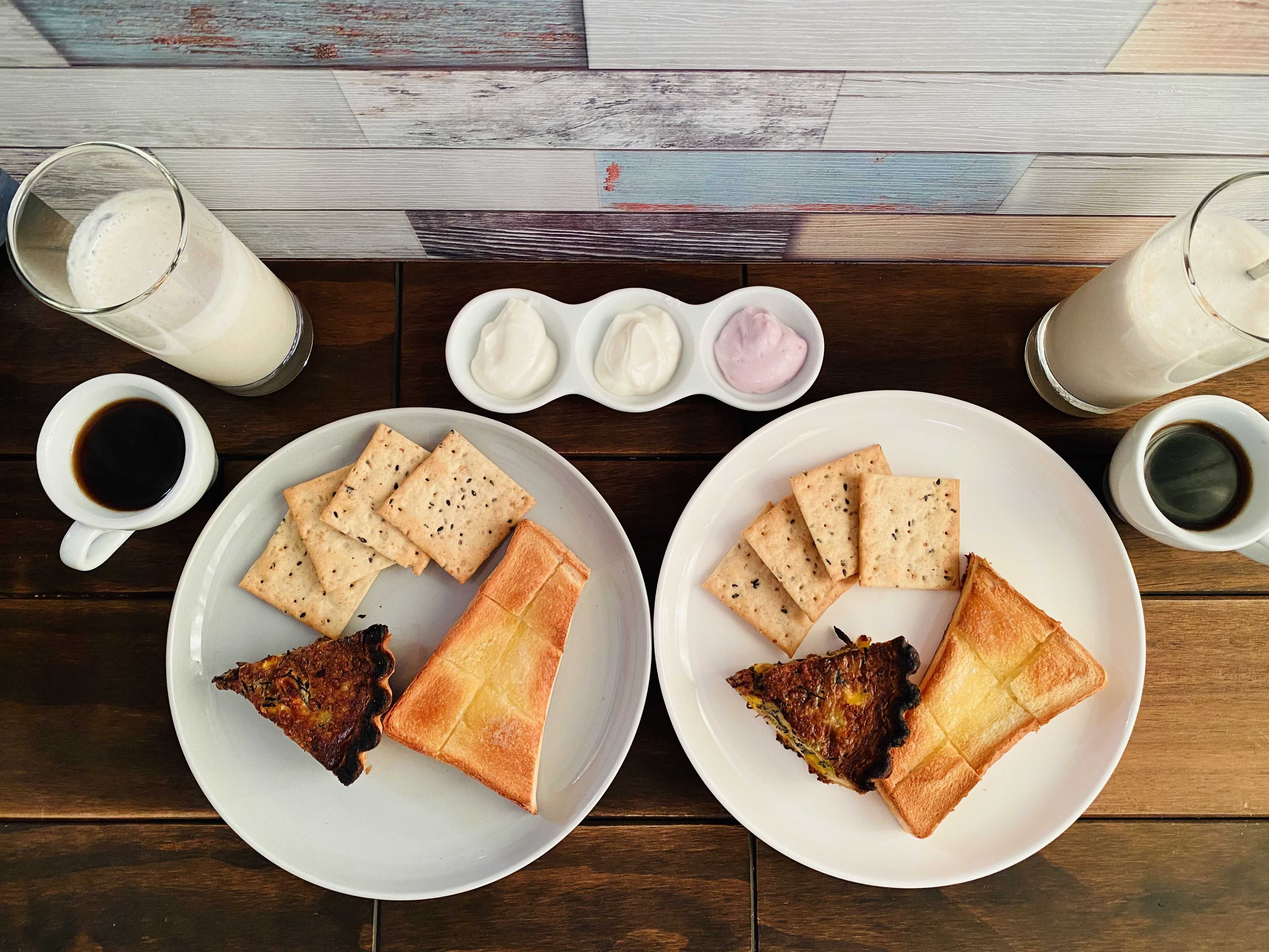 こんにちは三連休の最終日はいかがお過ごしでしょうかねめずらしくこのあたりの朝はちょっと冷え込んだっぽいです所々で霜が降りてましたッ…そんなところを目にするとやっぱり少しずつ寒くなってきたんだよなぁって思うものでした…とはいうもののその後は時間を追うごとに日が差してきて気温もあがって今日も行楽日和にふさわしいとても良い天気になりましたッあっ、わが家の今日はのんびりおウチ時間ですかねぇ時間があれば近所の紅葉でも 観てみようかなと思ってるところですでは、今日はいつもの時間に「わが家モーニング」のお届けですね今回特筆するのはひさしぶりに登場のわが家の「サワークリーム」ですッ…というのも先日の買いもので「クラッカー」を買ってきてあって(お求め価格品)(わたしはあまり食べないですが…)せっかくなら、ちょっとディップして食べてみよぅってことになったんですね昨日の夜に「水切りヨーグルト」をセットして今朝「サワークリーム」をつくってみました今回は試しに3種類です ・サワークリーム ・サワークリーム&はちみつ ・サワークリーム&ブルーベリージャムなるほど〜こういった食べ方も良い感じですねひさしぶりの自家製サワークリームはとても良いはたらきをしてましたッ!(11/24 わが家モーニング)・ひじき&クリームチーズ入り コーン&枝豆とベーコンのキッシュ・パン屋さんのトースト・購入品のクラッカー 3種類のディップ付き・バナナジュース・ドリップコーヒー