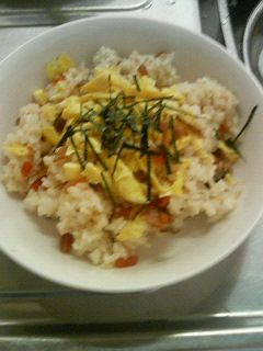 酢飯が苦手かなぁーと思い、あおたんには普通の白いご飯でおにぎりにしてたんだけど、あげたら意外にもパクパクちらしずしも食べてくれました~♪♪