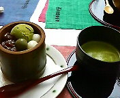 パパは抹茶白玉ぜんざいにあおちゃんは抹茶アイス。お義父さんは抹茶とほうじ茶のシフォンケーキを。