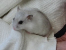 うちのムーちゃんのお気に入りの場所は、娘の肩の上・・そこで、おいしそうに大好きなキャベツを食べます。シャリシャリ・・・・パリパリ・・・食べ終わると、お決まりの毛づくろい・・・手を舐め、顔をこすり・・・・かわいいのは、耳までカシカシ・・・娘の顔を、クンクン・・・ムーちゃんのヒゲがかゆいのか、娘もケラケラ笑ってうれしそう・・・「あ~あ~・・・・知らないぞ・・・死んだらどーするの・・・」パパが、心配そうにそんな様子を見ている。 う~ん・・・・どーしようか・・・悲しむよな~・・ そっと白いジャンガリアン、買っとく?・・・ そ~いう問題じゃないわな~・・・しかもすぐばれるし・・