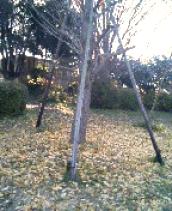 黄金色に輝いていた銀杏の木も、すっかり葉が落ちてしまった。木の下には、黄色の絨毯が広がっている。カサカサカサ・・・サクサクサク・・・・いつもはコンクリートの上ばかり歩いているので、土の上を歩くのって気持ちが良い・・・暖かくて、とても柔らかい・・・自分の足の緊張が、ほぐれて行くのが良く分かる。自然は大切だよね~コンクリートの上ばかりじゃなく・・・・・・・たまには、土の上も歩かなくちゃあねっ!