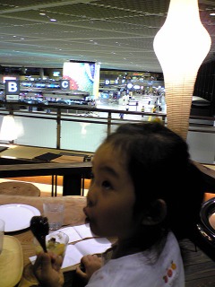 今は空港で小腹うどんしてます。ヒーちゃんは絵本買ってあんみつ食べて満足みたいです。