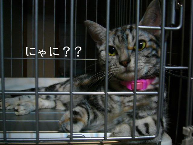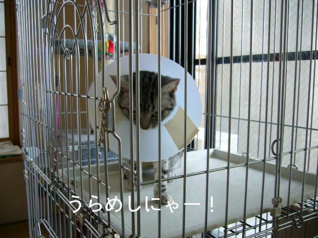 またまた、ご無沙汰していますナナは暑さにも負けず毎日元気に過ごしていますちょっと、元気過ぎかも 本日は、抜糸の様子をUPしたいと思いま~す生々しいので パパさん「どこがやねん」写真は撮っていませんのであしからず・・(そんな余裕はなかったという・・話も・・)夕方でしたので病院は、とっても空いてましたナナは、相変わらず恐がりもしないし余裕です・・そのわりには、なかなか、呼ばれませんが・・「相変わらずやな・・この病院」そのうち、ワンちゃんがやってきました・・ダックスフンドちゃんでした「可愛いね~」なんて言って見ていると「ワンワン、ワンワン、」狂ったように吠え出しました・・「やっぱり 病院は恐いよね~ しょうがないか~」と思っていたのですが・・一向に止みません「う~ん ウルサイな~」「ナナがびっくりするじゃない」と思いナナを見てみるとカゴの中で、眠そうにしています 余 裕 ナナは、大物だね~ワンちゃんでも、あんなに恐がっているのに・・それとも・・鈍感なのかしらナナを見習いなさいよ~ダックス君ちゃん・・かも なんて思いながら・・順番がやってきました・・後から来た人の方が先に呼ばれて・・先生が違うから順番が前後してもしょうがないんでしょうが・・旦那が怒ってました・・相変わらず短気ですねぇ~そして、私と、先生とでナナを押さえつけて抜糸が始まりました・・痛いし・・暴れると思いきや・・またまたおとなしくて「にゃ にゃ にゃ」と小さく鳴くだけでとってもおとなしいんです 助手の女の先生も「声が小さくて可愛いですねぇ~」とびっくりする位いい子ちゃんなんですぅ抜糸は、糸ではなく、ホチキスの芯みたいな感じで傷口も綺麗にふさがっていました終始、おとなしいいい子ちゃんでハプニングもなく・・無事終わりましたこれで、しばらく・・病院とは、お別れ・・ホットしました・・しかし、ナナは、お外だと、なんであんなに、おとなしいのかしらお家では、相手をしないとにゃーにゃー鳴きまくり壁をガリガリして暴れまわるのに・・飼い主さん「ナナ、ちょっと~どういう事」ナナ「あたちはね、お外での礼儀をわきまえているだけにゃりん」飼い主さん「うちでも、わきまえて欲しいものだわね」ナナ「それは、無理だにゃ」飼い主さん「どうしてよ~」ナナ「だって・・あたち、女王様だから」 エリザベスを外しても女王様は、健在のようです・・ポチッと↓お願いニャ~!最後まで見てくれてありがとにゃ!!