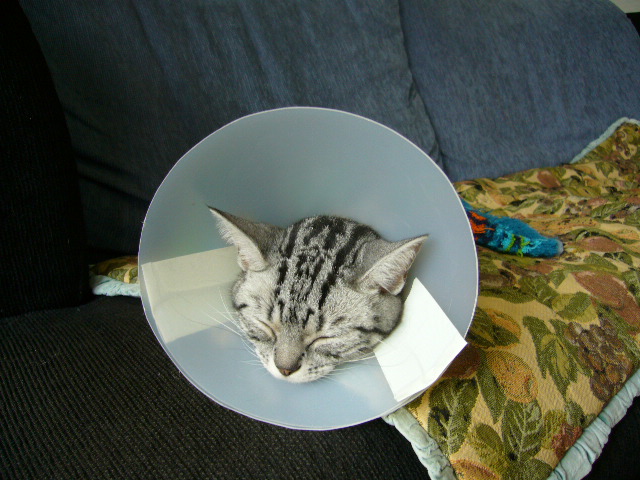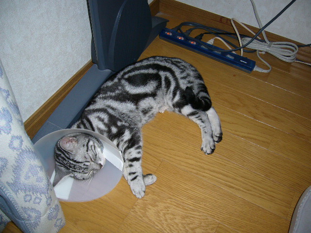 今日は、ちょっと涼しいですナナは、おかげさまで、無事抜糸が終わりましたとーっても元気で、うるさいくらいですそれで・・本日は、最後のエリザベス姿をUPさせて頂きたいと思いま~すいつものようにPCをしてますと・・風も通らないこの場所で・・またまた嫌味のように寝転んでますそのうち、嫌がらせが・・・爆睡に変わってました・・飼い主さん「やっぱ、しょせんネコやね」そのうち、せまいのか・・・のび~をしだしましたナナ「まったく、いつまで こんなところに行させるつもり 」飼い主さん「別に・・・強制じゃないんだけど・・」ナナ「この借りはいつか返してもらうにゃ~よ」飼い主さん「貸しはあっても・・ 借りはないと思うんだけどね・・」ナナ「やっぱり・・お昼寝は ソファーが落ち着くわね 」飼い主さん「だから・・最初から そうしろっつ ちゅーの」ナナ「ネコの勝手でしょ」おかげ様で、エリザベスも取れました色々と、温かい、面白いコメント有り難うございました病院での様子はまた、今度UPしますねポチッと↓お願いニャ~!最後まで見てくれてありがとにゃ!!