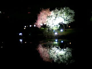 駅貼りポスターで知った、浜離宮の夜桜ライトアップ。今週一杯八重桜が楽しめる、と。例年お日様の下のお花見ばかりで、夜桜見物は数年前の靖国神社だけ。オフィスから軽く歩いて行ける距離。汐留のビル風に吹かれながら、昨日仕事帰りに行ってみた。入園料は300円。砂利を踏みしめながら歩くことしばし、ライトに照らされた大きな八重桜が見えてきた。さらにお堀に架かる橋を渡ると、対岸に白とピンクの桜が並ぶ。水面に映る姿と相まって実に風流。 人工の光が照らす桜といい汐留のビル群とのミスマッチといい、都会の真ん中の公園ならではの風景が続く。 ソメイヨシノに比べて、下手すると暑苦しさを感じる八重桜も、濃淡の桃色が重なり合う様を間近でみるとやはり美しい。 桜と新緑が迎える都会のオアシスはしばし仕事と時間と喧騒を忘れさせてくれる。潮風を感じながらベンチで煽る缶ビールもまたオツなもの。光と闇と華と水。思いの外風流な、今年最後のお花見だった。