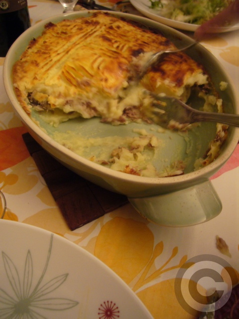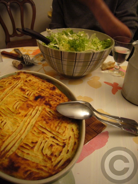 何故か,僕はHachis Parmentierが大好物(間違ってはないのですが・・・他にもたくさん好きなフランス家庭料理はあるのです。)と思い込んでいて、僕がこの家に行くときは、いつも気を使ってくれてHachis Parmentier・・・が多い。しかし、彼女の家庭料理はいろいろこの10年間でごちそうになりましたが、すべて美味い。パリの彼等の家のキッチンはウチのより狭く(二人入ったら動けないほど)、かなり大変そうなのに、10人分くらい(フルコース)は平気で作ってしまうのには脱帽。