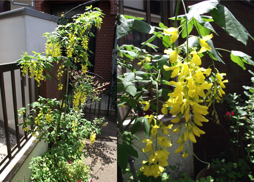 GWも終りまして、また普段の生活に戻りますね。 うちは、GWとはいえ、どこにも行かず、家でゴロゴロウィークでした。 さて、植物はと言いますと、 玄関前のゴールドチェーン満開です。 風水的には、金(黄)色は西がいいのですが、うちは玄関が北東ですので、 やむなく北東に置いております。 だから、金運が上がらないのか? そして、玄関前のアーチに黄色いバラ(ローラフォード) 咲き始めですが、きれいな可愛い花ですよ。 ピンクのツツジもさいてます。 引っ越した頃からずっと咲かなくて、昨年から咲いてくれてます。 刈り込まず、自然樹形のままです。 そして、庭へ ツルニチニチソウ、タツナミソウ、ヘデラ、オキザリスなど、 グリーンロードになってます。 奥のオキザリスは、跨いで行かないと庭に出れません。 まずは、チシマハンショウヅル。 植え替えた環境は快適なようで、先端に毛で覆われた蕾がついてます。 ちょっとずつ大きく膨らんでます。 新枝咲きでした。脇芽がもっと伸びて欲しいな。 リビングの窓傍に白バラ・アキトです。 ようやく咲きました。 今年は蕾が多いので、少しは楽しめそうです。 で、 その横のミニバラ・シンデレラ。 まだ1つしか咲いてませんが、この子は毎年、たくさん咲かせてくれます。 楽しみな子です。 で、庭側はこんな感じ。 ホスタも気持よさげにはを広げております。 ビオラもまだ元気に次々と咲かせてます。 手前の白くとんでるのは、 ラナンキュラスです。 今までそれほどいいなとは思いませんでしたが、 白のラナンキュラス、きれいですね。 ビオラ横のシャクナゲも蕾を膨らましております。 昨年咲かせられなかっただけに、 今年は、上手く咲かせてあげたいですね。 イキシアも年々株が減ってるのか、分布が薄く広くなっているのか。 毎年咲いてくれます。 ホスタの横で頑張って咲いてます。 イチジク・ブドウコーナーで行くと、 アンネのバラ・ナデシコ達が日を浴びて、 どんどん咲いてます。 ナデシコは、群れる前に切り戻しが必要です。 バラも、ある程度咲いたら、切り戻して、新芽を促してやります。 天気が悪くても寝るモモ。 天気が良ければ、良いでますます寝るモモ。 ヒメは私の上でゴロゴロしてます。 ゴロゴロウィークでした。
