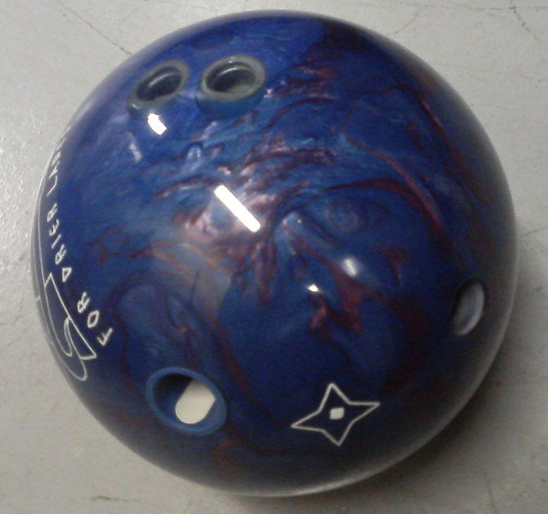 ※ピンはフィンガーのすぐ上にありますが、プラグして青くなってます。シェル Mild Pearl Reactive コア Strong Asymmetrical RG 2.540 ΔRG 0.045 スピンタイム 7.0 sec 硬度 75~78° カラー ブルー・パープル 発売 2005年9月 購入は2005年の年末だったと思います。遅くなってきた用にしようと思いドリルも12時レイアウトにしたのですが、、、かなりキレのある曲がり。マスバイアスポイントをもっとサム下かサム左にすればよかったんでしょうか?ですので使用は主にミディアム~ミディアムドライですね。このサハラなぜか点数がでるんです。ポケットに集めやすいライン取りができるのが主な理由ですかね?(5枚まっすぐとか板目にそってなげてます)(試合戦績)2006年1月~7月41G 9038ピン 221.5ピン 8/11に1Gレーン移動のNの例会で使用してみたんですが・・・1G 2362G 248と、ここまではサハラらしさがでていたんですが・・・3G 178 ( ̄▽ ̄;)!!ガーンなぜか、、割れる(←なぜかって自分でラインに投げれてないんですが・・)ちゃんとなげれたラインでも7・10が2回発生・・・4G目は、たまらずフラッシュに変えました(でも、うまくいかずに178) なつかしのサハラを投入したら248のフェンス直撃三塁打止まりで連続試合ホームランも9試合で終了♪本当に記事にすると記録とまるね・・・L(・o・)」 オーマイガ